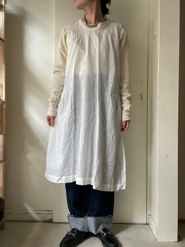 color white 薄いガーゼのような生地の ノースリーブワンピース 首周りに華奢なレースとタック、 腰にもタック入りのデザインです ポケットのようにも見えますが ポケットではありません 淡い透け感が可愛い繊細なワンピース カラー物や柄物など レイヤードが楽しめそうな1枚です✨️ size(平置きで採寸) 着丈 96cm 身幅 49.5cm 肩幅 31.5cm 着用staff 151cm ⚠︎若干の誤差が生じる場合がございますのでご了承お願いします。 material 表記なしの為不明 おそらくコットン condition 古い生地なので表面が凹凸しています ATTENTION 当店で取り扱う商品は全てused、vintage商品です。 感じ方には個人差があるかと思いますが、目立つもの以外は記載しておりません。小さな汚れやダメージ、使用感などは古着の特性としてご理解お願いします。 記載内容をお読み頂き、新品とは異なるvintage,used商品であることをご理解いただいた上でご注文ください。 古着特有の匂いがある商品がございますのでご了承下さい。 実際の商品のお色味が出るように撮影しておりますが、撮影環境やお客様のモニターの設定により色味の誤差が生じる場合がございますので予めご了承お願い致します。 複数点お買い上げ頂いたお客様は同梱発送とさせて頂きます。 ⚠︎ 複数点ご購入の際にはカートをまとめてお手続きを宜しくお願い致します。 一度確定したお手続きの内容の変更は不可となります。カートが分かれた場合、それぞれに送料・手数料がかかる場合がございます。ご注意ください。 お支払い内容の詳細につきましてはご注文確定後にメールにて詳細を送らせて頂きます。 ⚠︎ ご注文完了後のキャンセルは不可とさせて頂いております。またお客様のご都合による返品や交換につきましてもお受けする事ができません。 ご不明点がございましたらお気軽にお問い合わせをお願い致します。