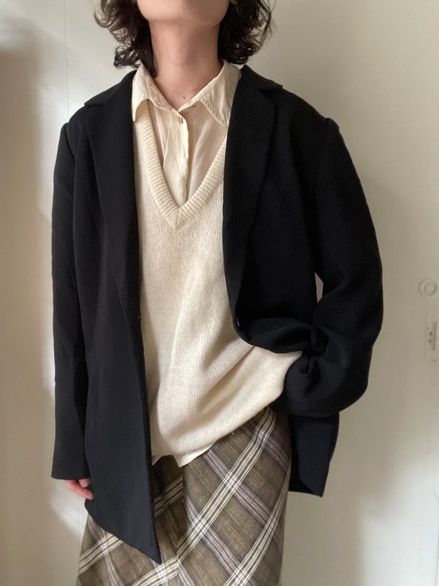 color black Liz Claiborneのシンプルなテーラードジャケット トリアセテート素材で、シルクのようなとろみのある生地感です 横向きに付いたポケットや、キラッとひかるシルバーのボタンもシンプルですが個性的なポイント! 普段時はもちろん、オケージョンにもおすすめのアイテムです◎ size(平置きで採寸) 着丈 70.5cm 身幅 51cm 肩幅 41cm 袖丈 58.5cm 着用staff 151cm ⚠︎若干の誤差が生じる場合がございますのでご了承お願いします。 material triacetate 70% polyester 30% condition 目立つ汚れやダメージのないアイテムです ATTENTION 当店で取り扱う商品は全てused、vintage商品です。 感じ方には個人差があるかと思いますが、目立つもの以外は記載しておりません。小さな汚れやダメージ、使用感などは古着の特性としてご理解お願いします。 記載内容をお読み頂き、新品とは異なるvintage,used商品であることをご理解いただいた上でご注文ください。 古着特有の匂いがある商品がございますのでご了承下さい。 実際の商品のお色味が出るように撮影しておりますが、撮影環境やお客様のモニターの設定により色味の誤差が生じる場合がございますので予めご了承お願い致します。 複数点お買い上げ頂いたお客様は同梱発送とさせて頂きます。 ⚠︎ 複数点ご購入の際にはカートをまとめてお手続きを宜しくお願い致します。 一度確定したお手続きの内容の変更は不可となります。カートが分かれた場合、それぞれに送料・手数料がかかる場合がございます。ご注意ください。 お支払い内容の詳細につきましてはご注文確定後にメールにて詳細を送らせて頂きます。 ⚠︎ ご注文完了後のキャンセルは不可とさせて頂いております。またお客様のご都合による返品や交換につきましてもお受けする事ができません。 ご不明点がございましたらお気軽にお問い合わせをお願い致します。