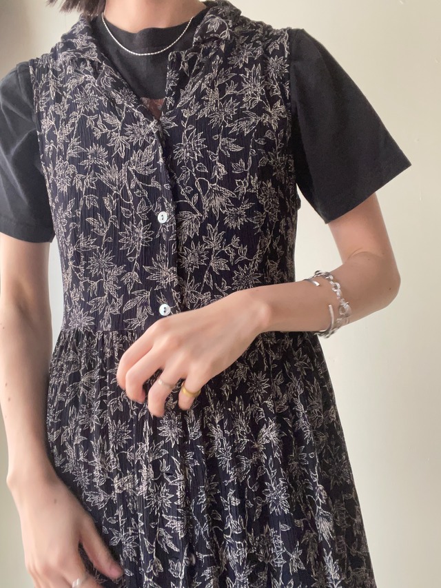 color black、white ノースリーブのシャツワンピース 向日葵のようなお花柄が夏らしく、モノトーンなので可愛らしすぎず着ていただける1枚です 細かくプリーツが入った生地で、ほんのりシアー感がありこれからの季節にも◎ シェルボタンや後ろのリボンなどもポイントで、前開きなので重ね着もたのしめそうなアイテムです size(平置きで採寸) 着丈 115cm 身幅 39cm 肩幅 29cm ウエスト 36cm (切替部分) 着用staff 151cm ⚠︎若干の誤差が生じる場合がございますのでご了承お願いします。 material rayon 100% condition 目立つ汚れやダメージのないアイテムです ATTENTION 当店で取り扱う商品は全てused、vintage商品です。 感じ方には個人差があるかと思いますが、目立つもの以外は記載しておりません。小さな汚れやダメージ、使用感などは古着の特性としてご理解お願いします。 記載内容をお読み頂き、新品とは異なるvintage,used商品であることをご理解いただいた上でご注文ください。 古着特有の匂いがある商品がございますのでご了承下さい。 実際の商品のお色味が出るように撮影しておりますが、撮影環境やお客様のモニターの設定により色味の誤差が生じる場合がございますので予めご了承お願い致します。 複数点お買い上げ頂いたお客様は同梱発送とさせて頂きます。 ⚠︎ 複数点ご購入の際にはカートをまとめてお手続きを宜しくお願い致します。 一度確定したお手続きの内容の変更は不可となります。カートが分かれた場合、それぞれに送料・手数料がかかる場合がございます。ご注意ください。 お支払い内容の詳細につきましてはご注文確定後にメールにて詳細を送らせて頂きます。 ⚠︎ ご注文完了後のキャンセルは不可とさせて頂いております。またお客様のご都合による返品や交換につきましてもお受けする事ができません。 ご不明点がございましたらお気軽にお問い合わせをお願い致します。
