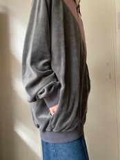 ピンク×グレーというオシャレな配色のトラックジャケット