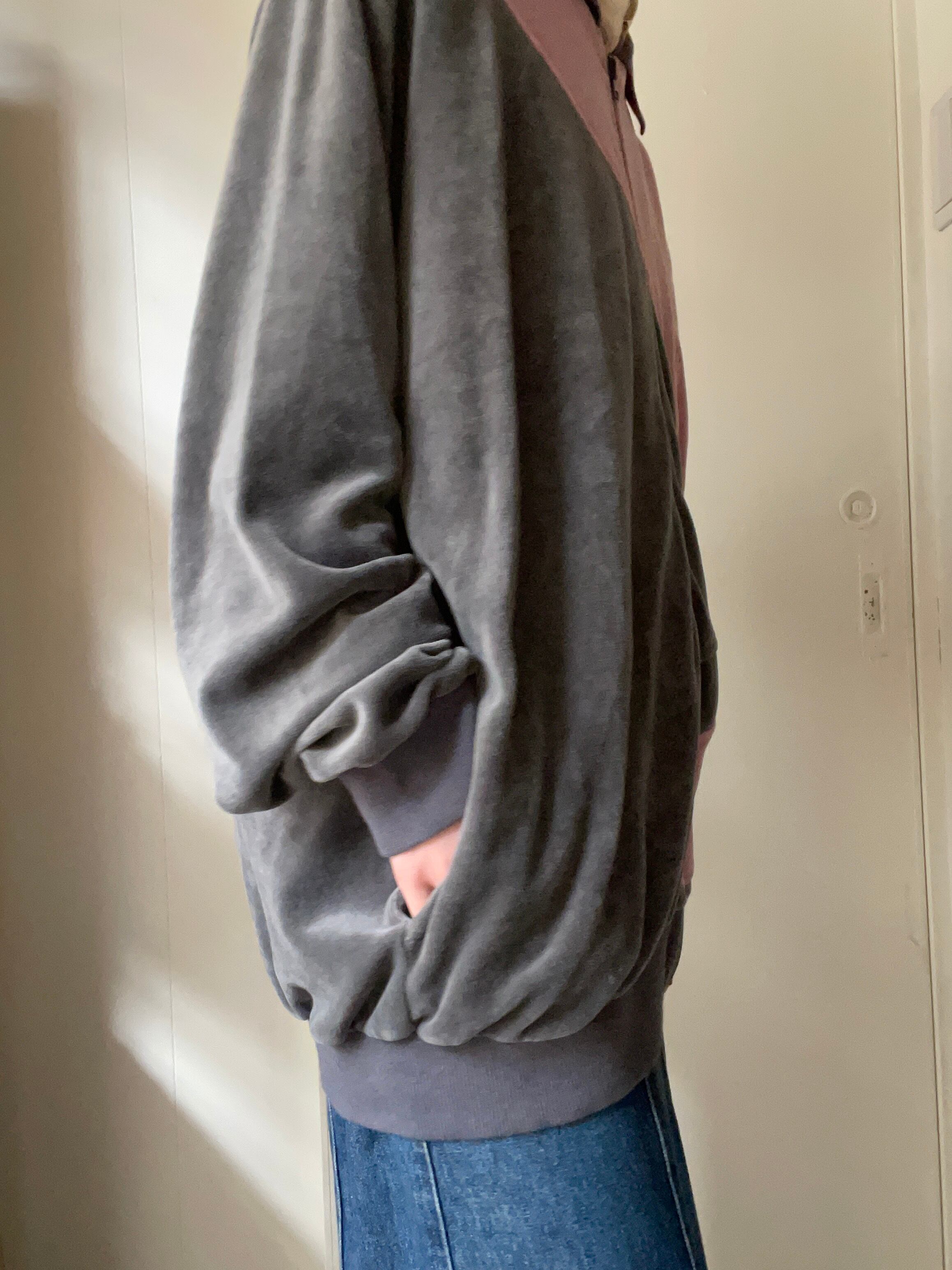 襟、袖口、裾はリブ素材になっていて、 ポケットは片方のみというのも面白いデザインです