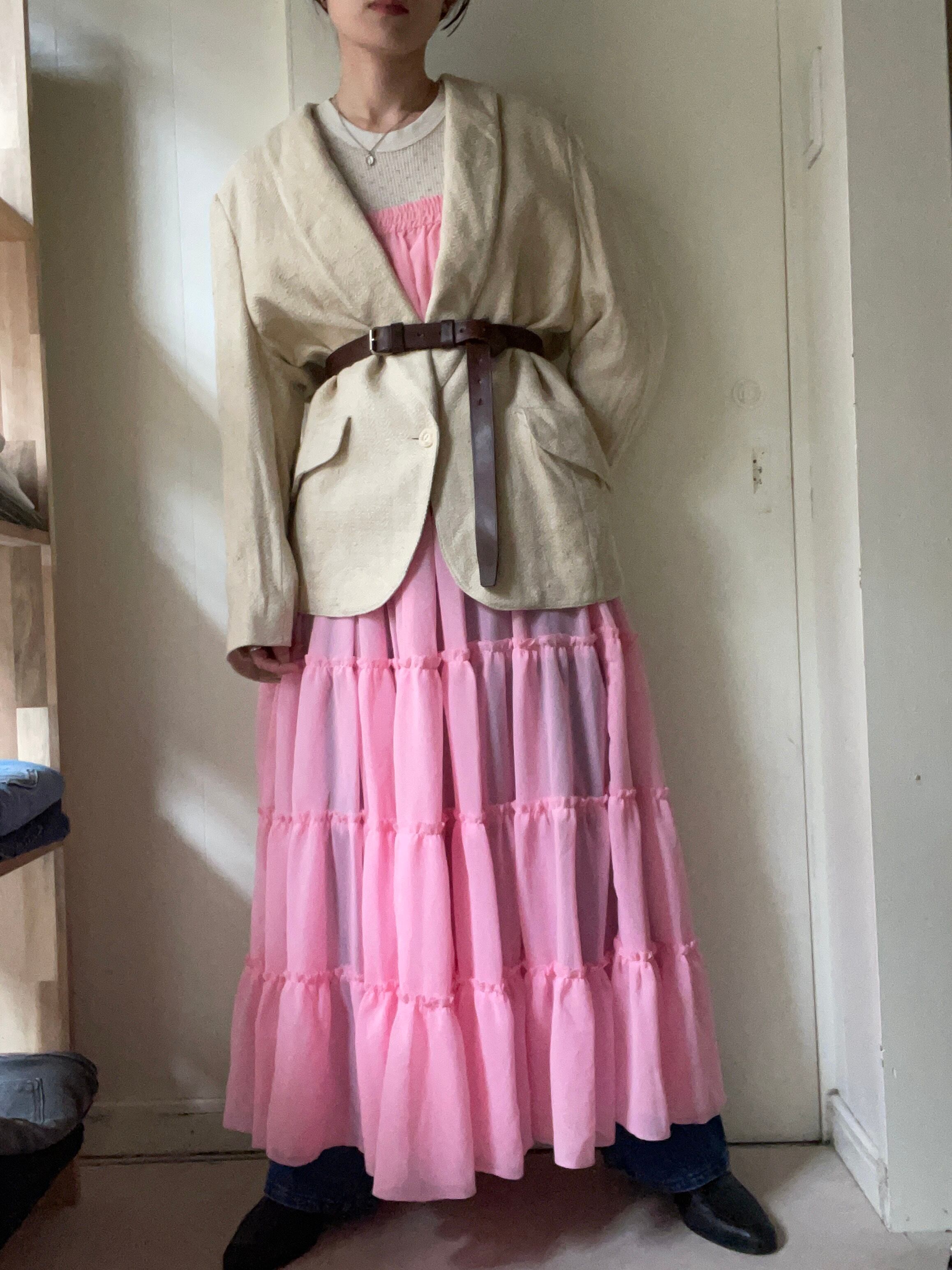 これからの季節にぴったりなピンクカラーが可愛らしいティアードスカート
