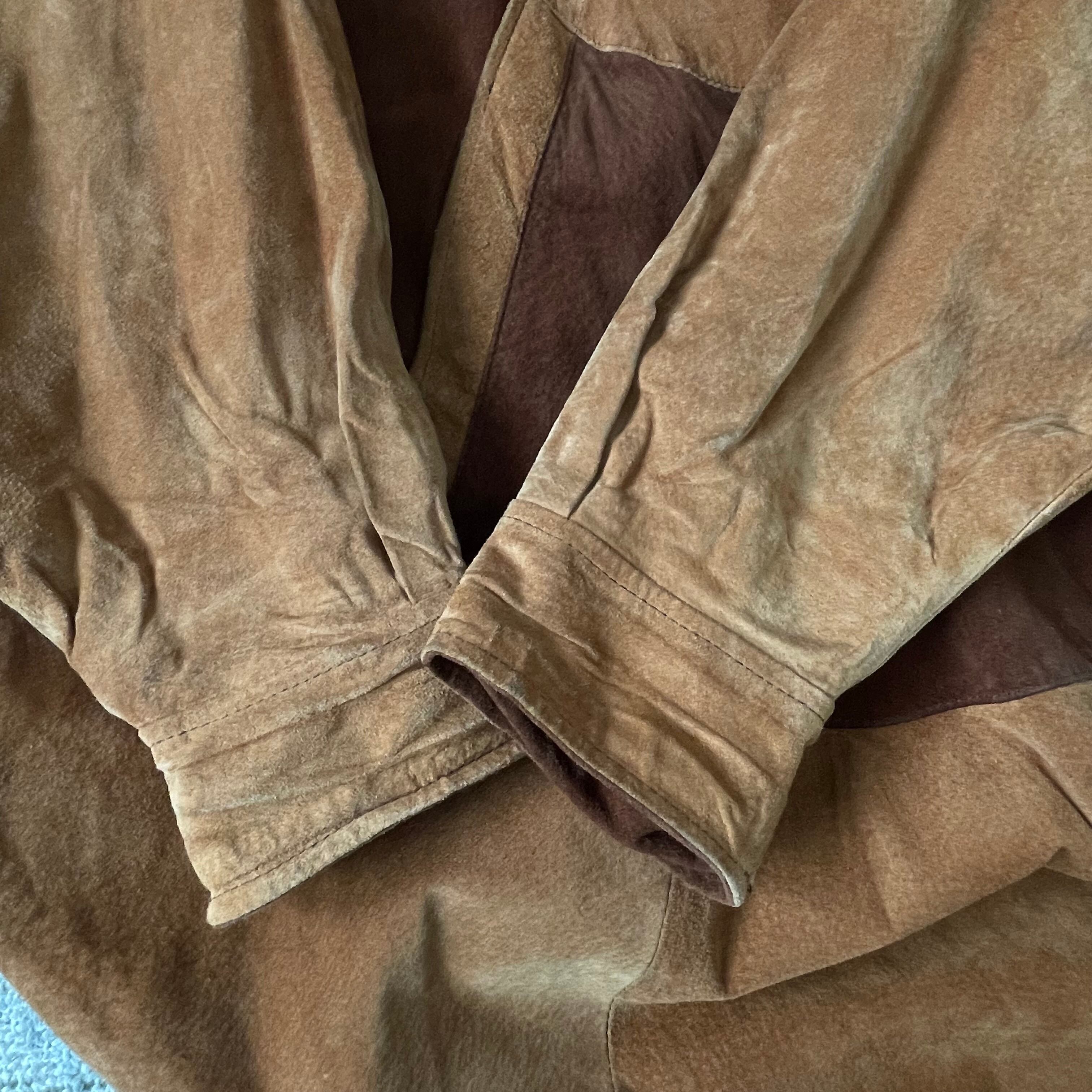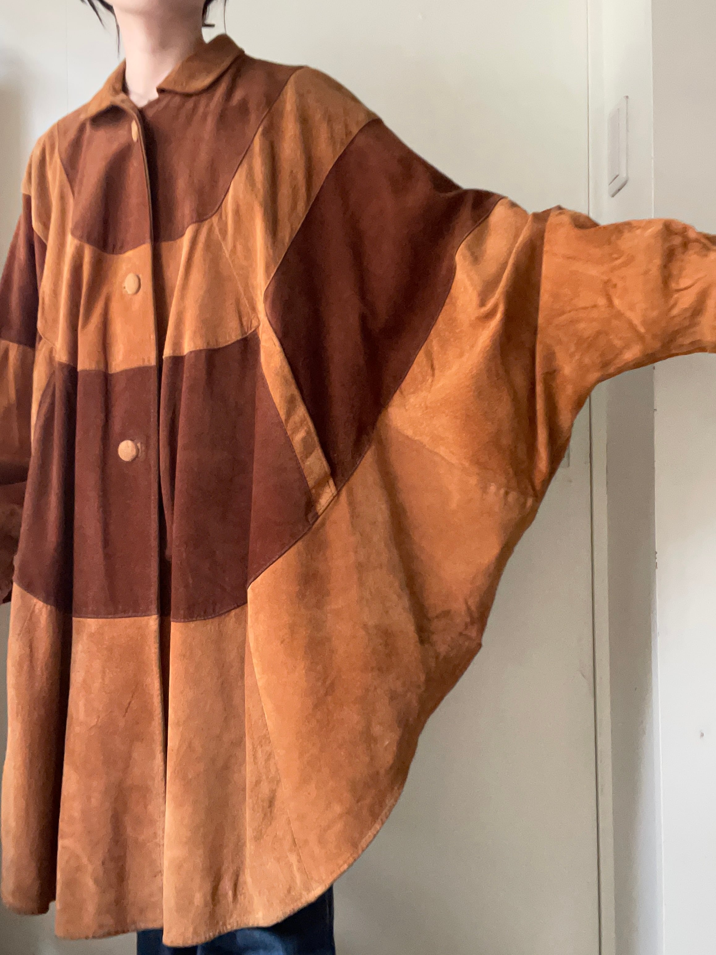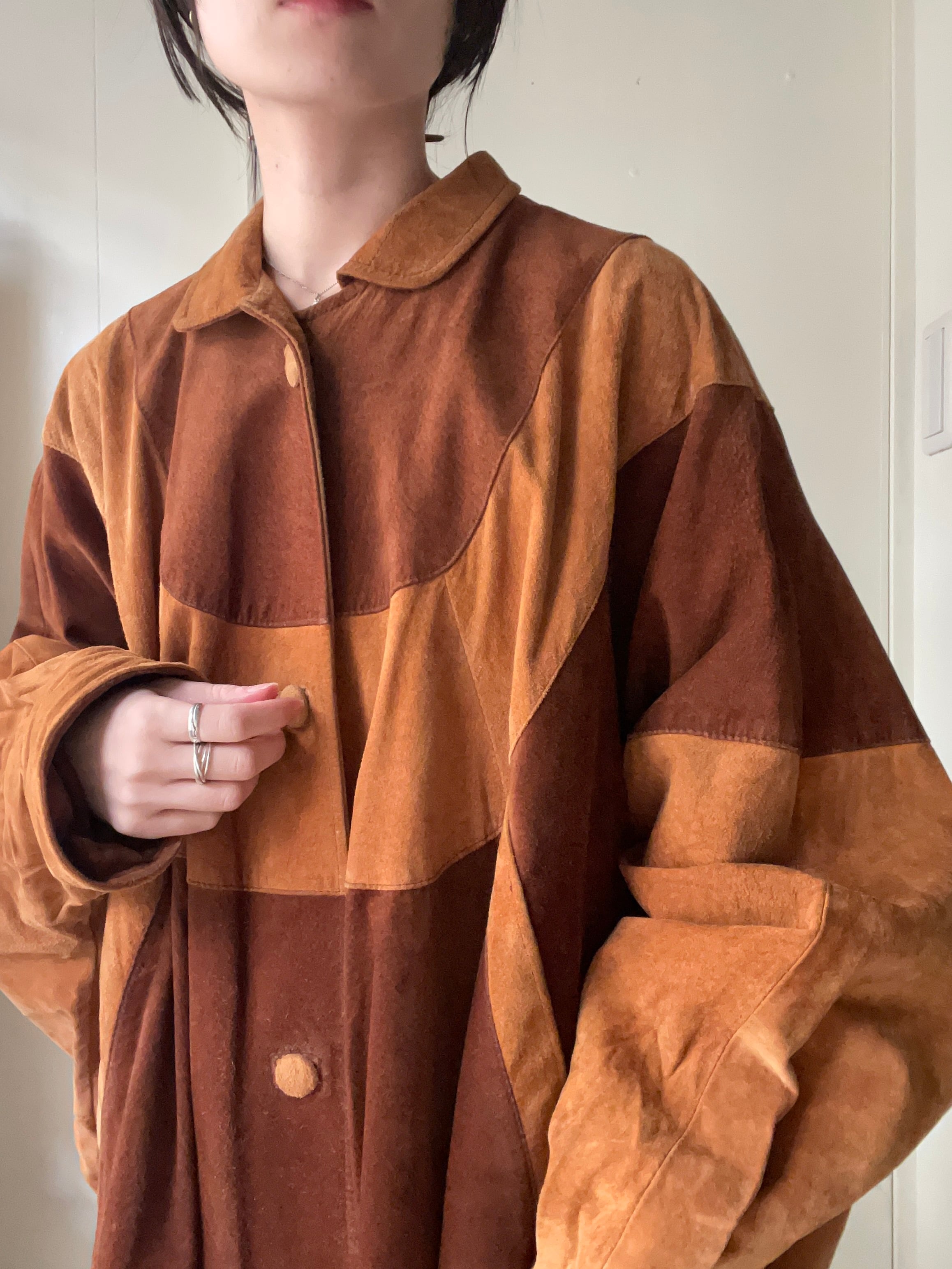 柔らかなスエードレザーでお袖があるデザインで動きやすい生地感のコートです