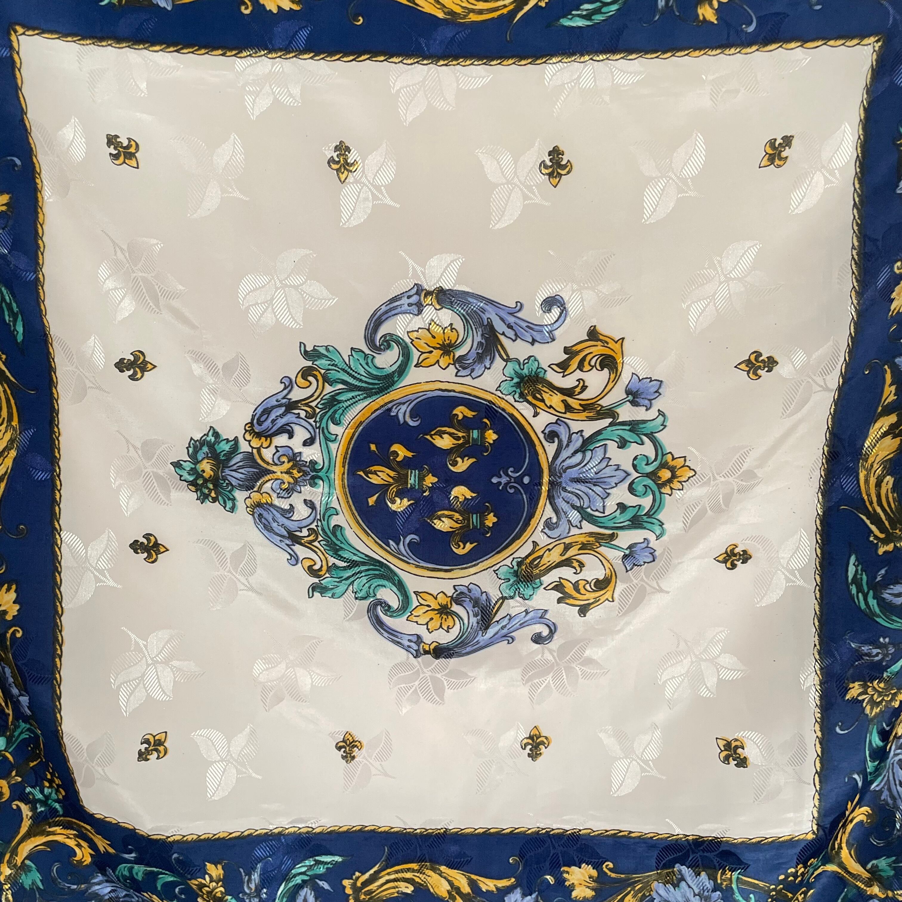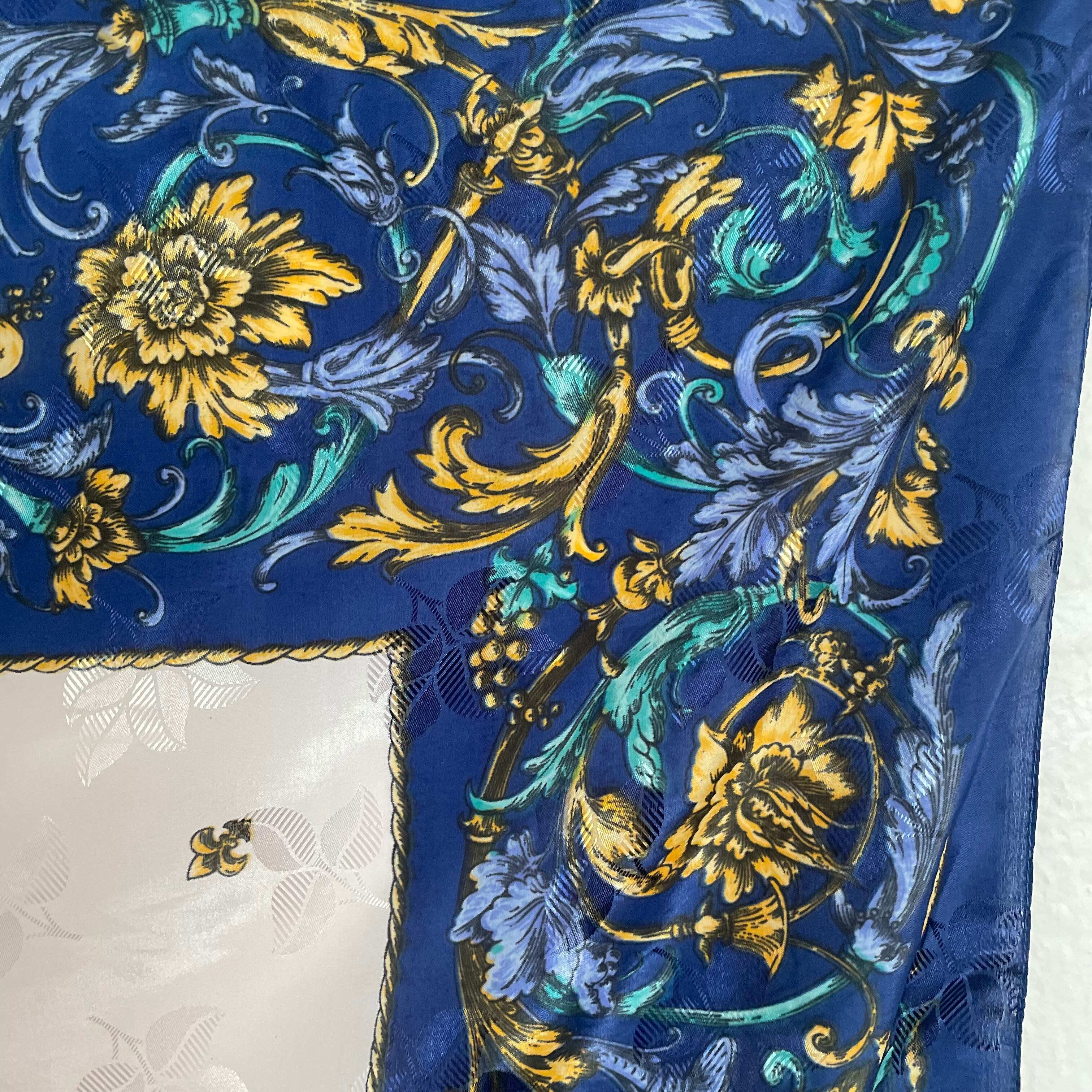 スカーフ全体に葉っぱのような折り模様が入っており華やかな1枚です