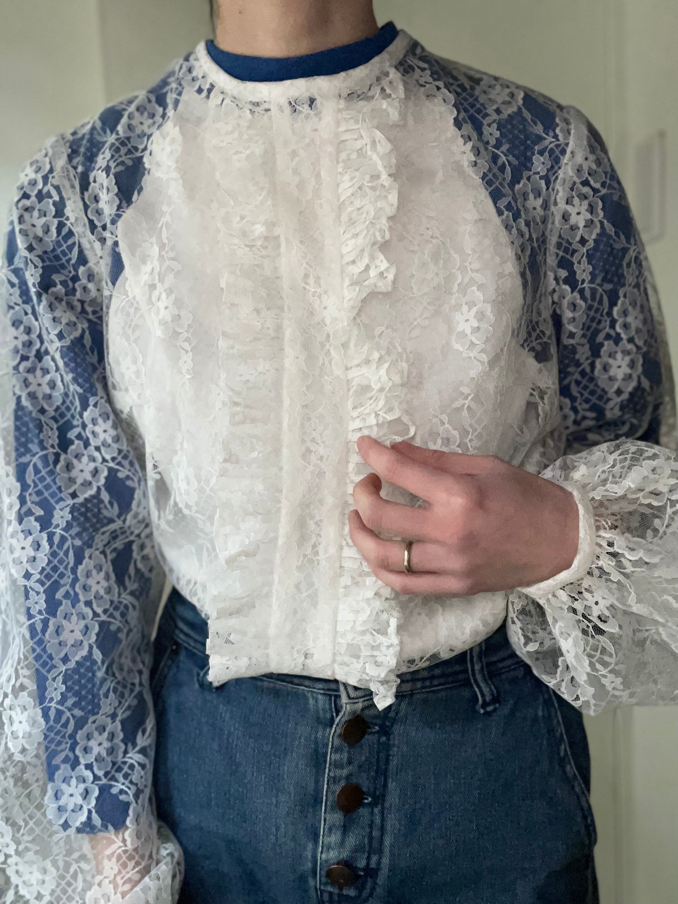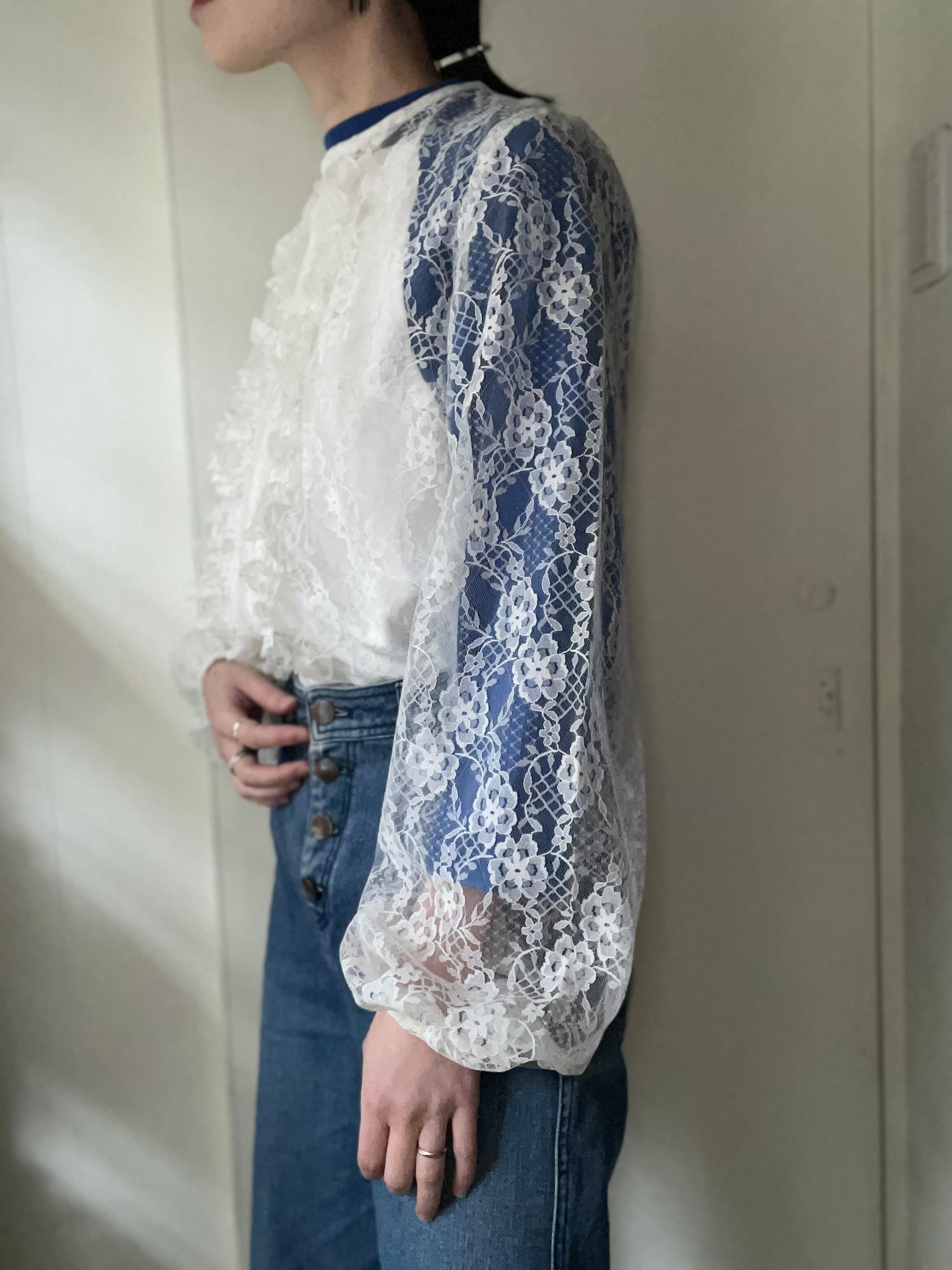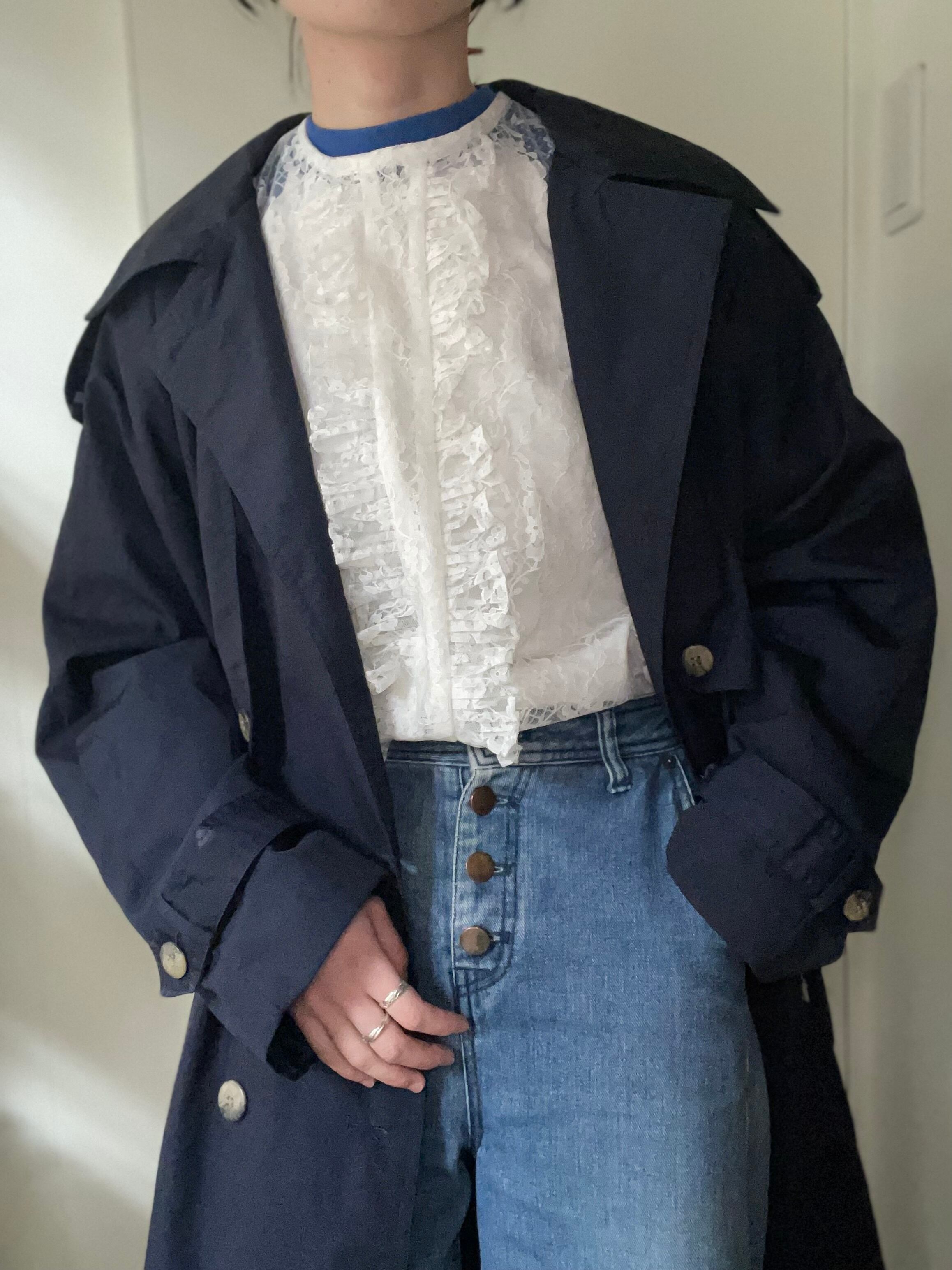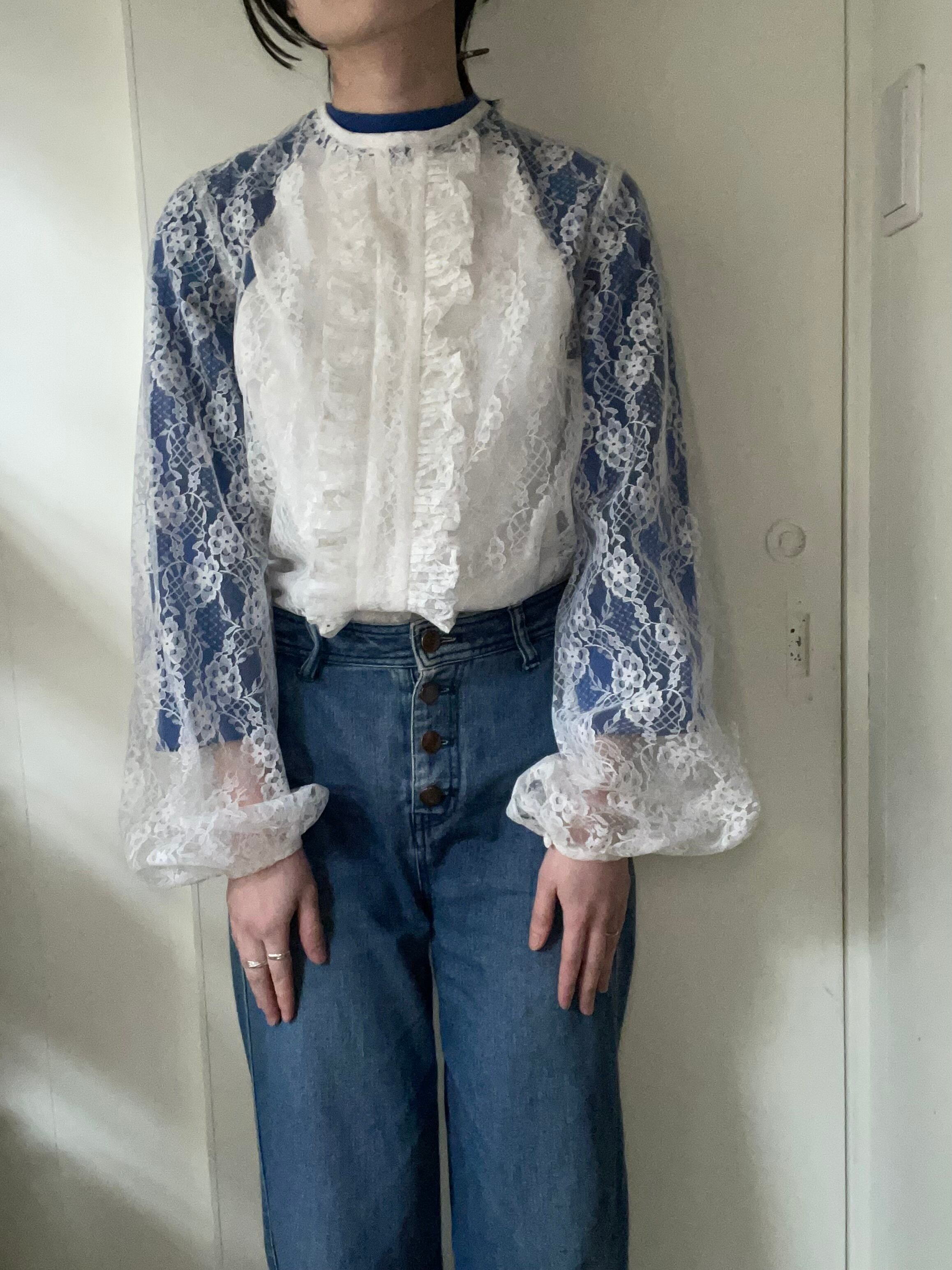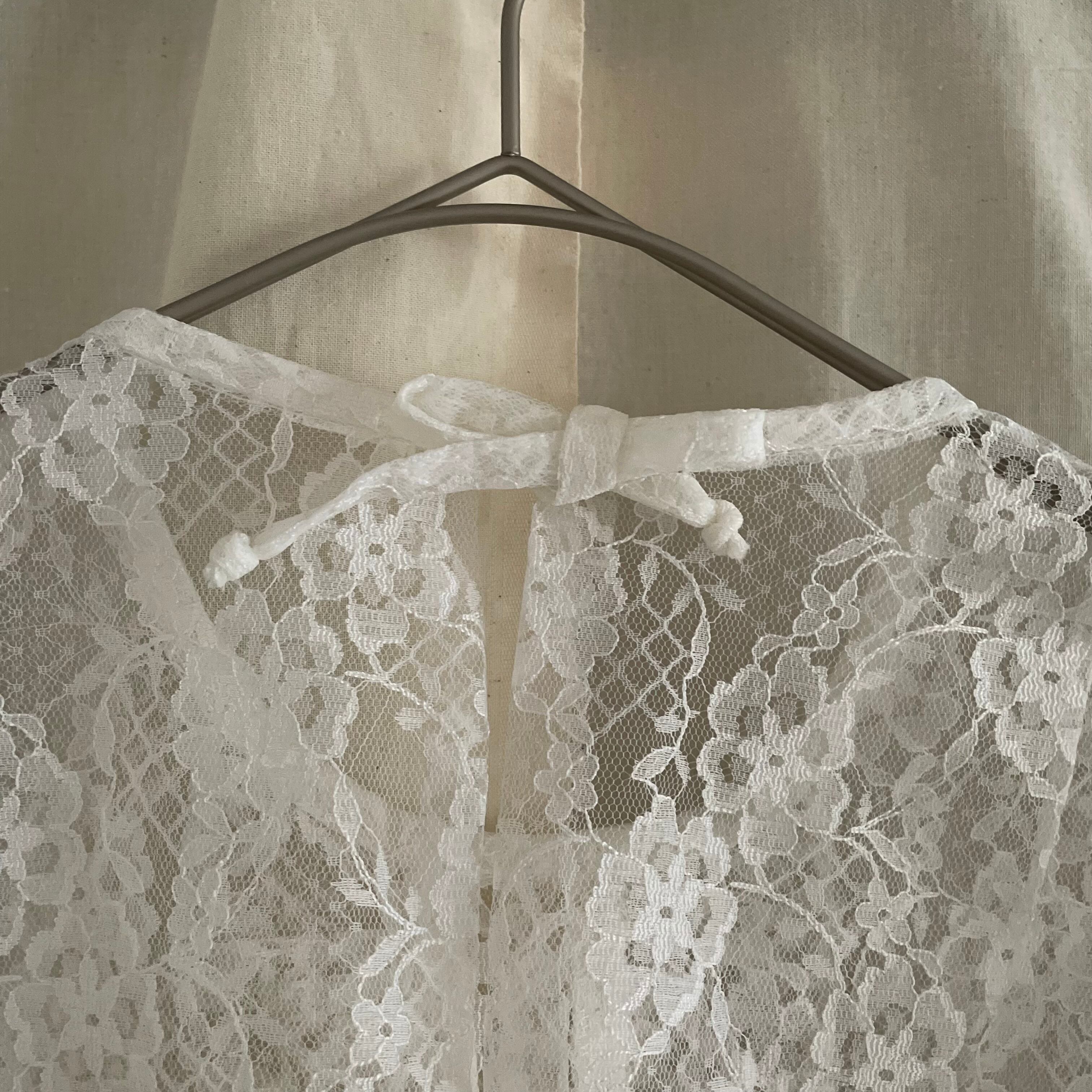 たくさん着ていくと生地が柔らかくなって着やすくなると思いますが、今は少し硬めのレース素材です。