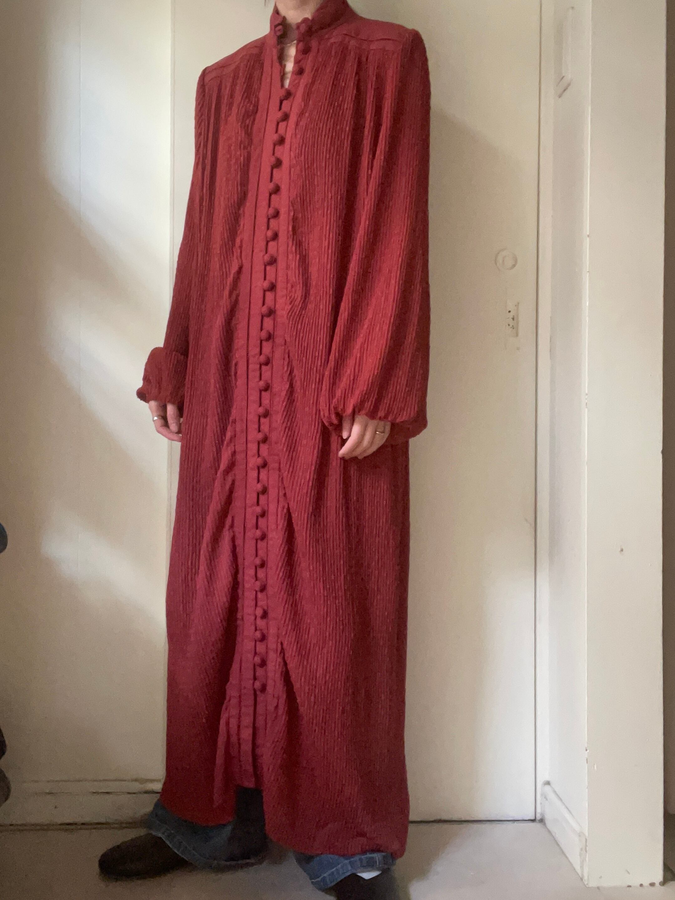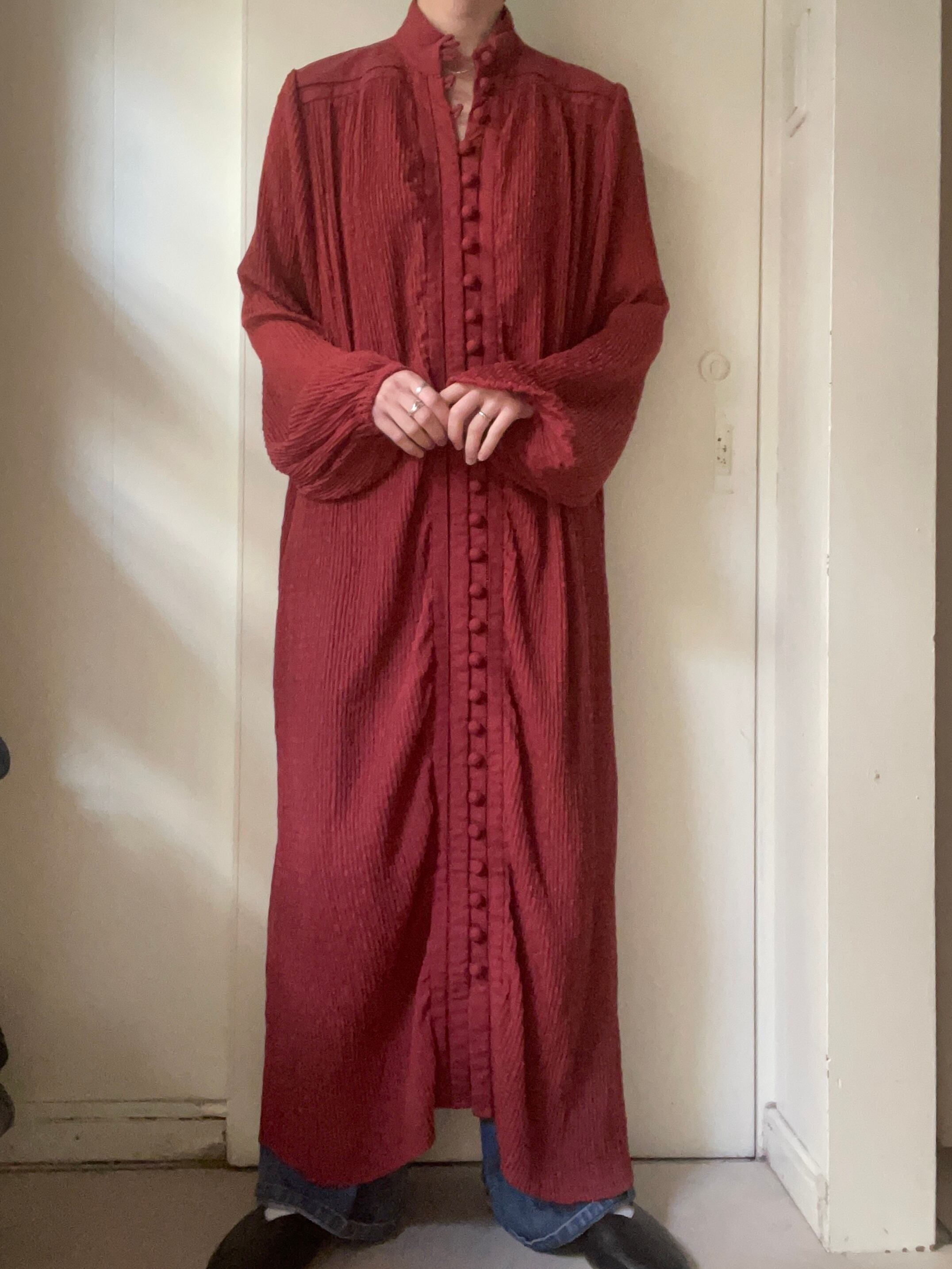 肩周りと前ボタンはしっかりめのコットン素材で、たっぷり付いたくるみボタンが古着ならではのデザインです◎