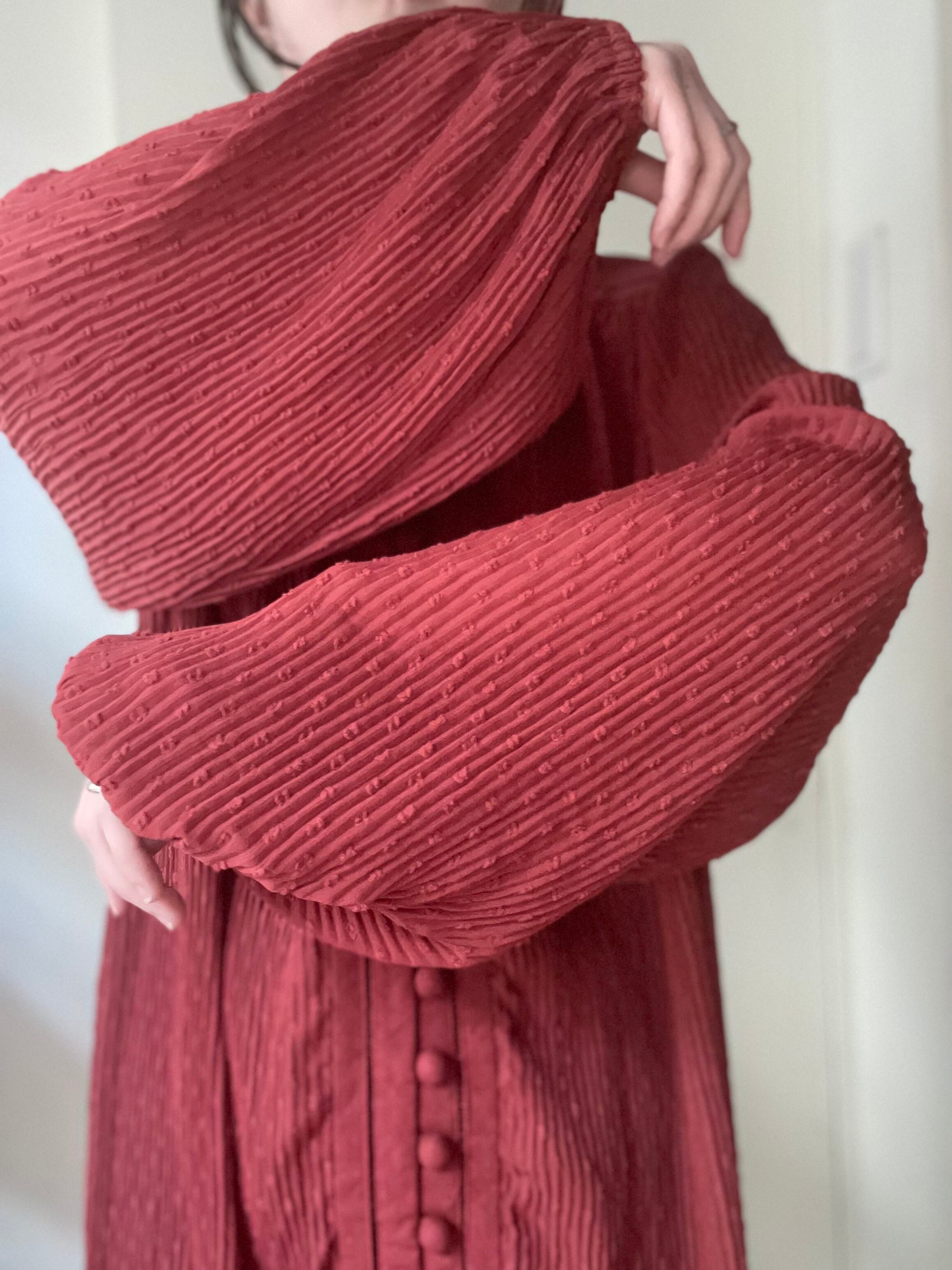 透け感のあるドット柄の生地で、透けすぎないのでインナーもあまり気にせずに着ていただけます