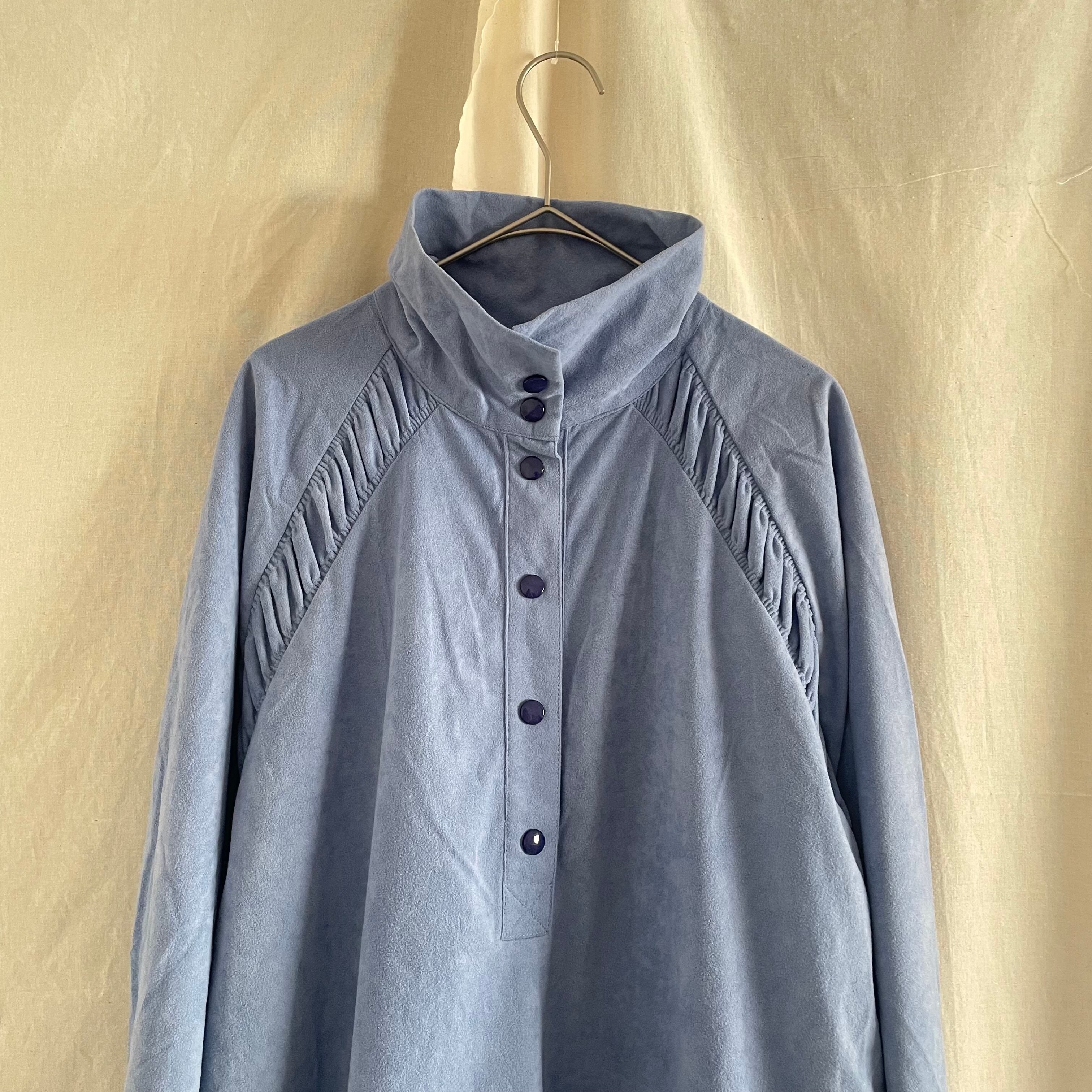 ハーフスナップ仕様の珍しいデザインで、スナップを上まで止めるとハイネックになるので、雰囲気を変えて楽しめる1枚です