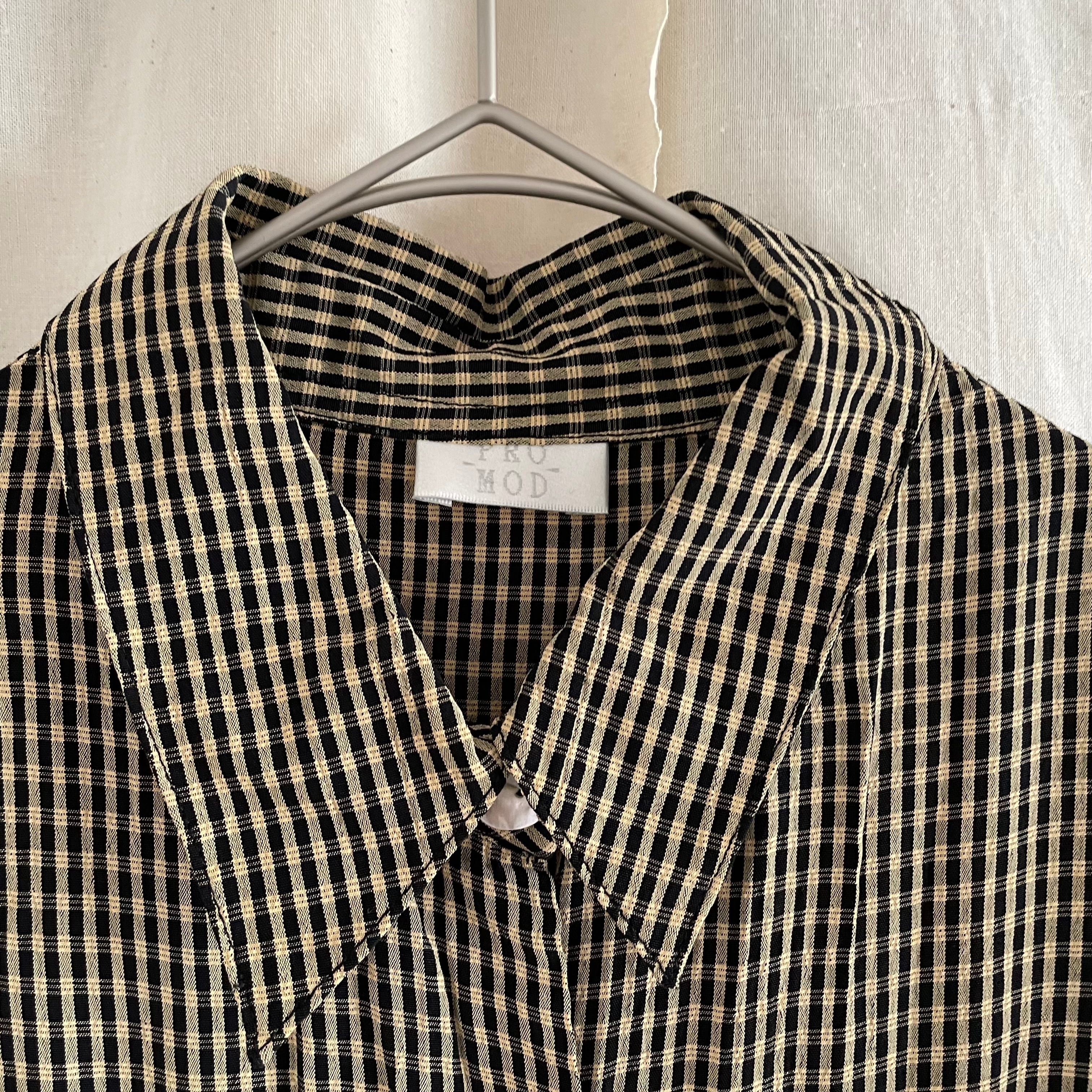細身なシルエットで細かいギンガムチェックとベージュ×ブラックのカラーリングが大人な印象の1枚です