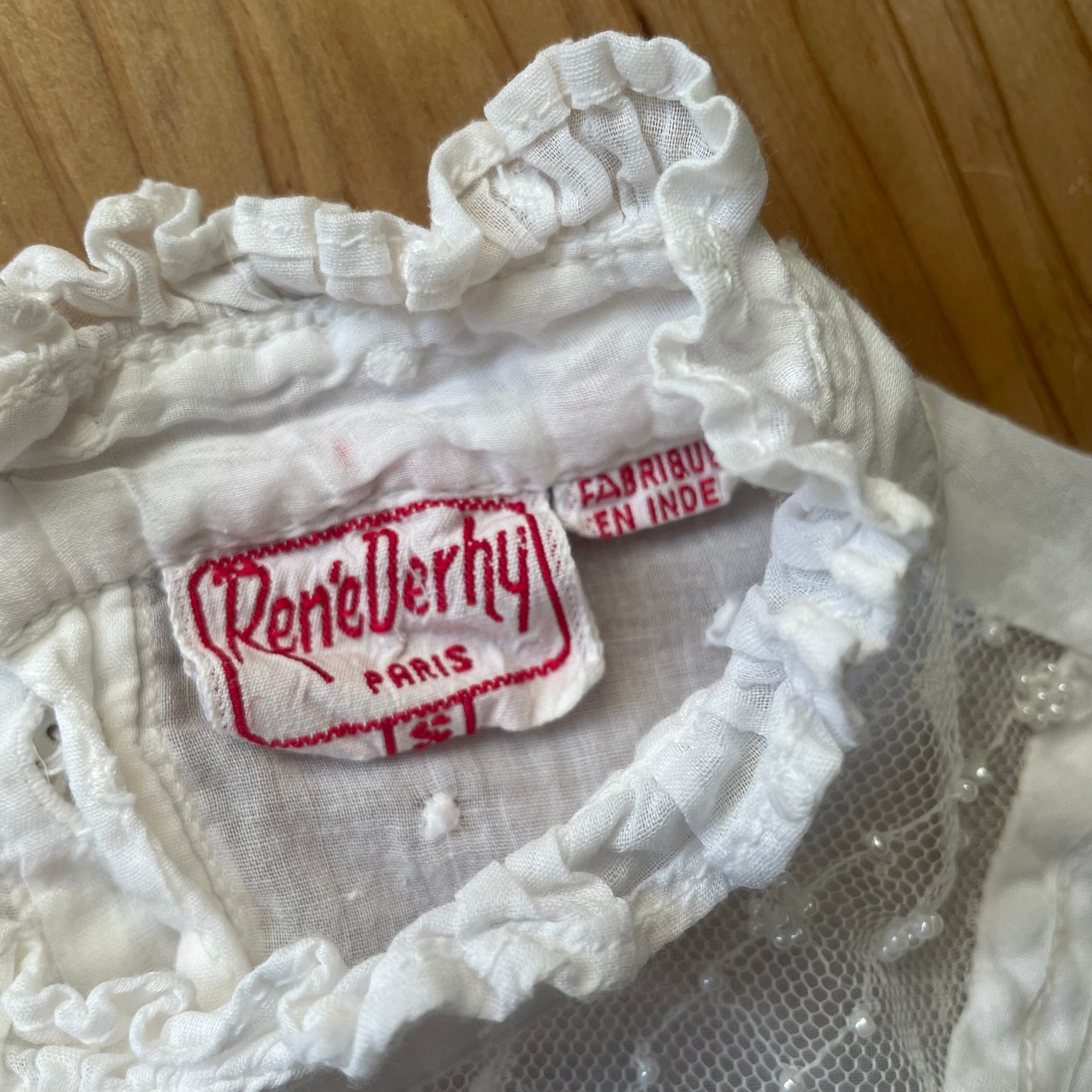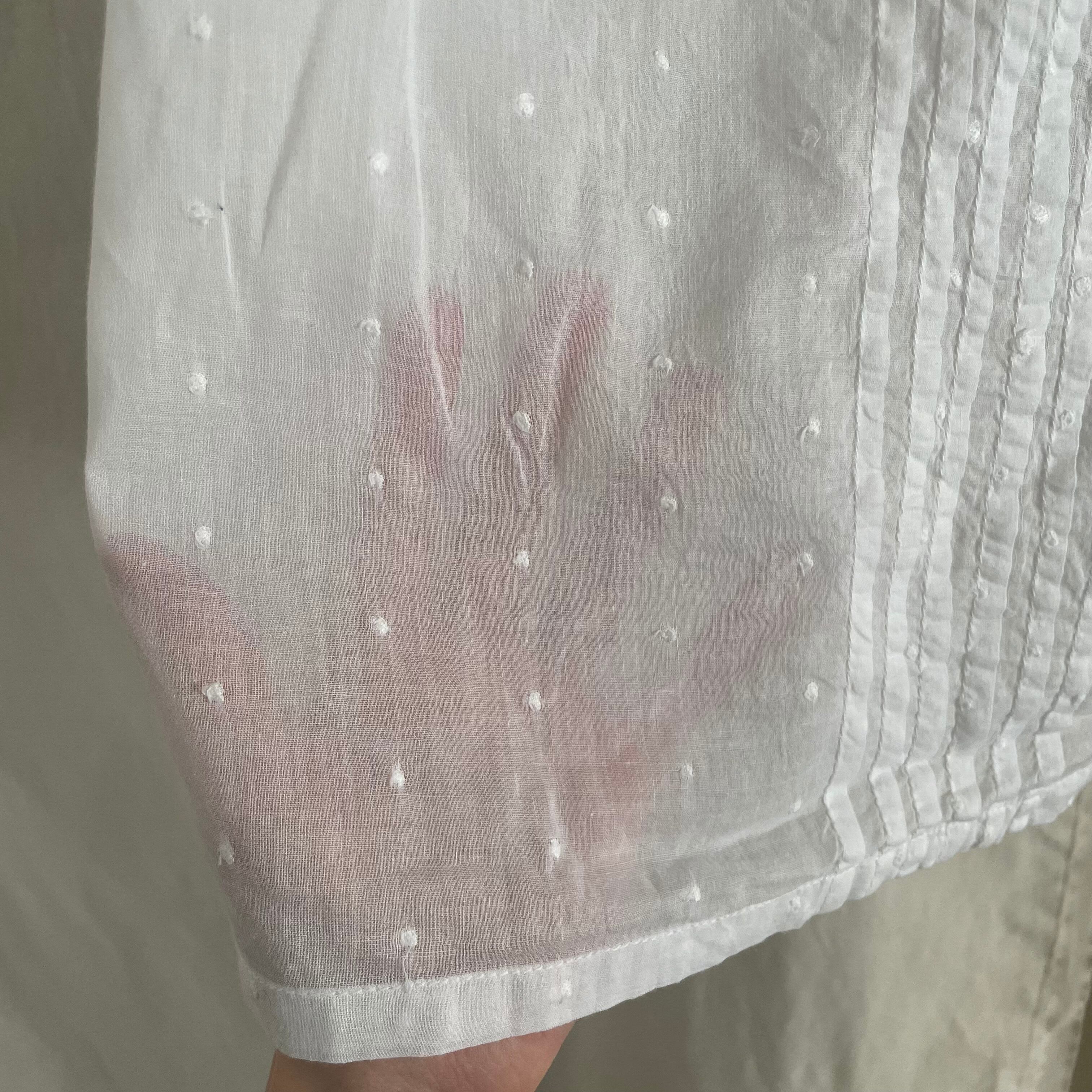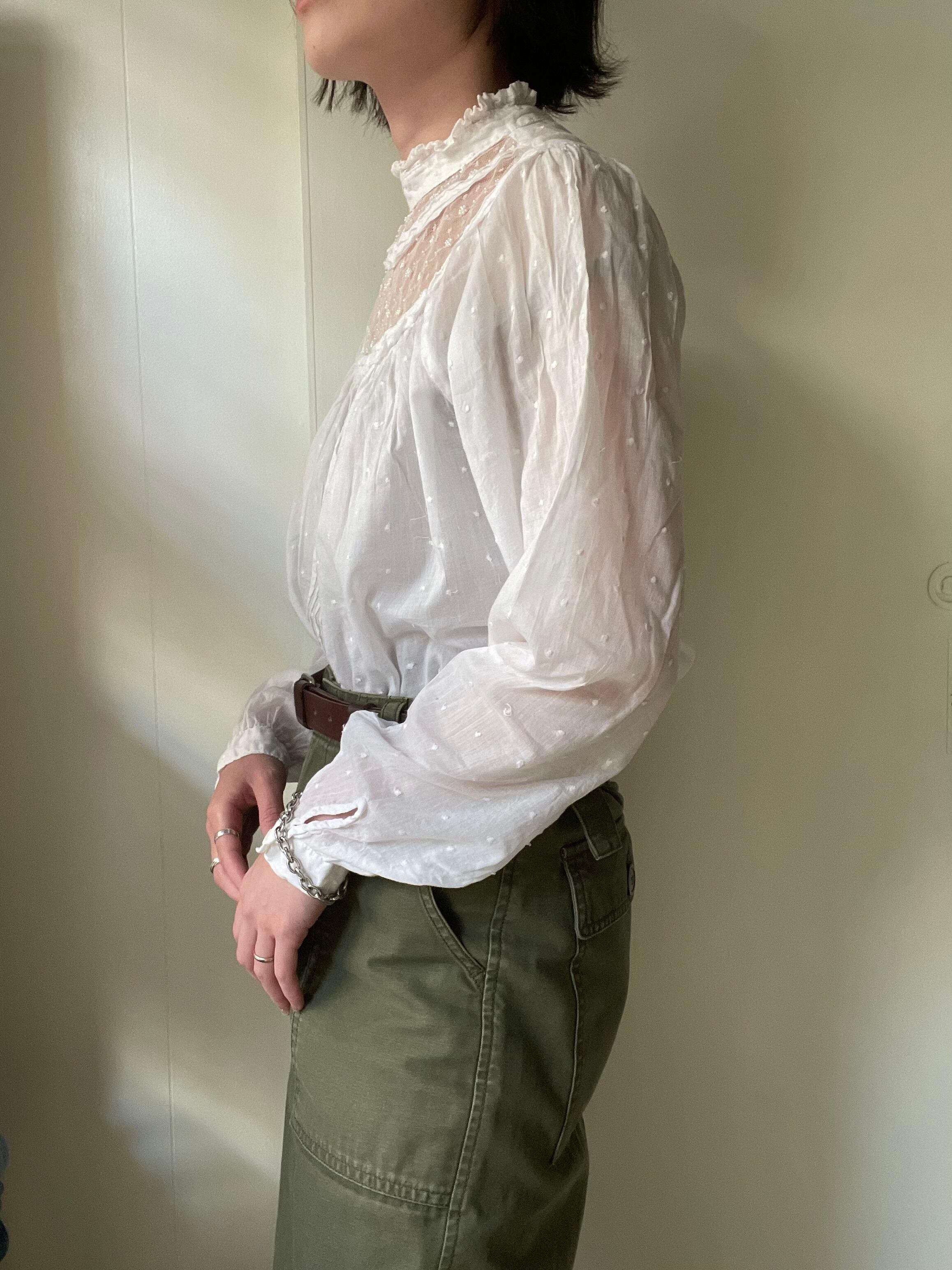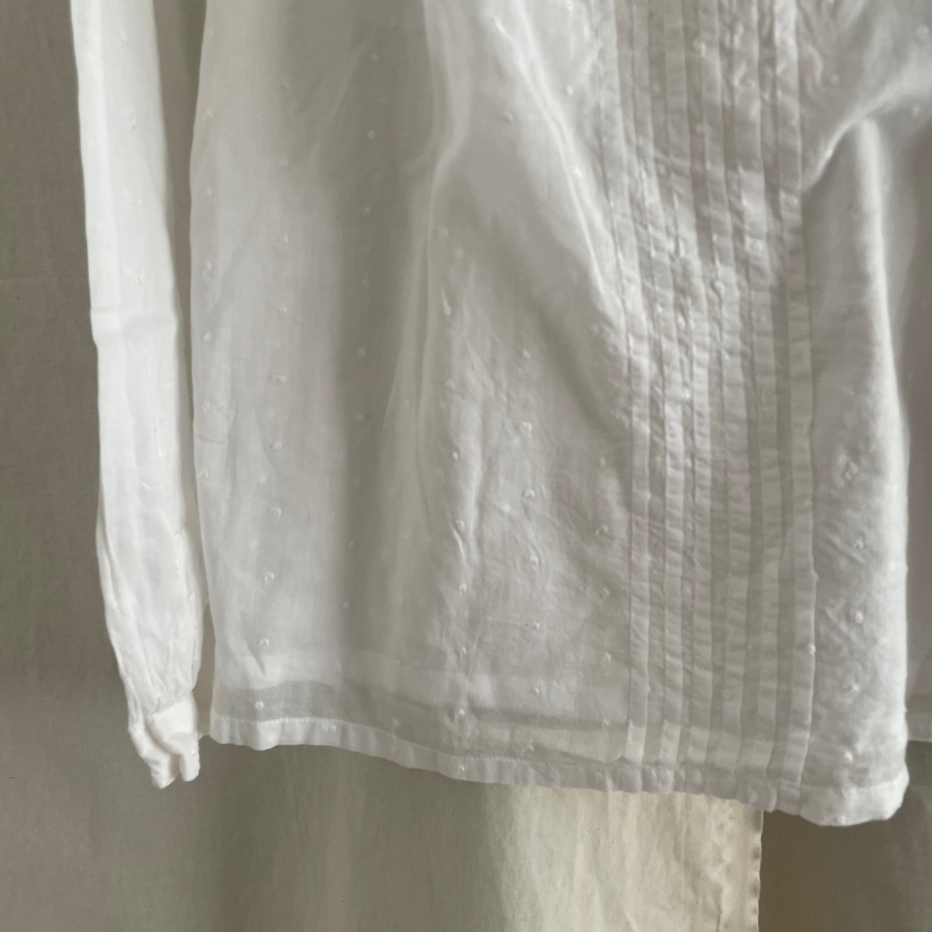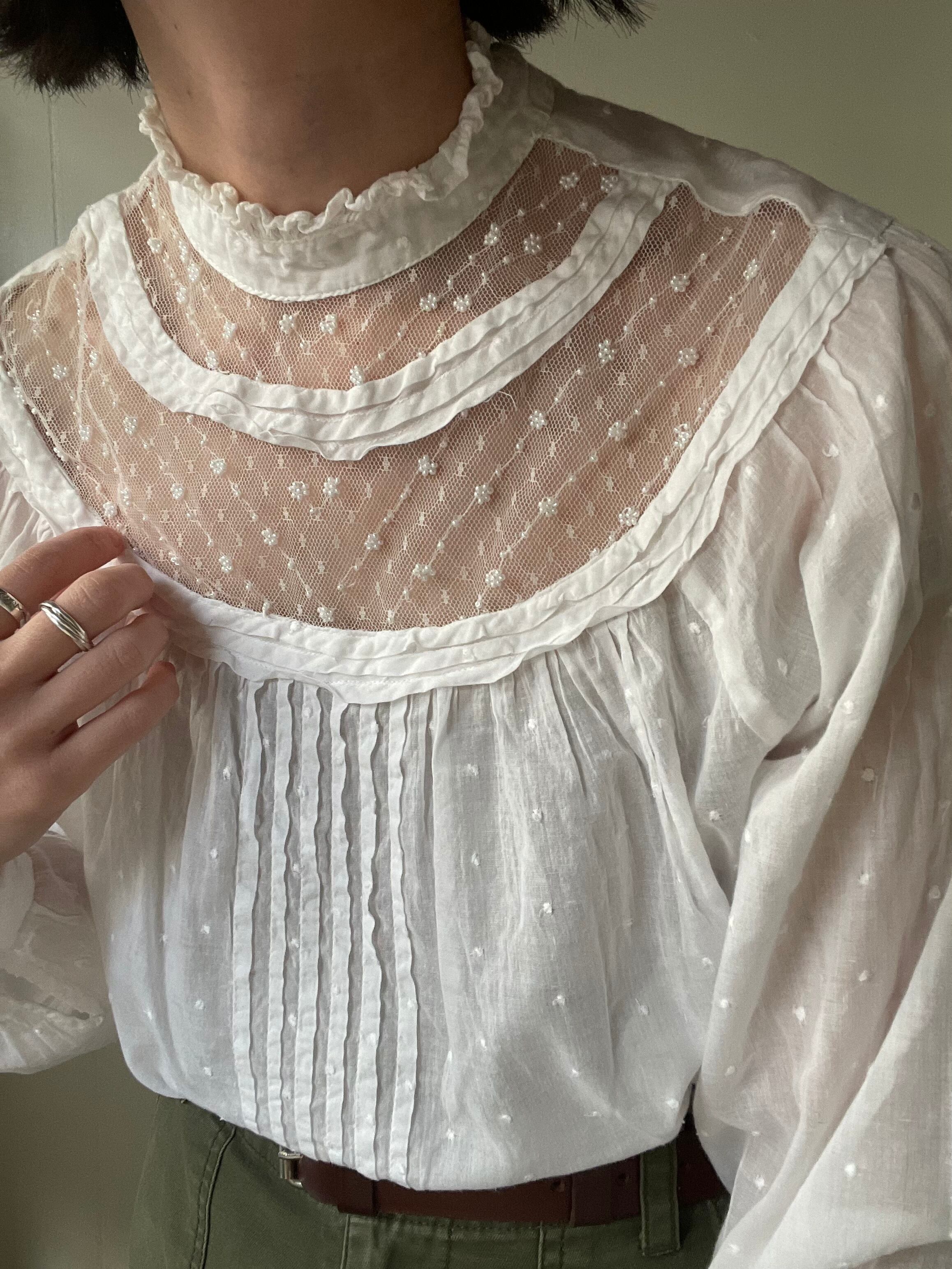 透け感のある胸元にビーズがあしらわれたコットンブラウス