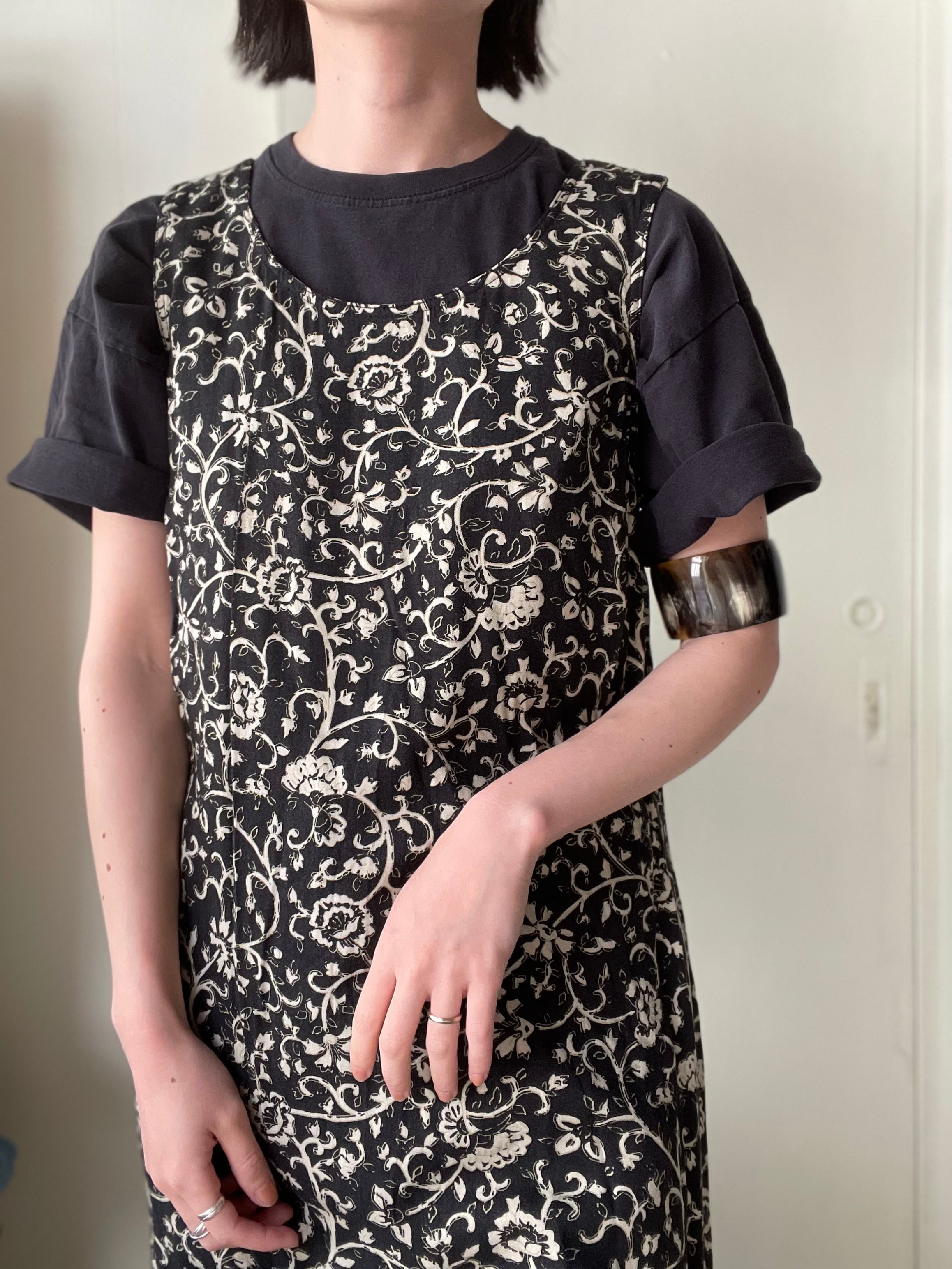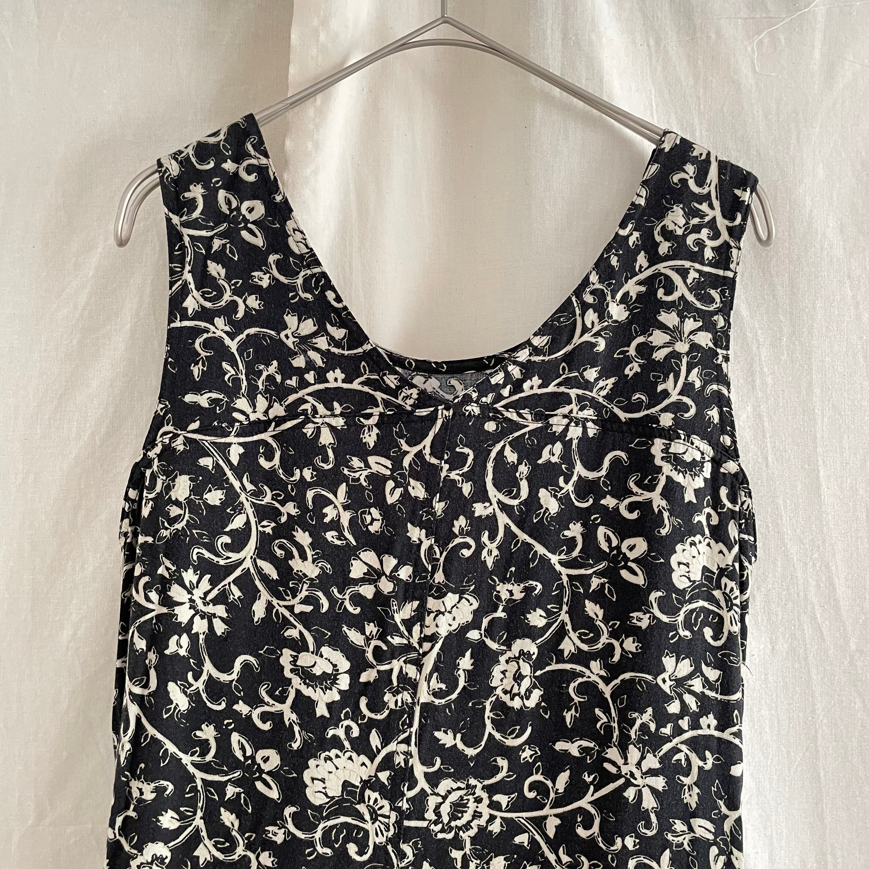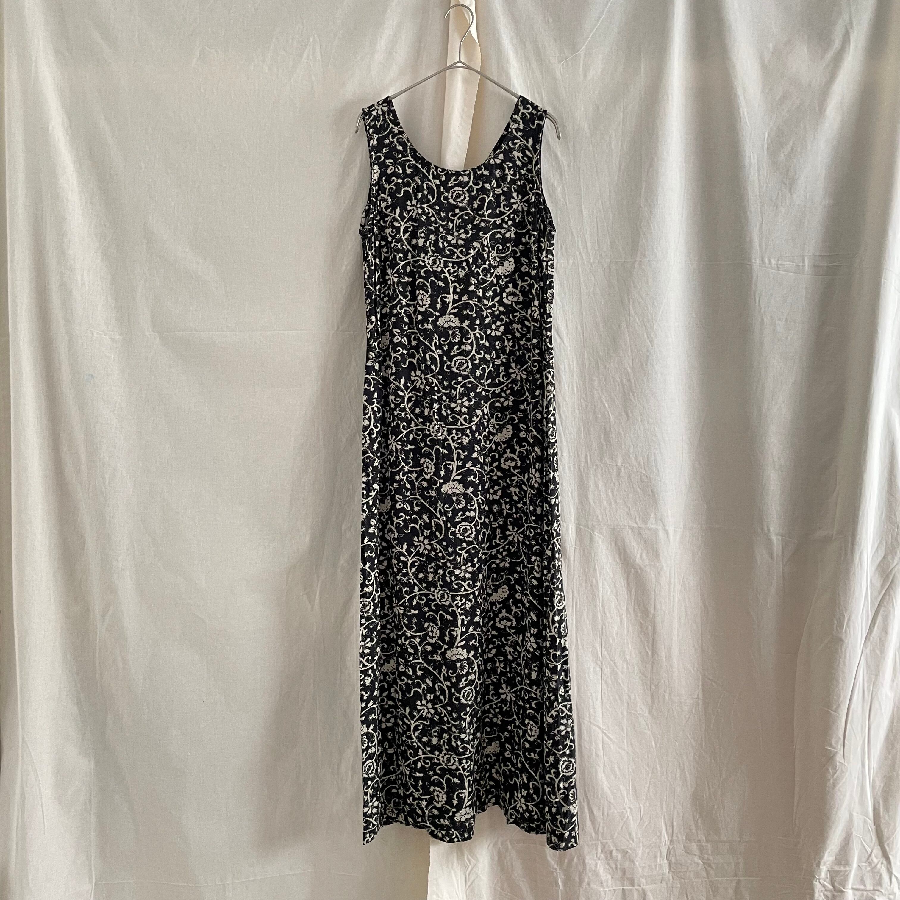 お花と蔦のプリントが華やかなノースリーブワンピース