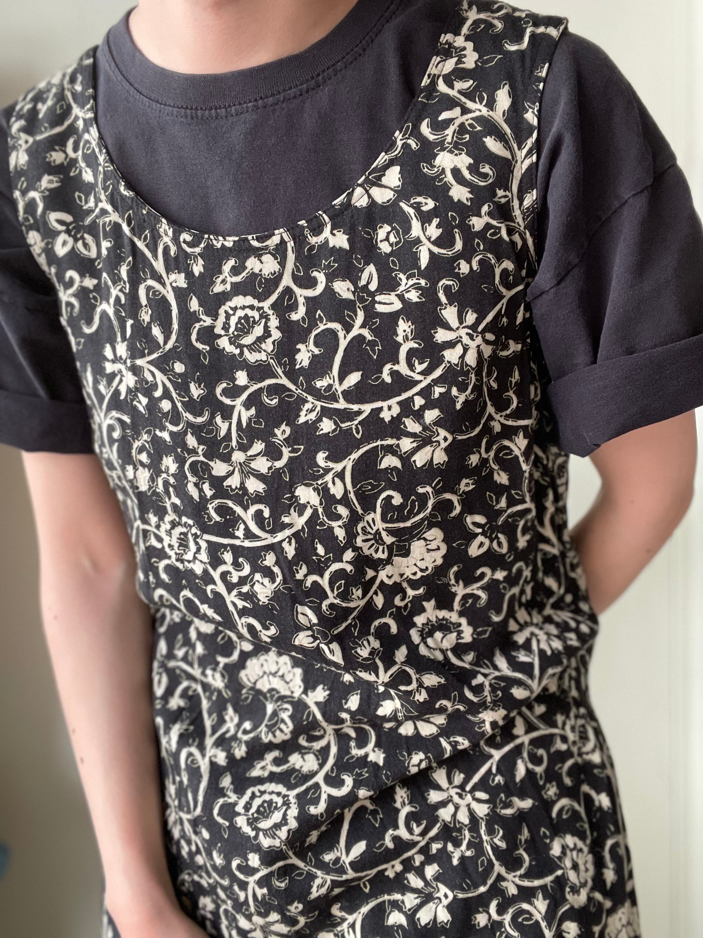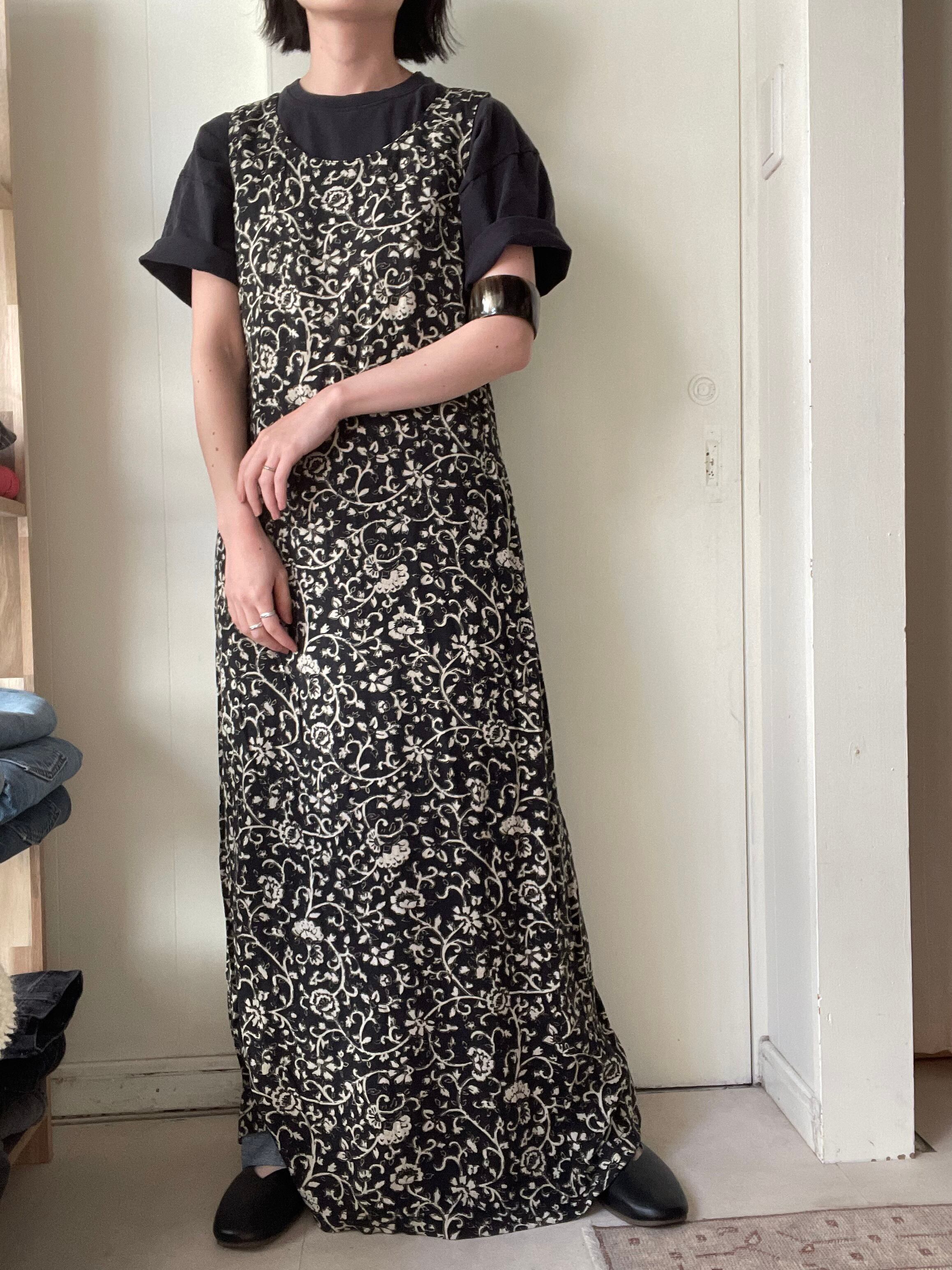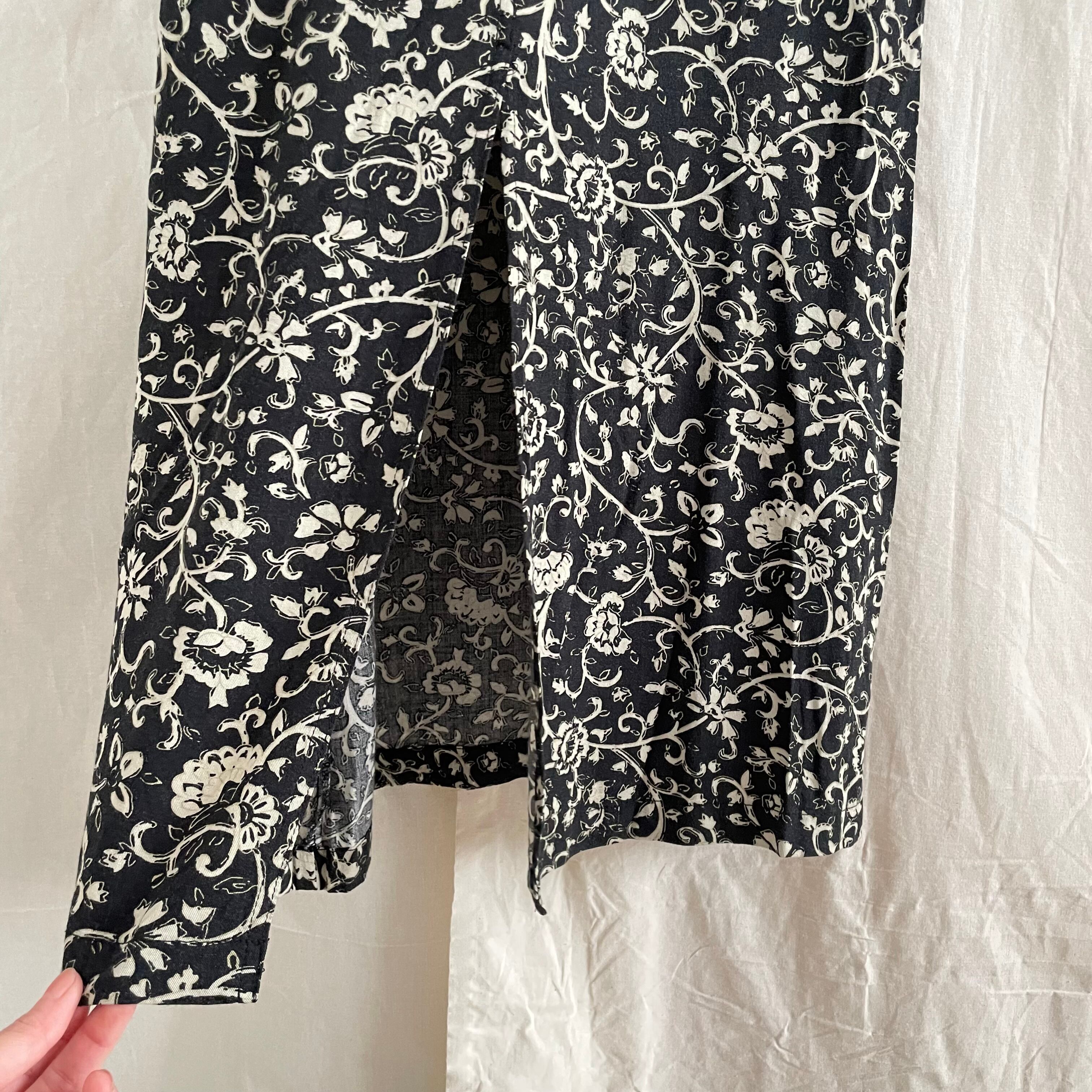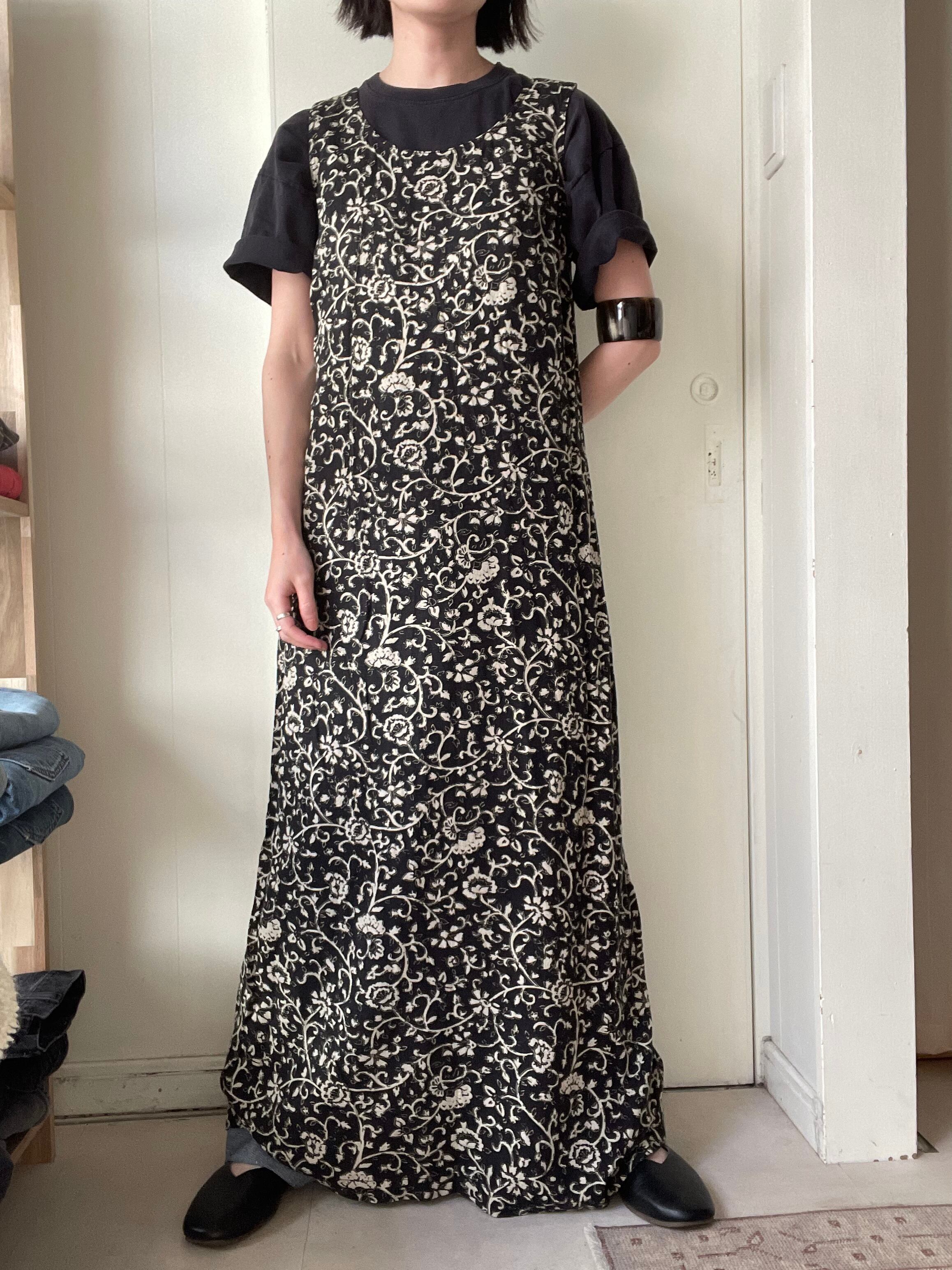 お花と蔦のプリントが華やかなノースリーブワンピース