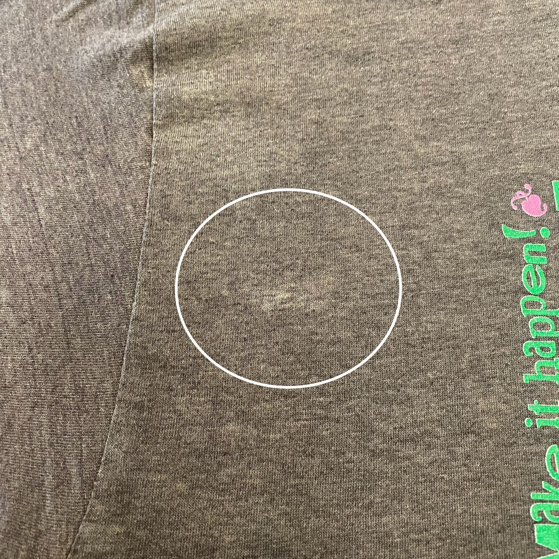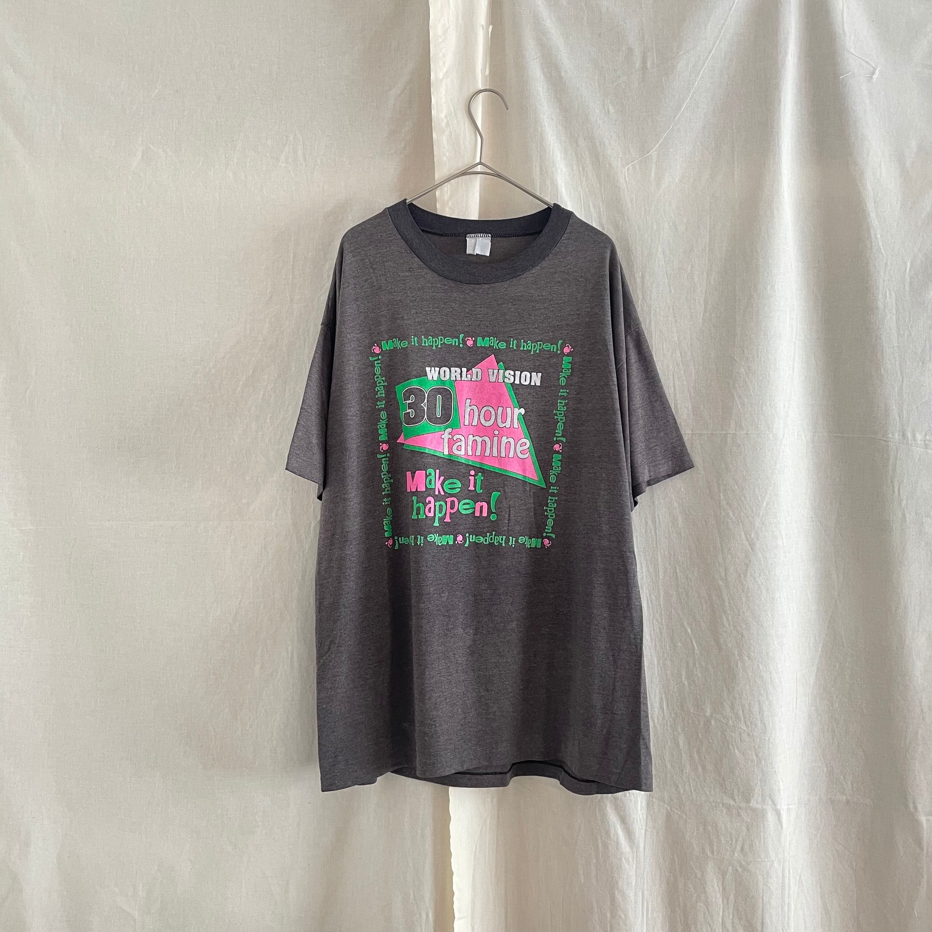 ダークグレーのボディにポップなカラーのプリントが映えるプリントTシャツ