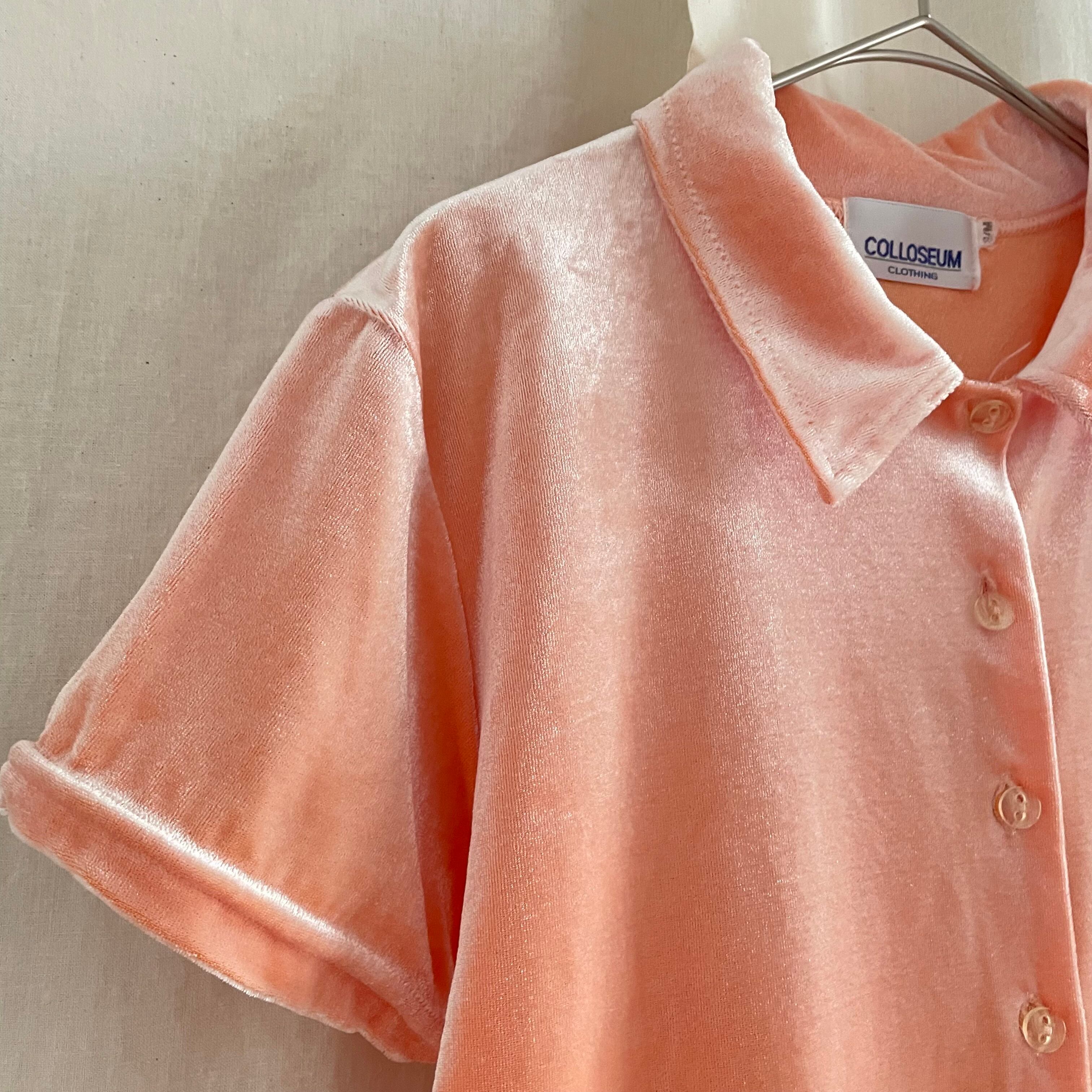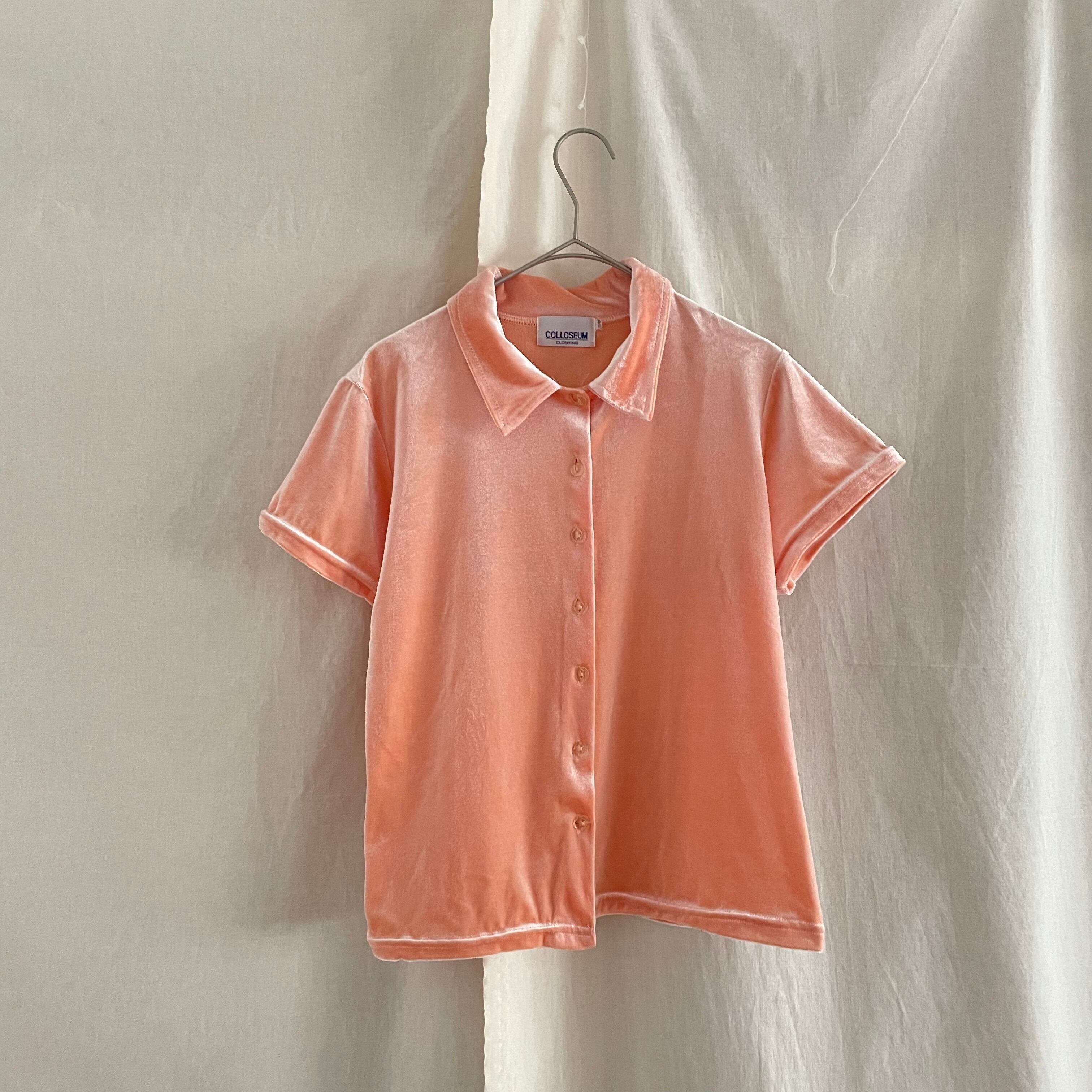 シャーベットのようなサーモンピンクのお色味が可愛いベロアトップス