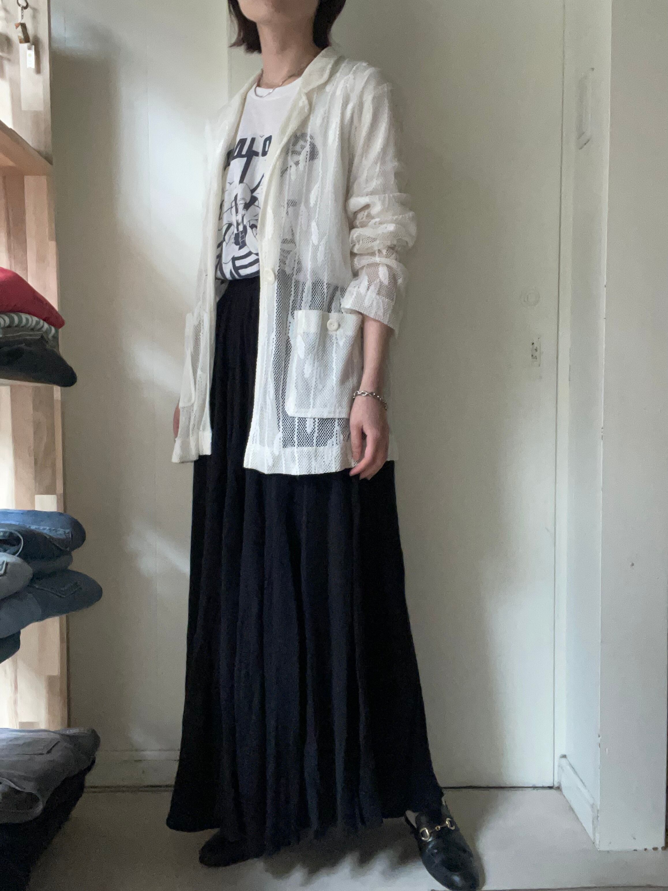 裏地はありませんが、履くと透け感が無いので1枚で着られるアイテムです