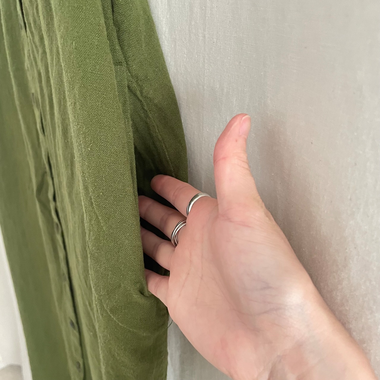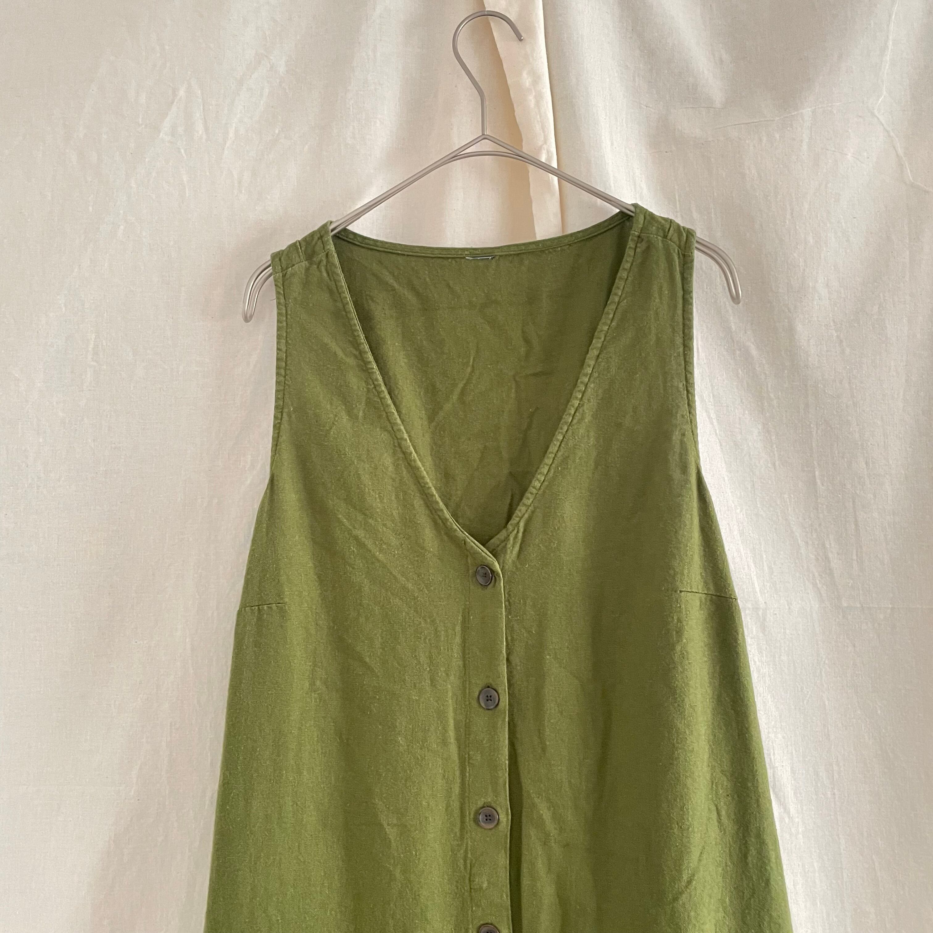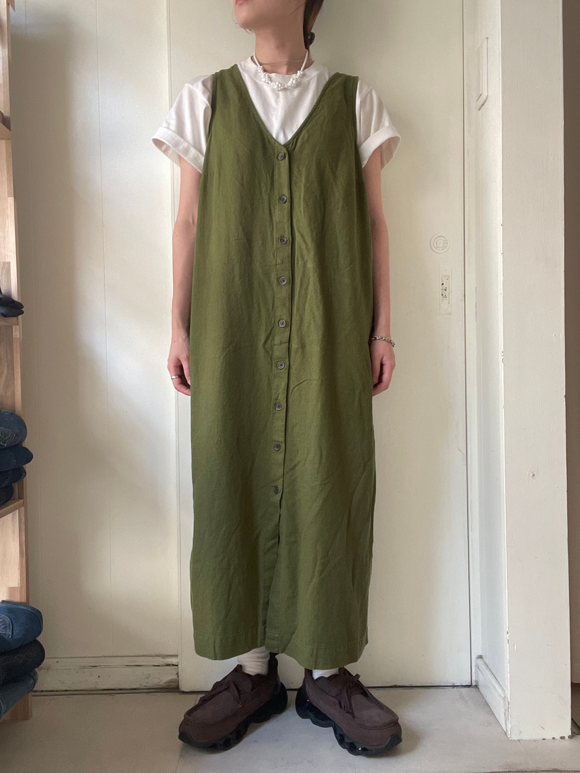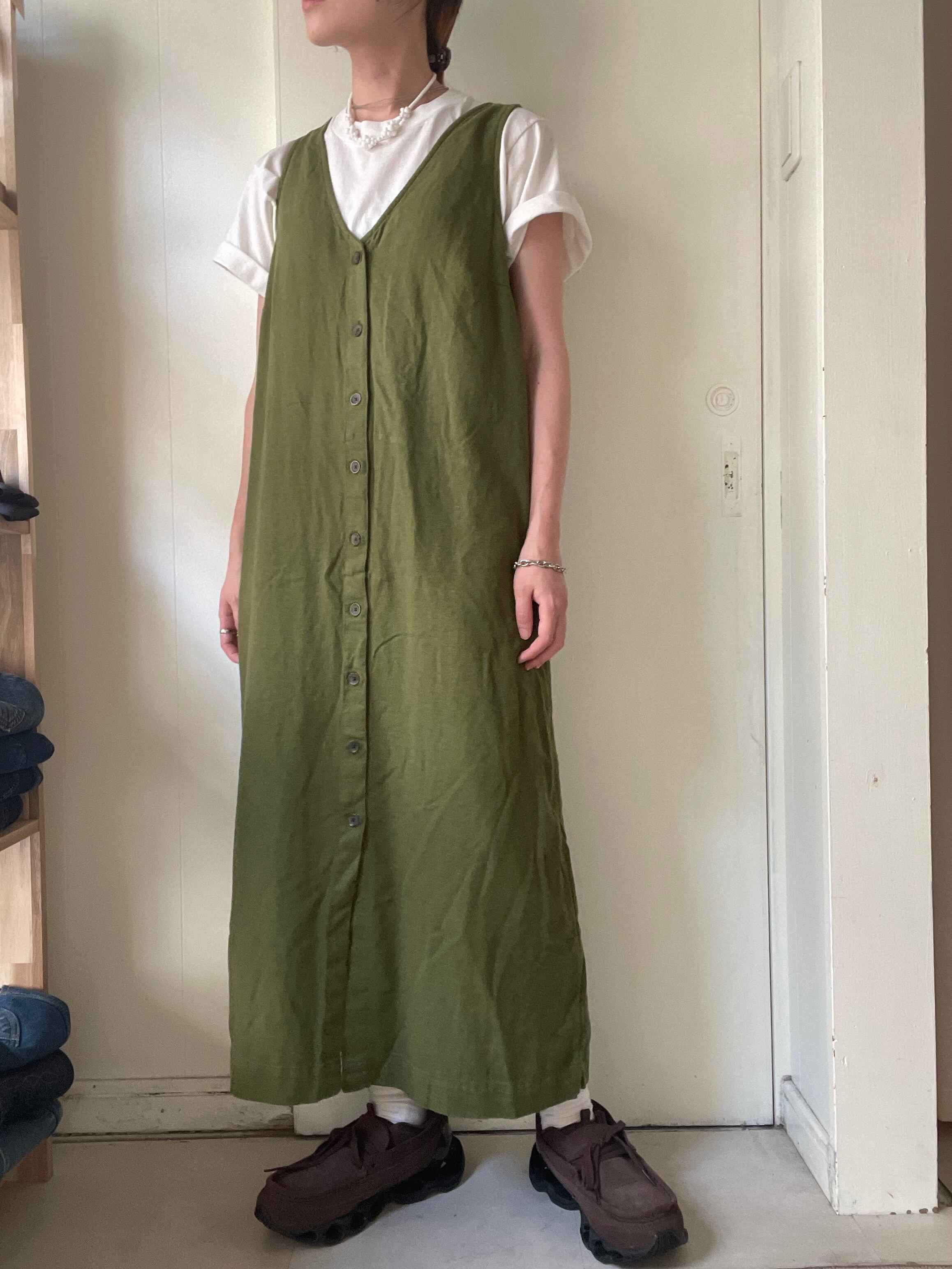 リネン、レーヨンのお素材で涼しく、裏地はありませんが透け感も無いので1枚で着ていただけるアイテムです