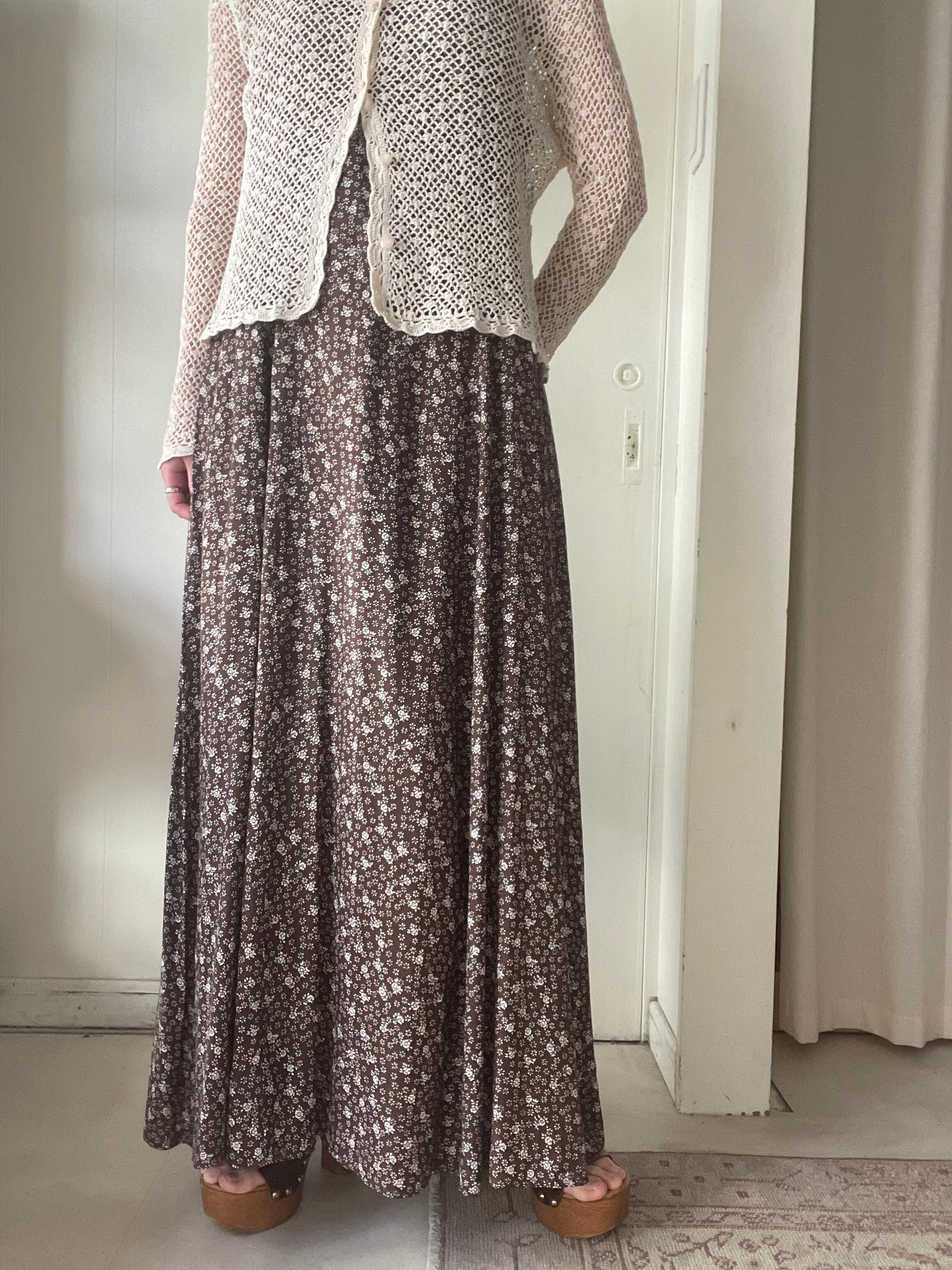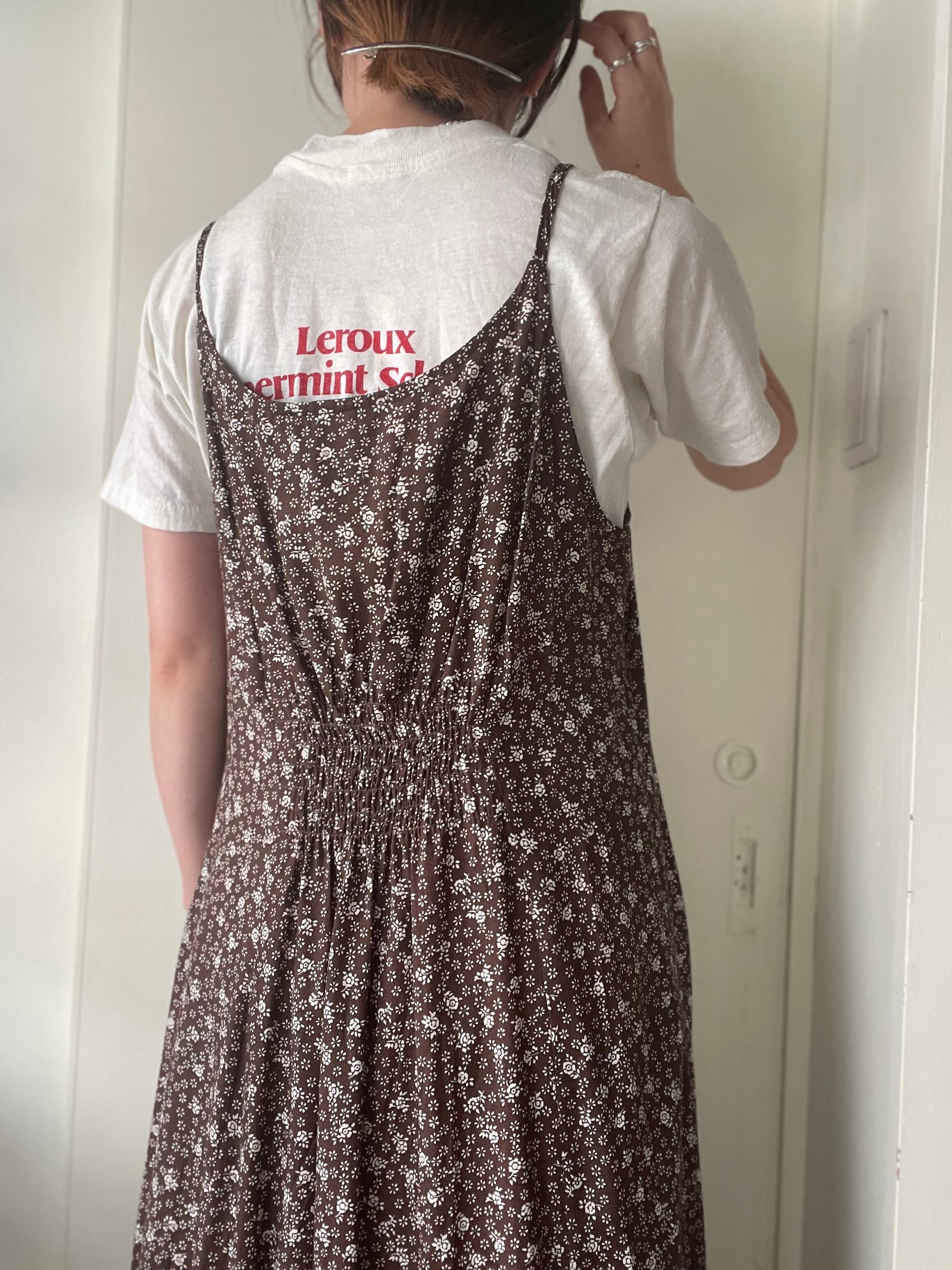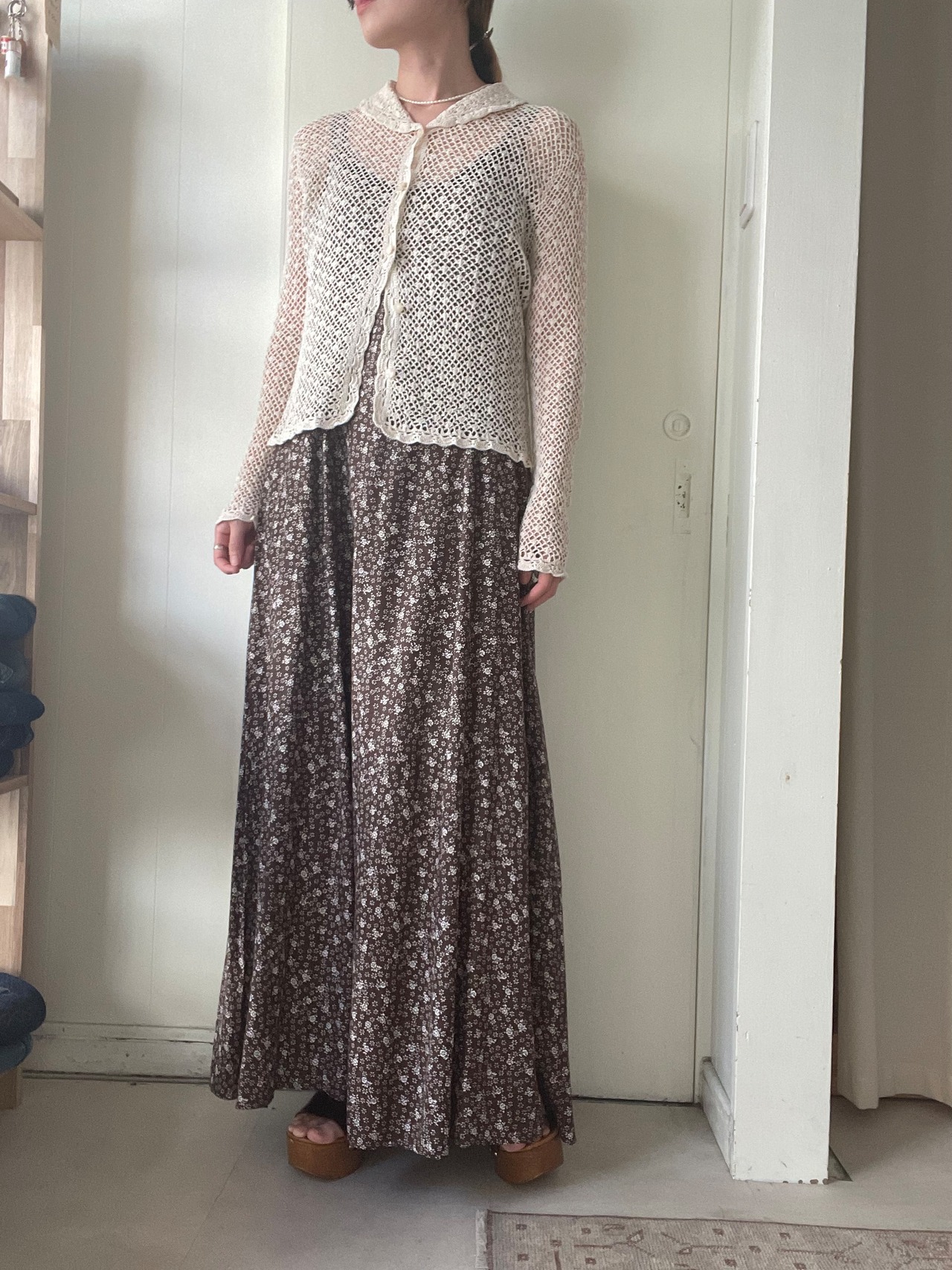 控えめな小花柄と合わせやすいブラウンカラーで、普段古着を着ない方でも着ていただきやすいアイテム