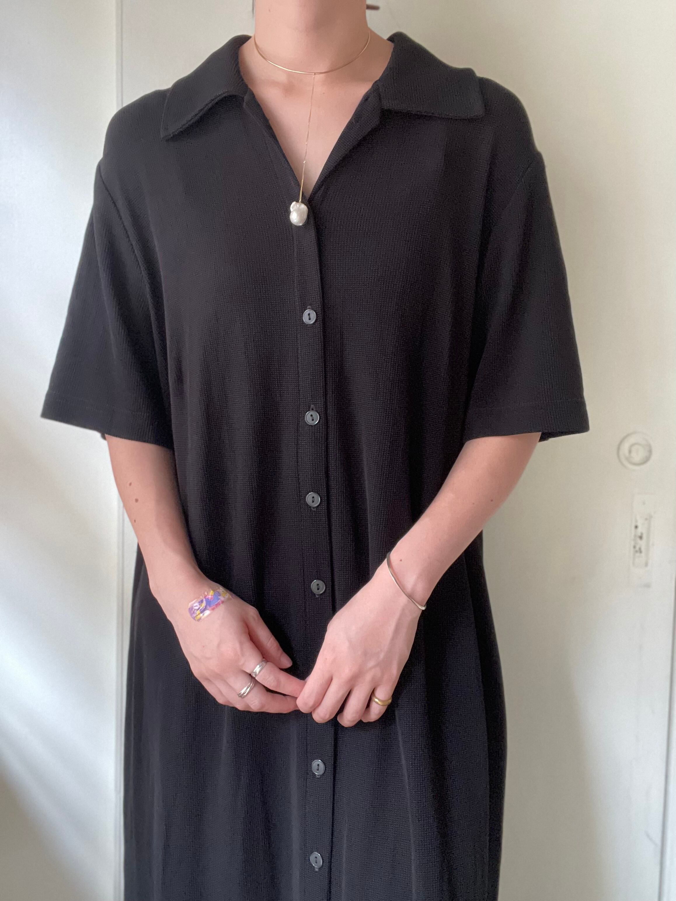 アセテート素材でどろっとした重みのある、独特の質感のワンピースです