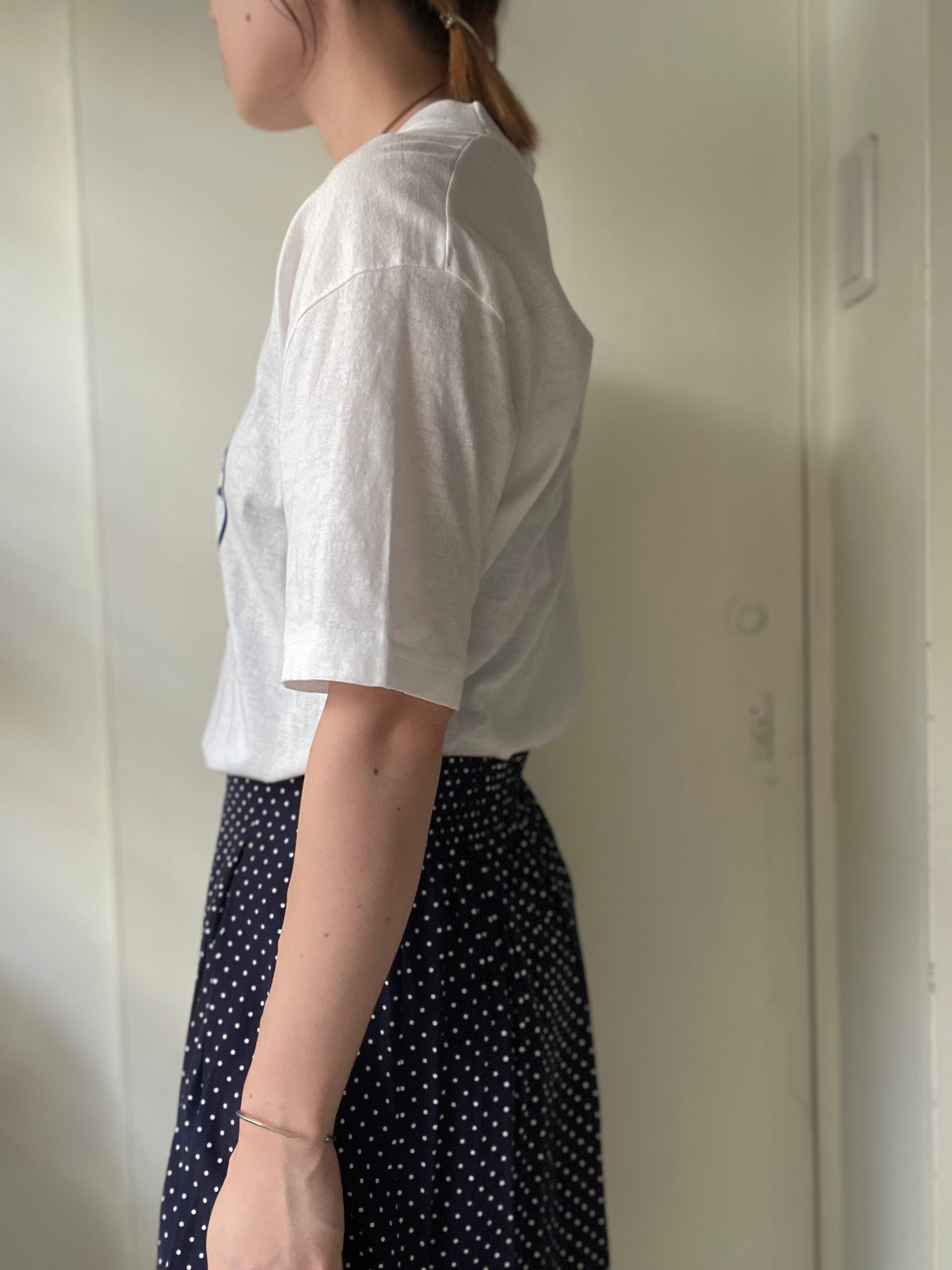 シンプルなカラー、プリントなので柄物とも合わせやすく着まわしのきくTシャツです◎