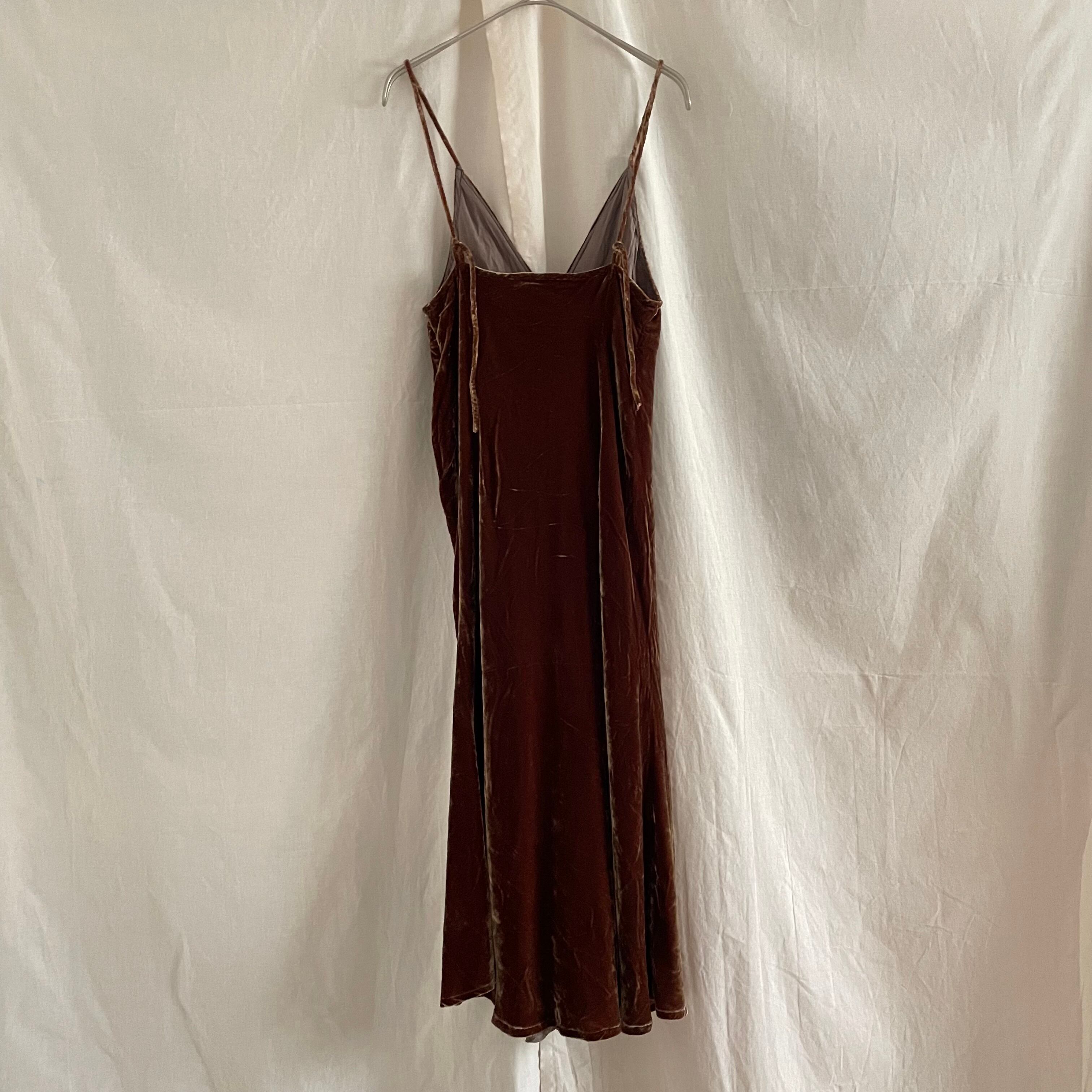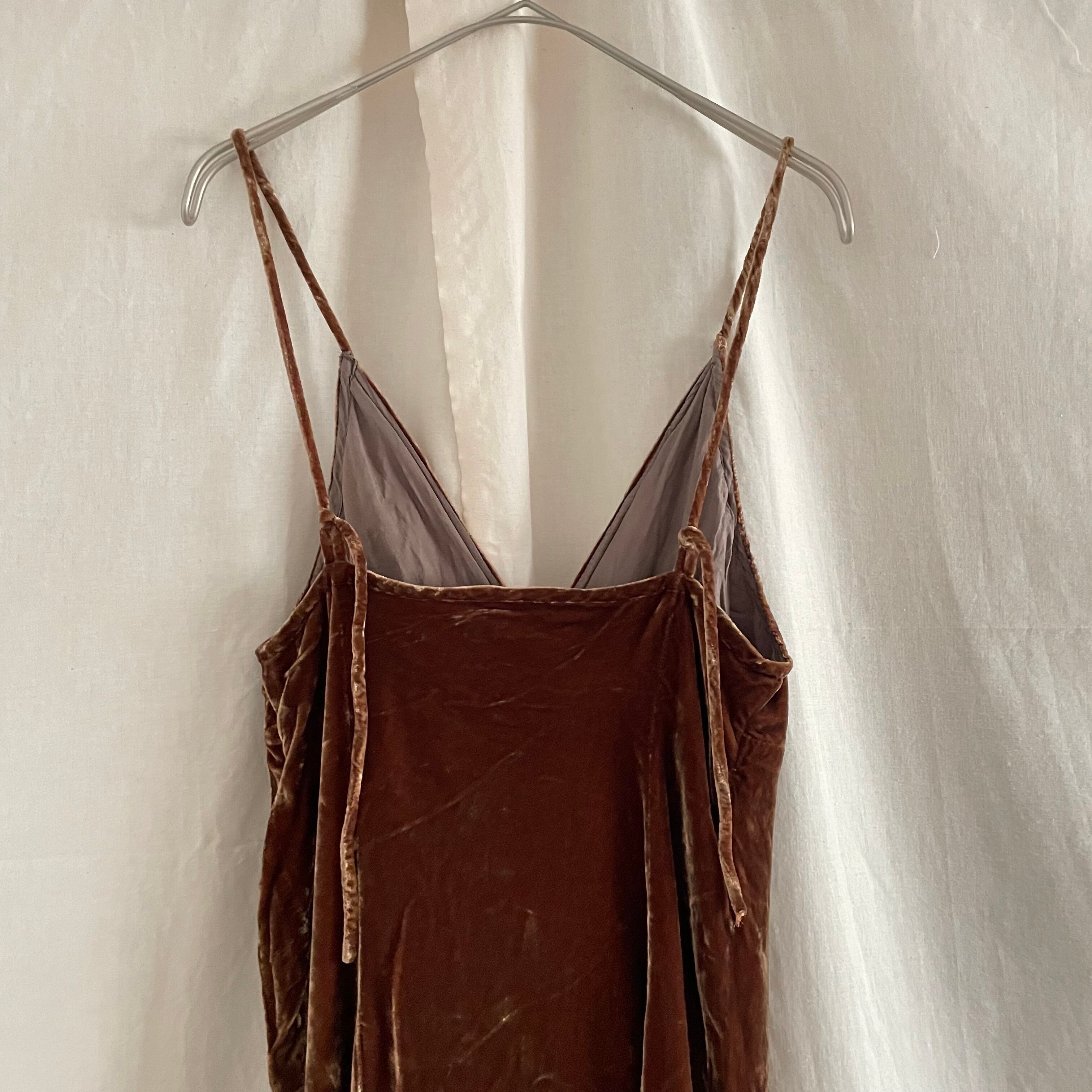 光沢のあるベロア生地のキャミワンピース