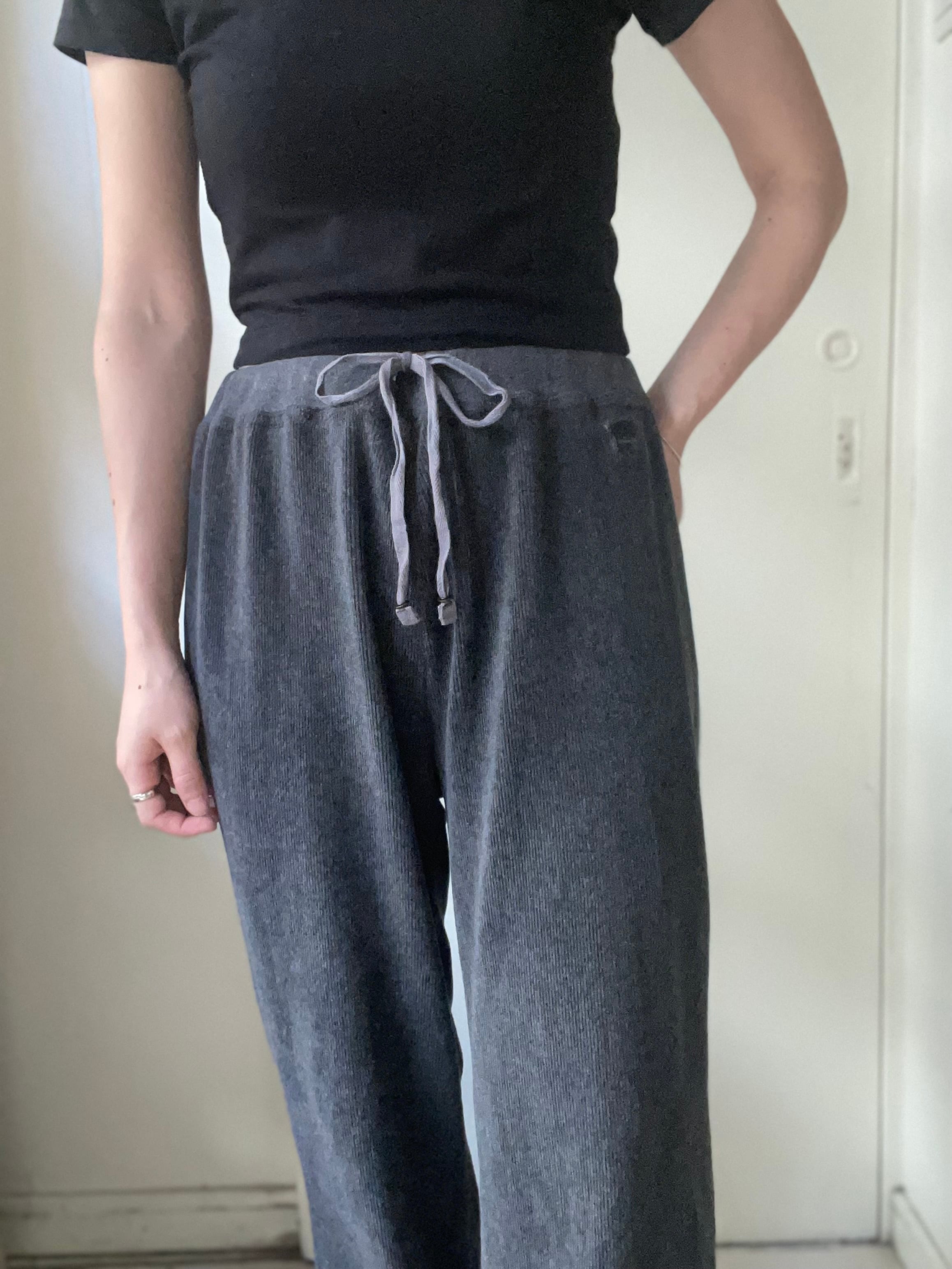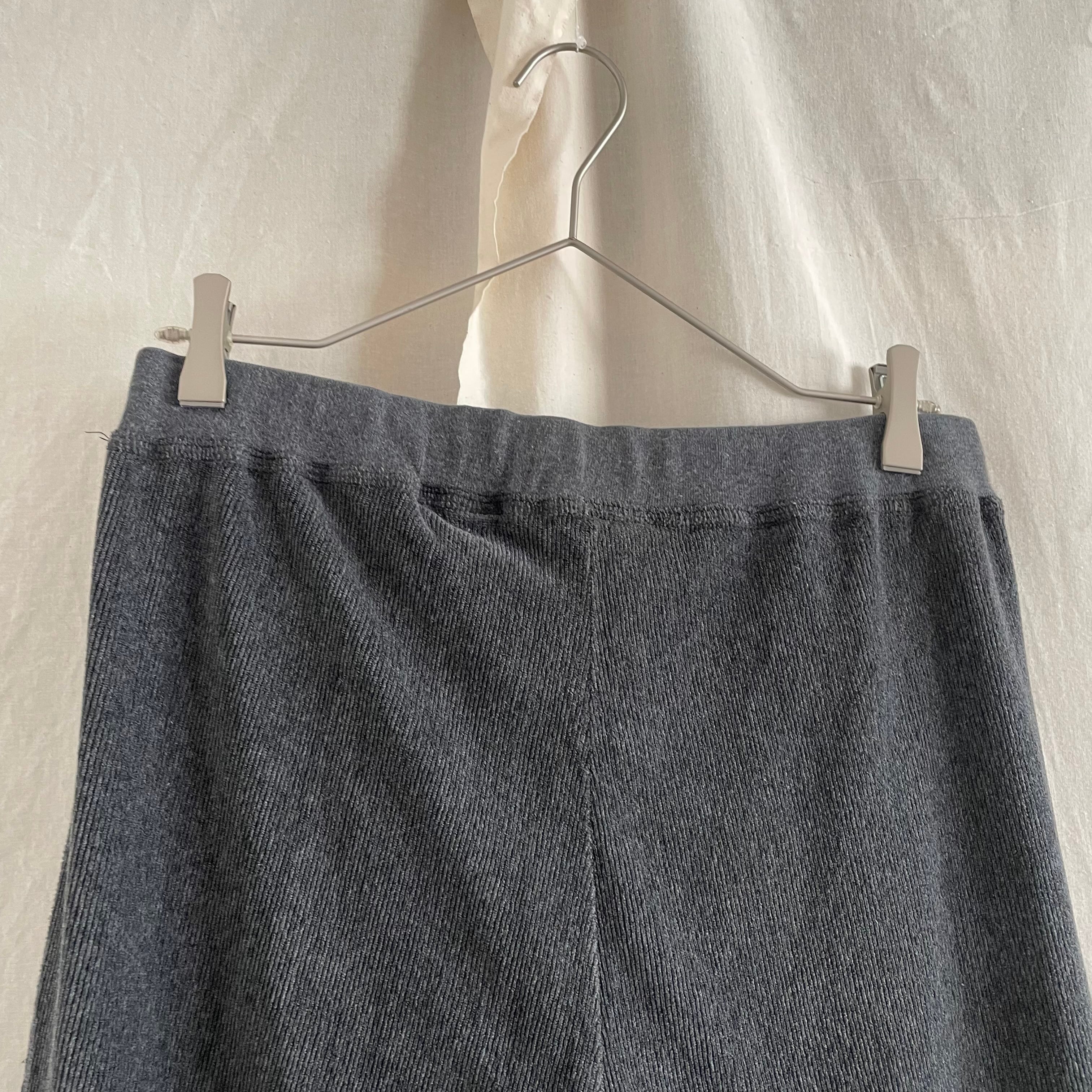 細いリブが入ったベロア生地のストレートパンツ