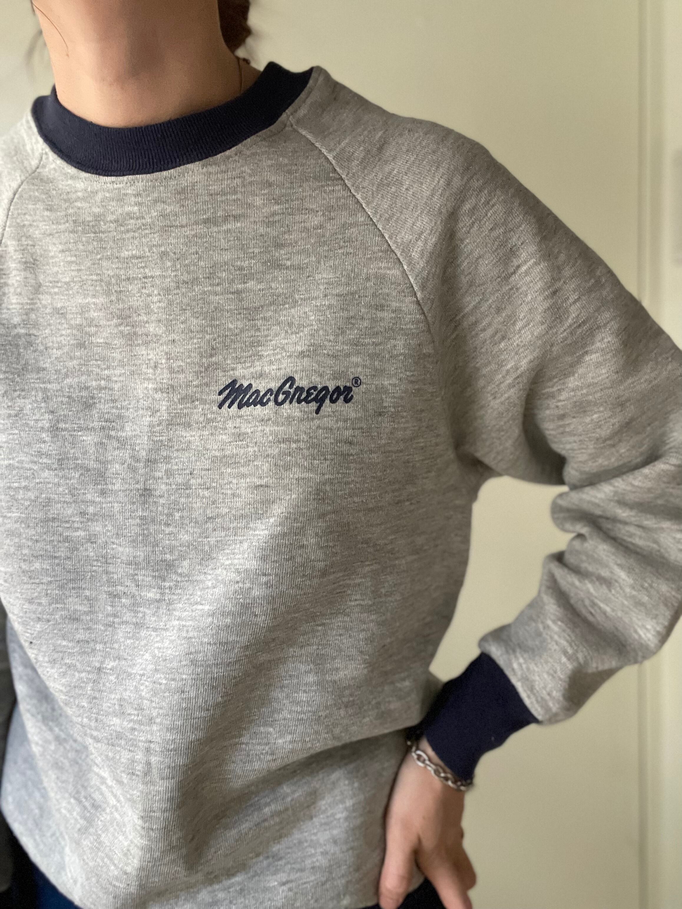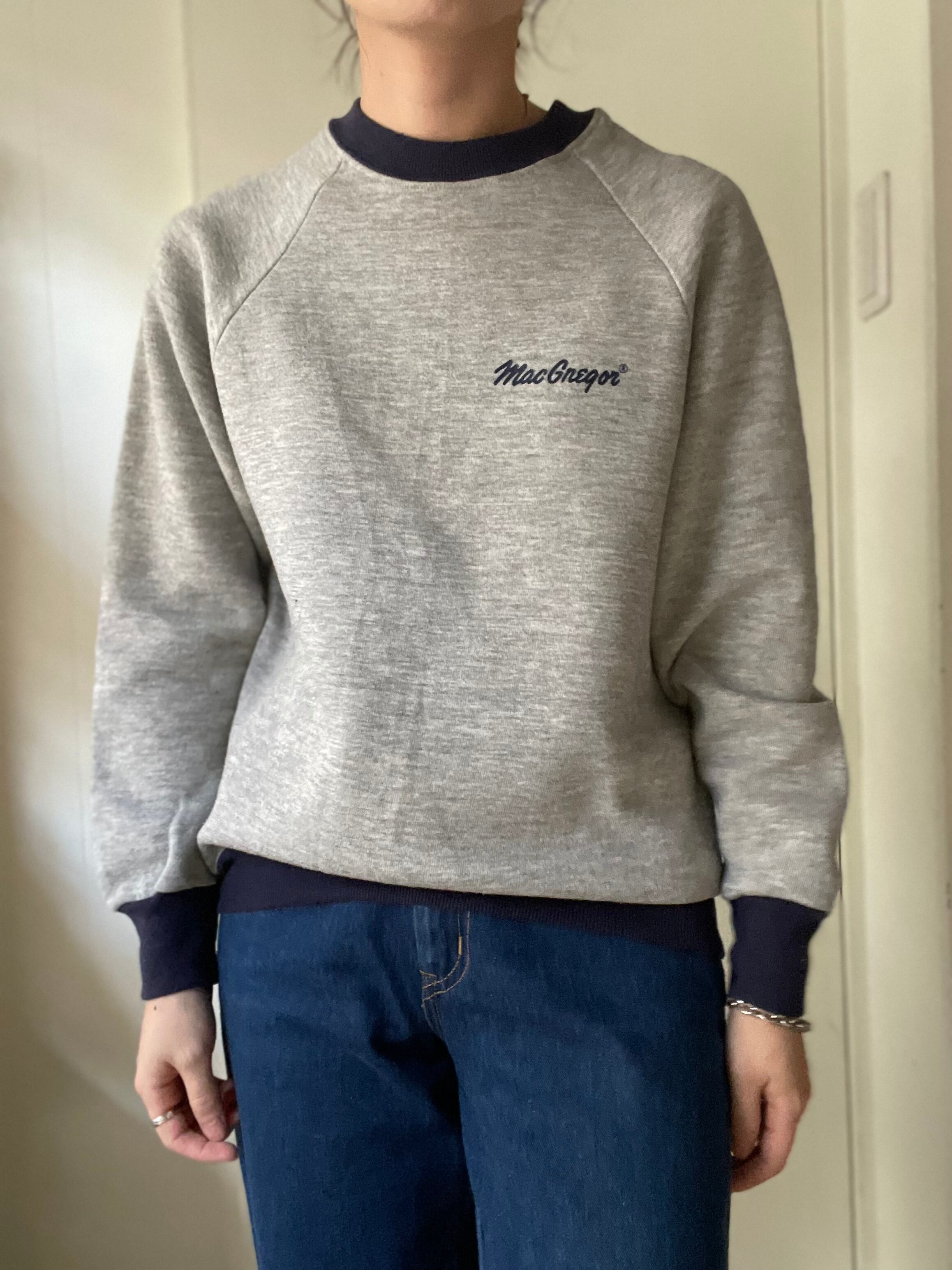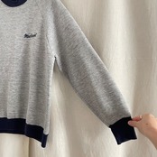 ラグランスリーブで、リブの配色が切り替えなのも古着っぽくて可愛いアクセントの1枚