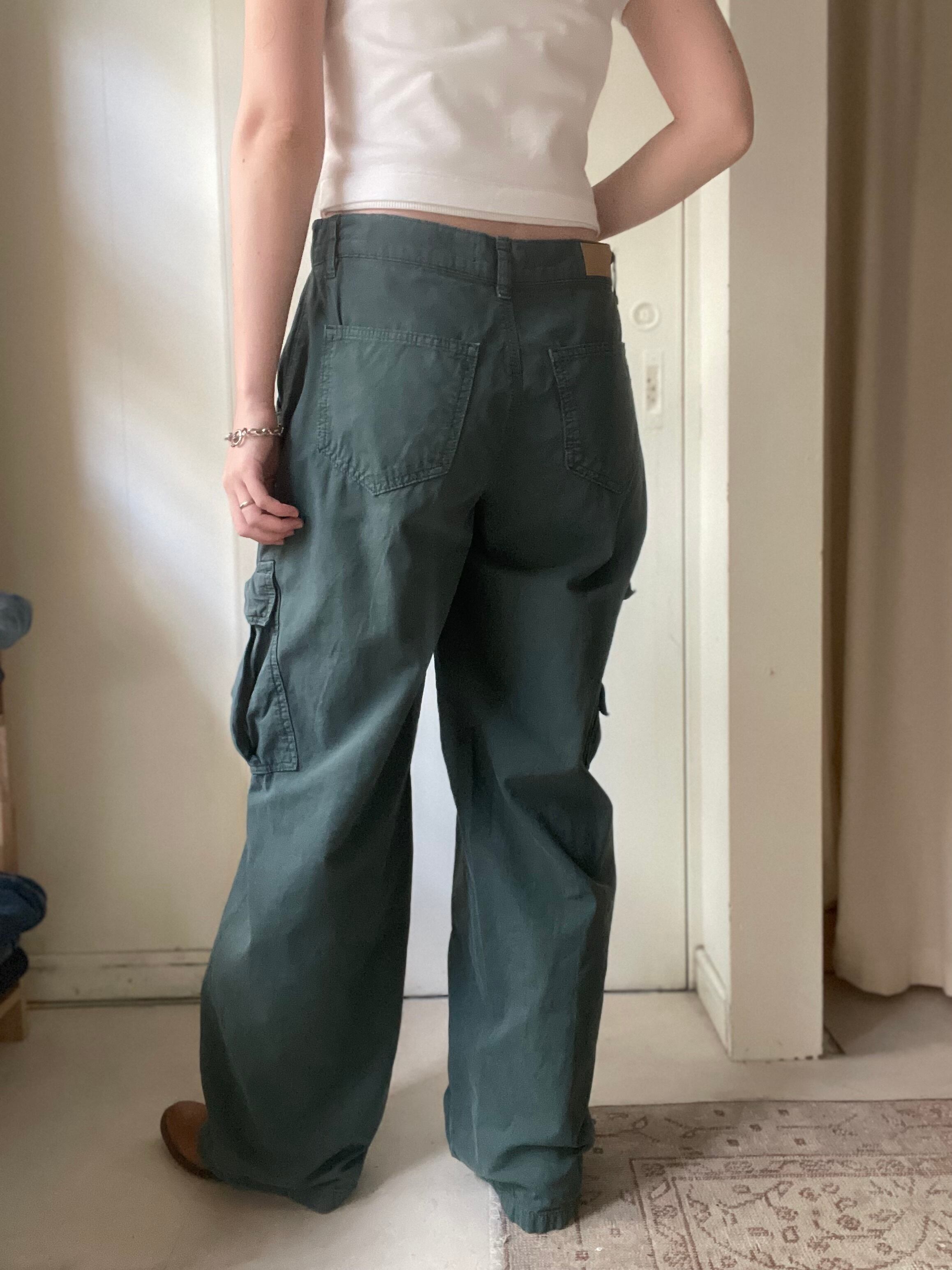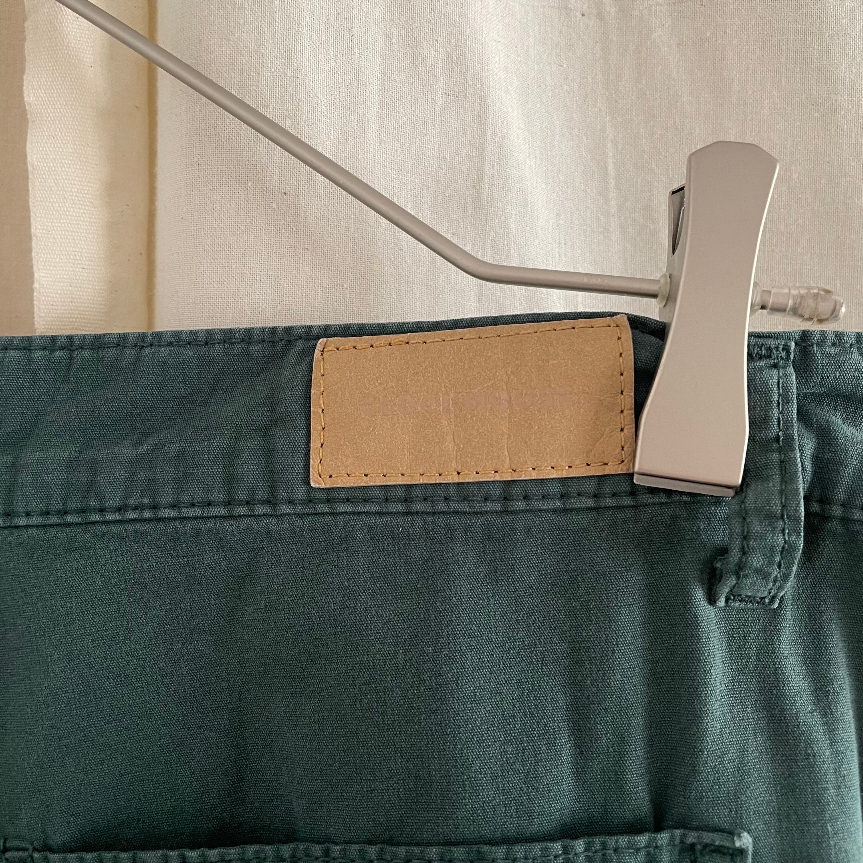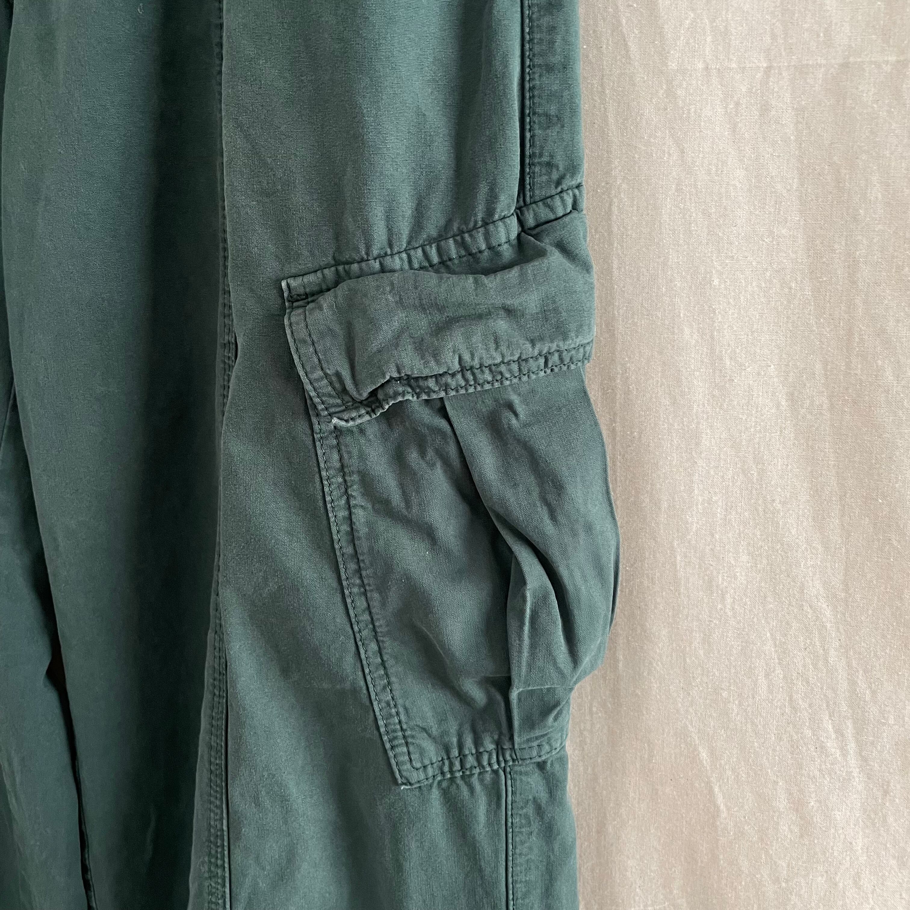 深いダークグリーンのお色味でカジュアルに履いていただける1枚です