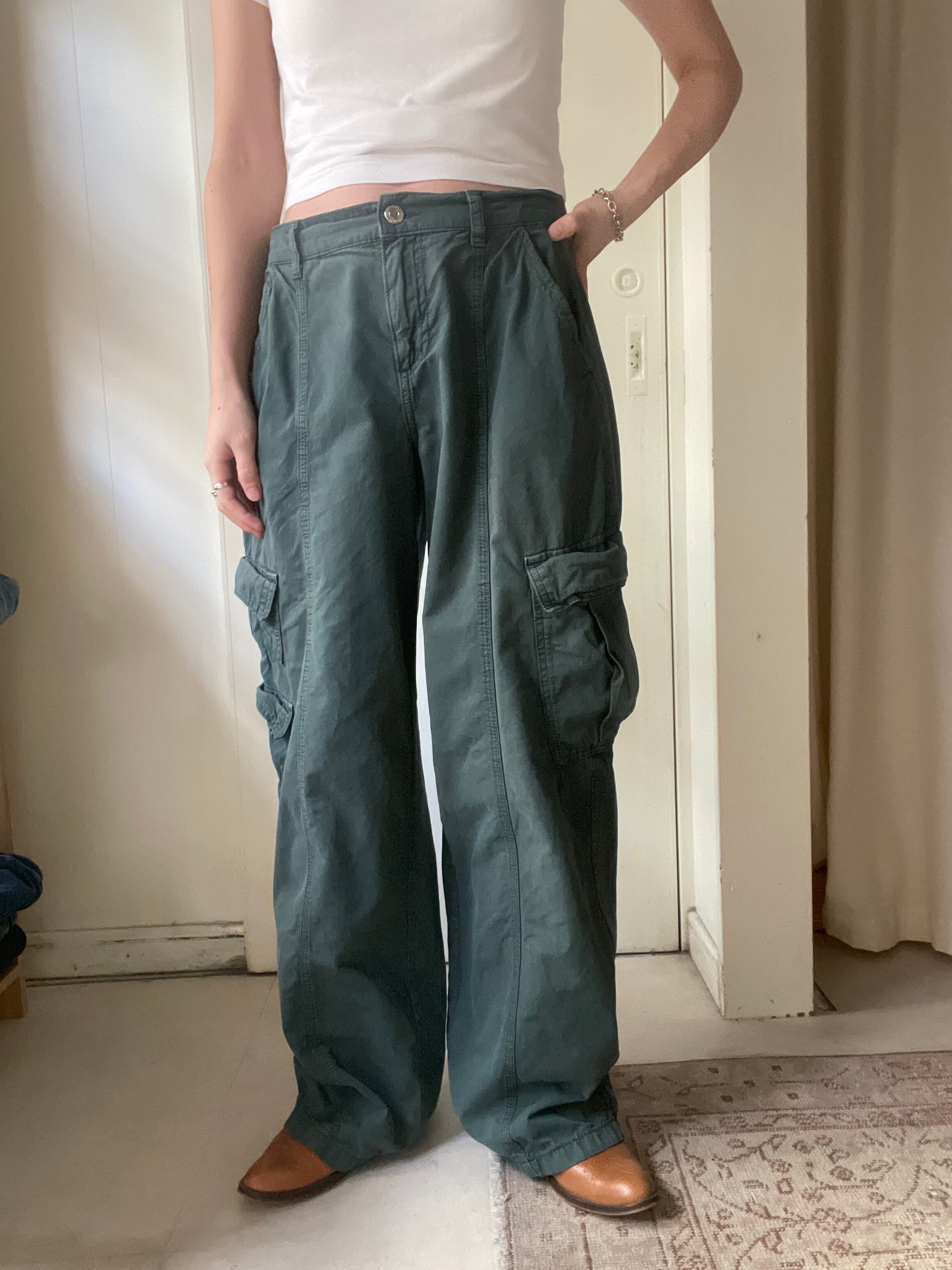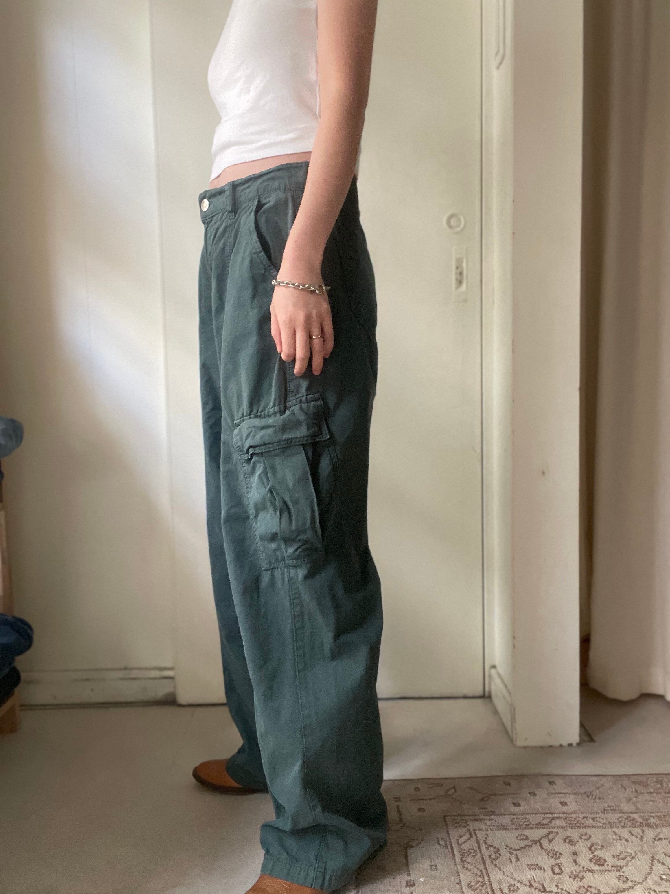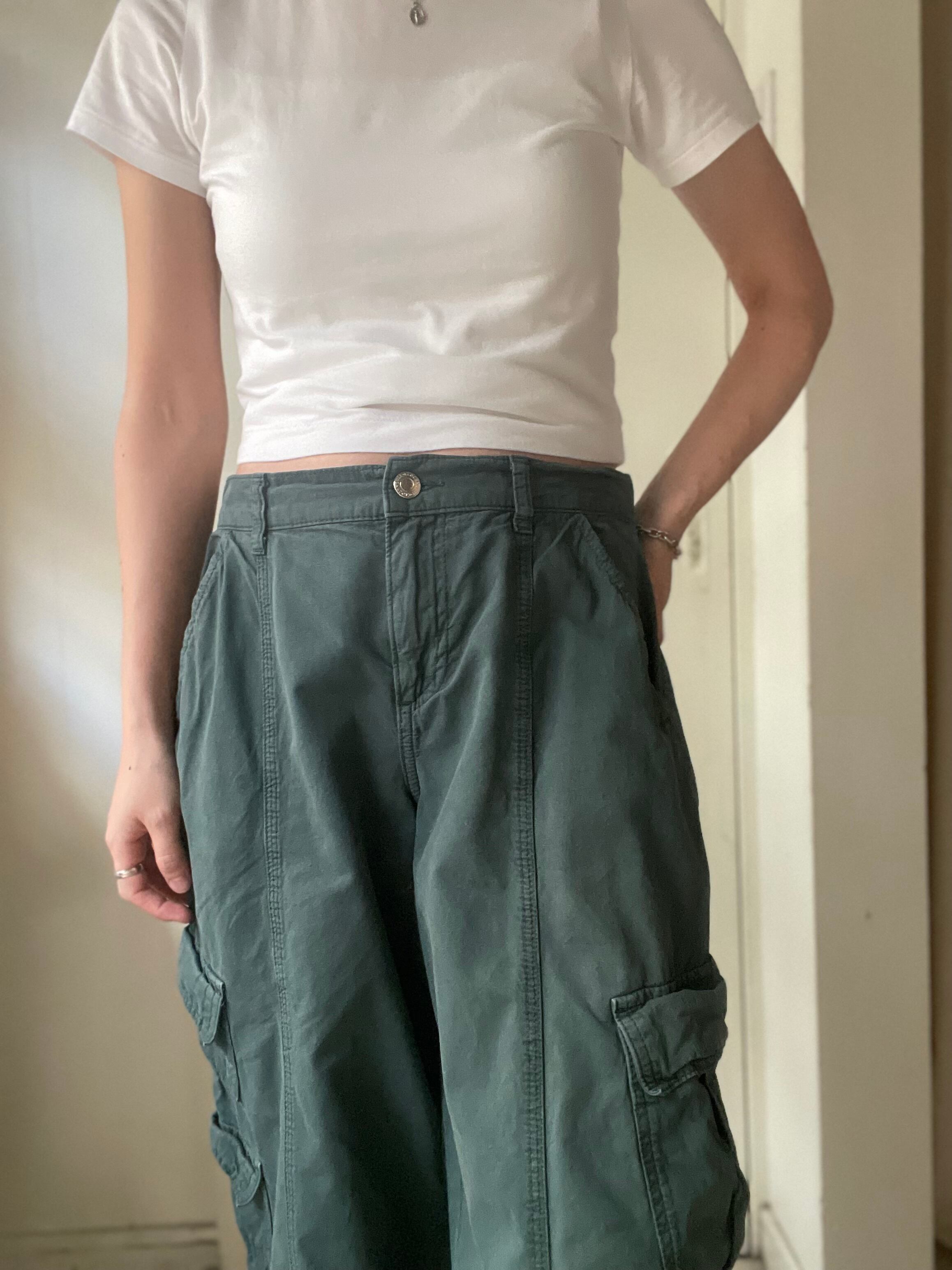 深いダークグリーンのお色味でカジュアルに履いていただける1枚です