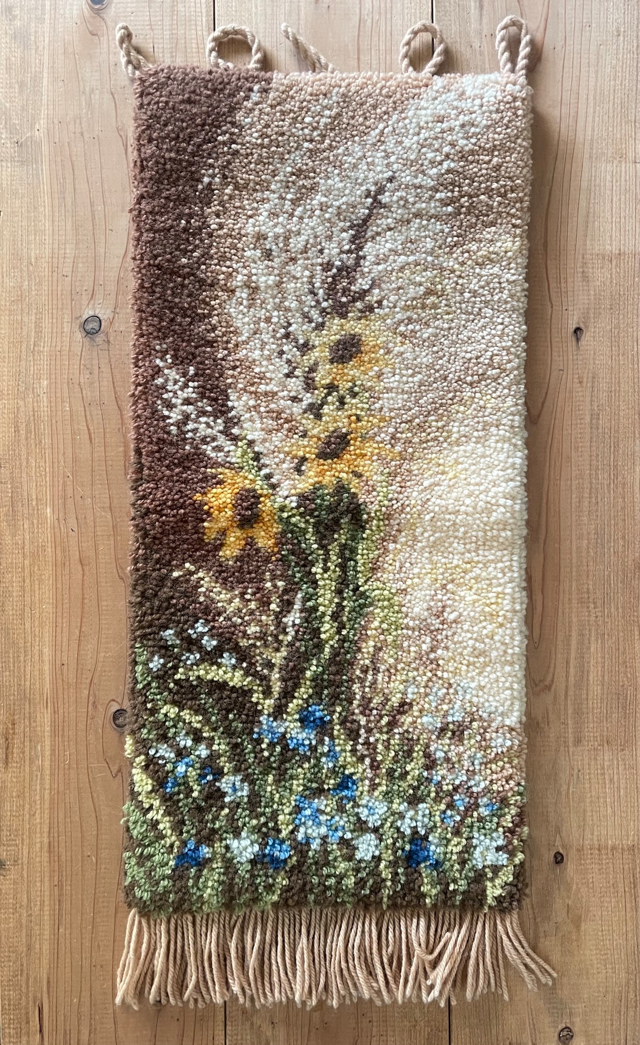 モコモコの毛糸で作られた、ニードルポイントタペストリー