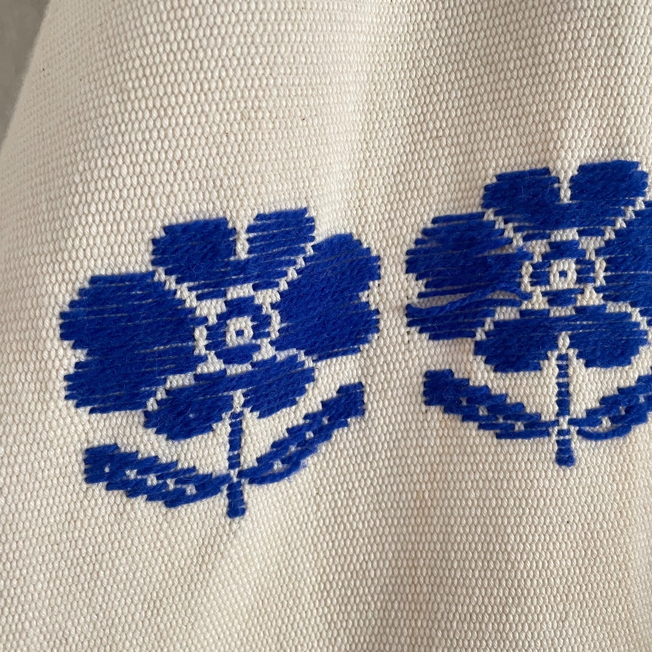 お花や動物たちのクロスステッチが可愛くて目を惹くアイテムです◎