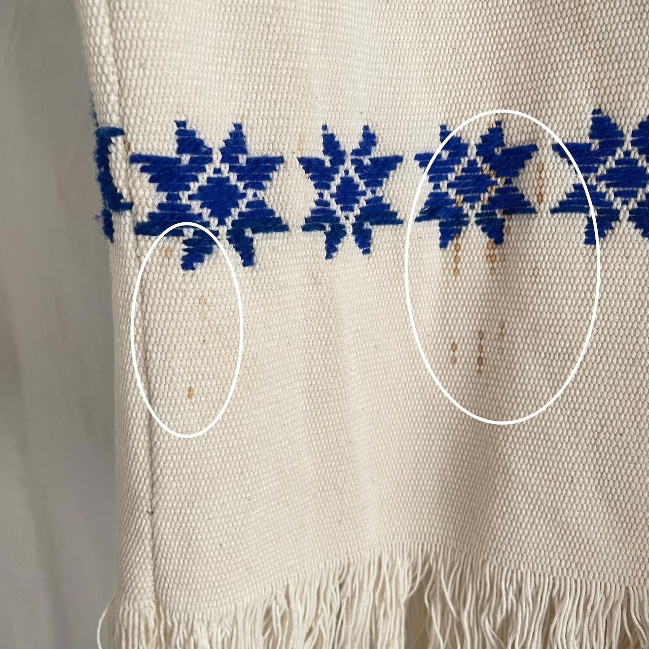 感じ方には個人差があるかと思いますが、目立つもの以外は記載しておりません。小さな汚れやダメージ、使用感などは古着の特性としてご理解お願いします。
