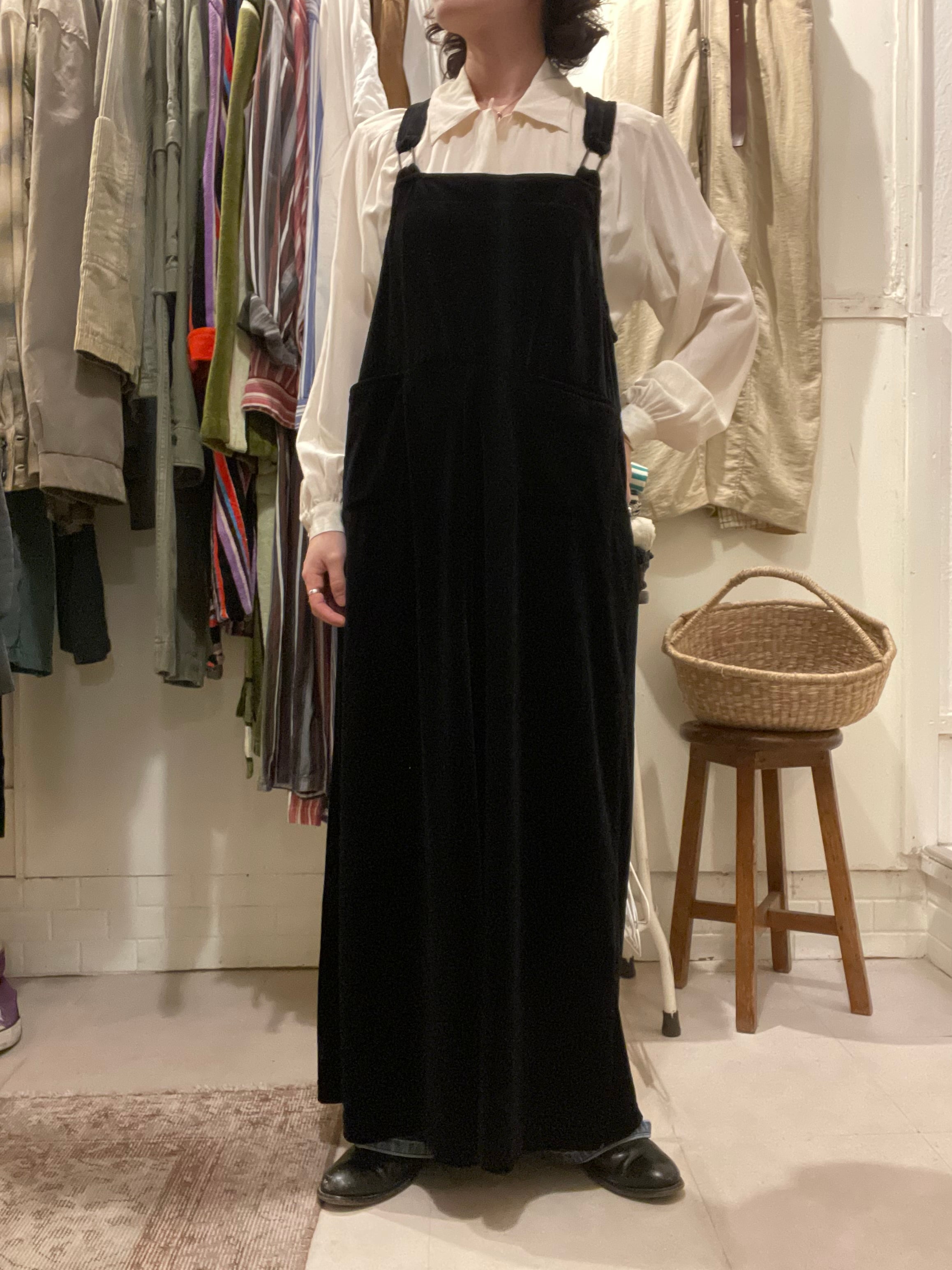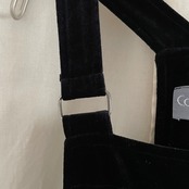 サロペットのようなデザインですが、生地感とすとんとおちるストレートなシルエットが大人な雰囲気の1枚です