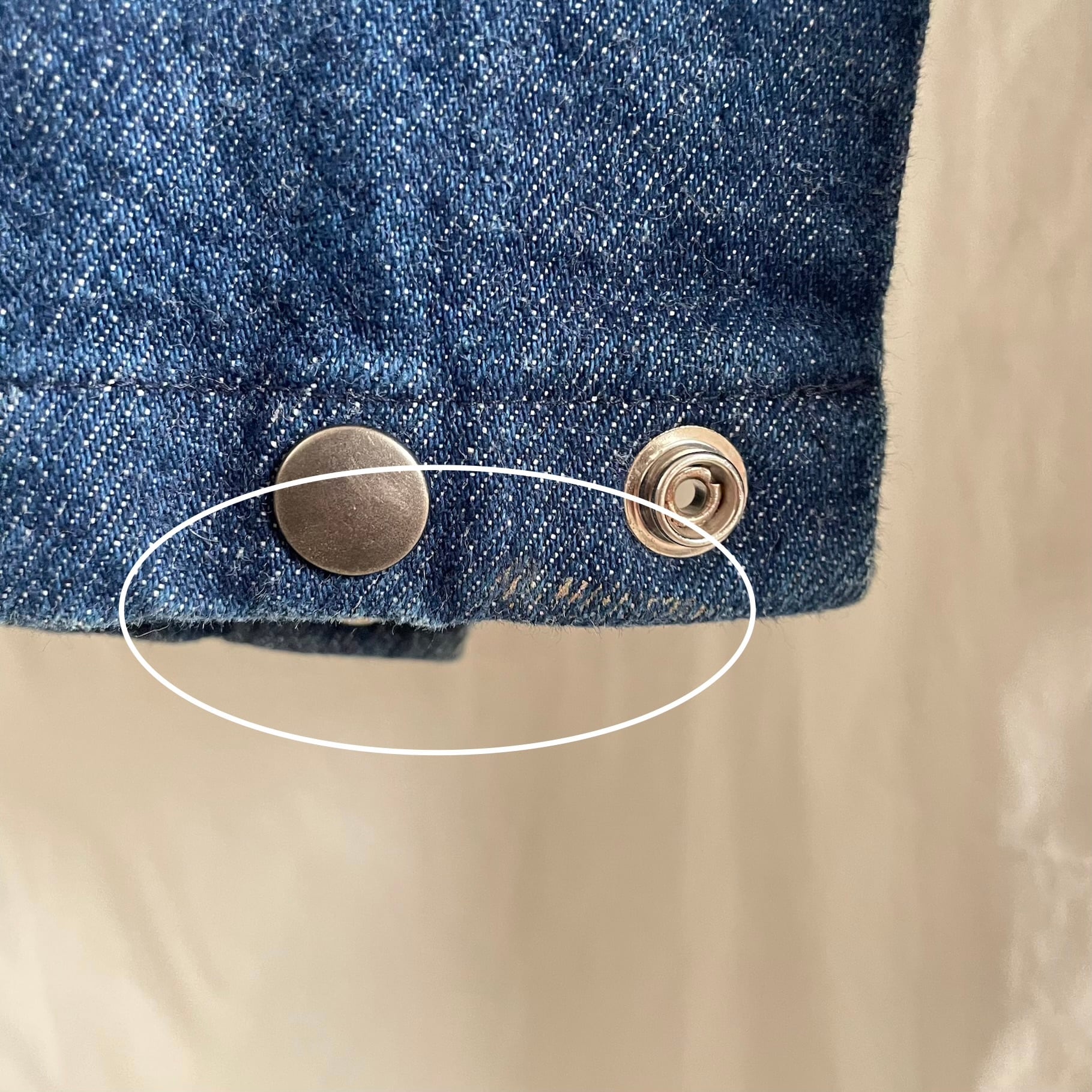 全てデニム生地なので持った時に重量感がありますが着ていただくと、意外と重さを感じにくい1枚かと思います