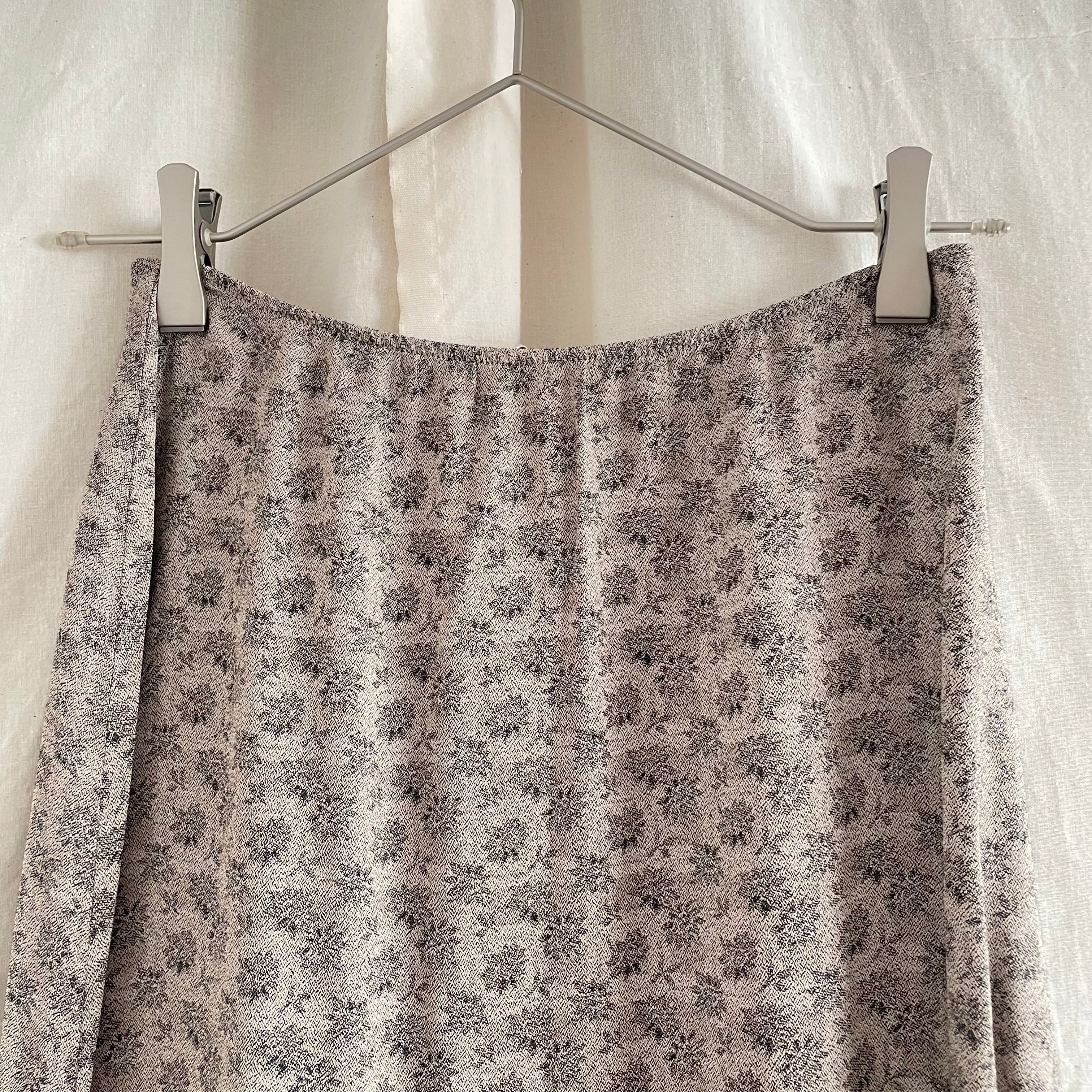 ウエストはゴムで伸縮性があり、後ろのジッパーで着脱していただけるスカートです
