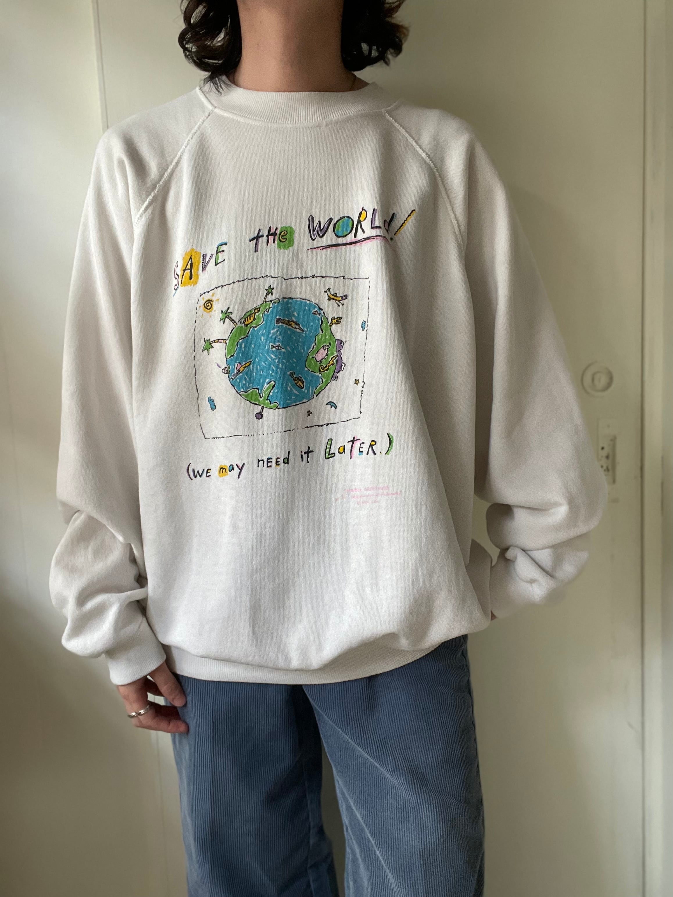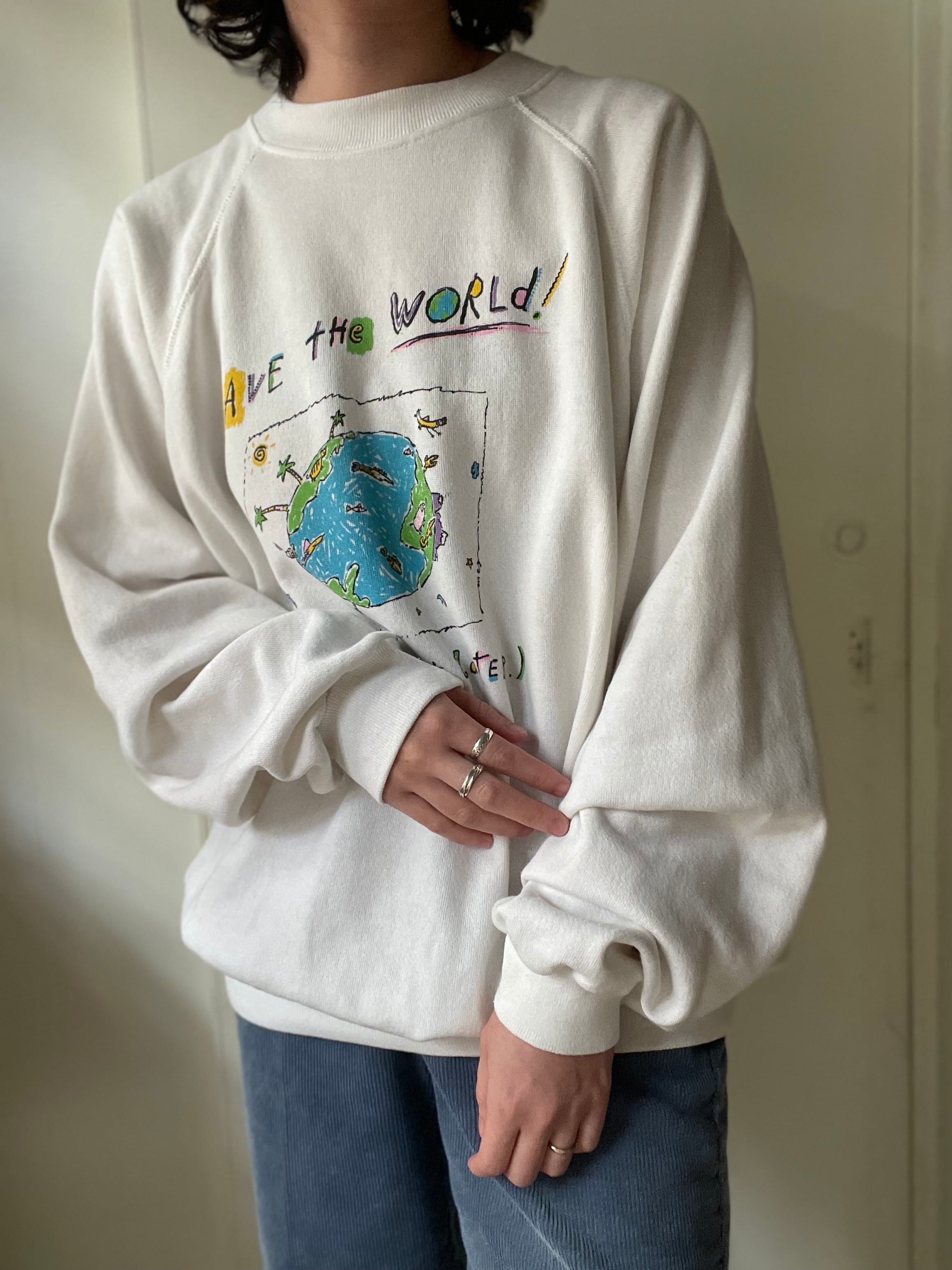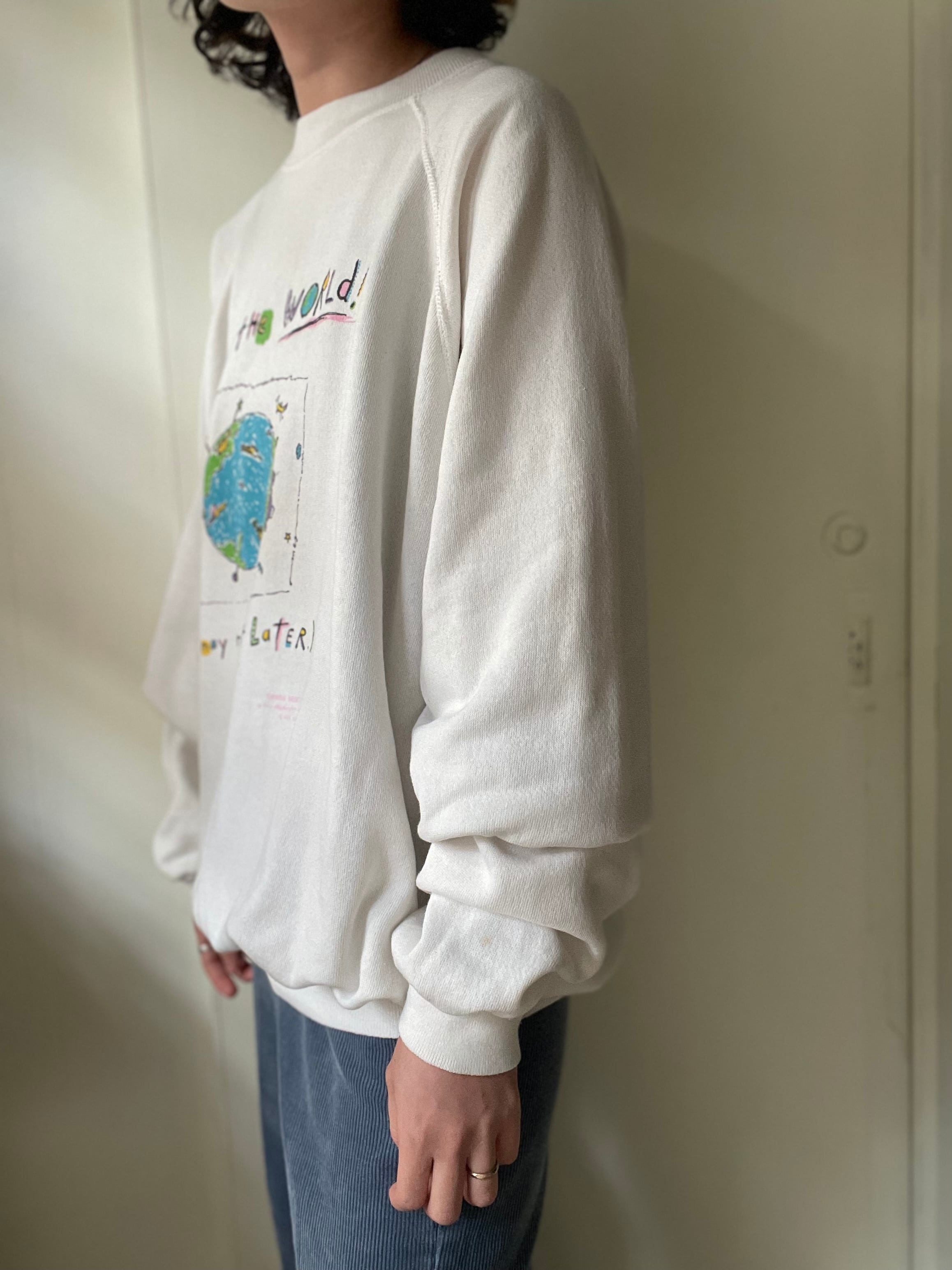 ゆったりとしたサイズ感とラグランシルエットで、着用した時のお袖がずるっと長い感じも可愛いスウェットです◎