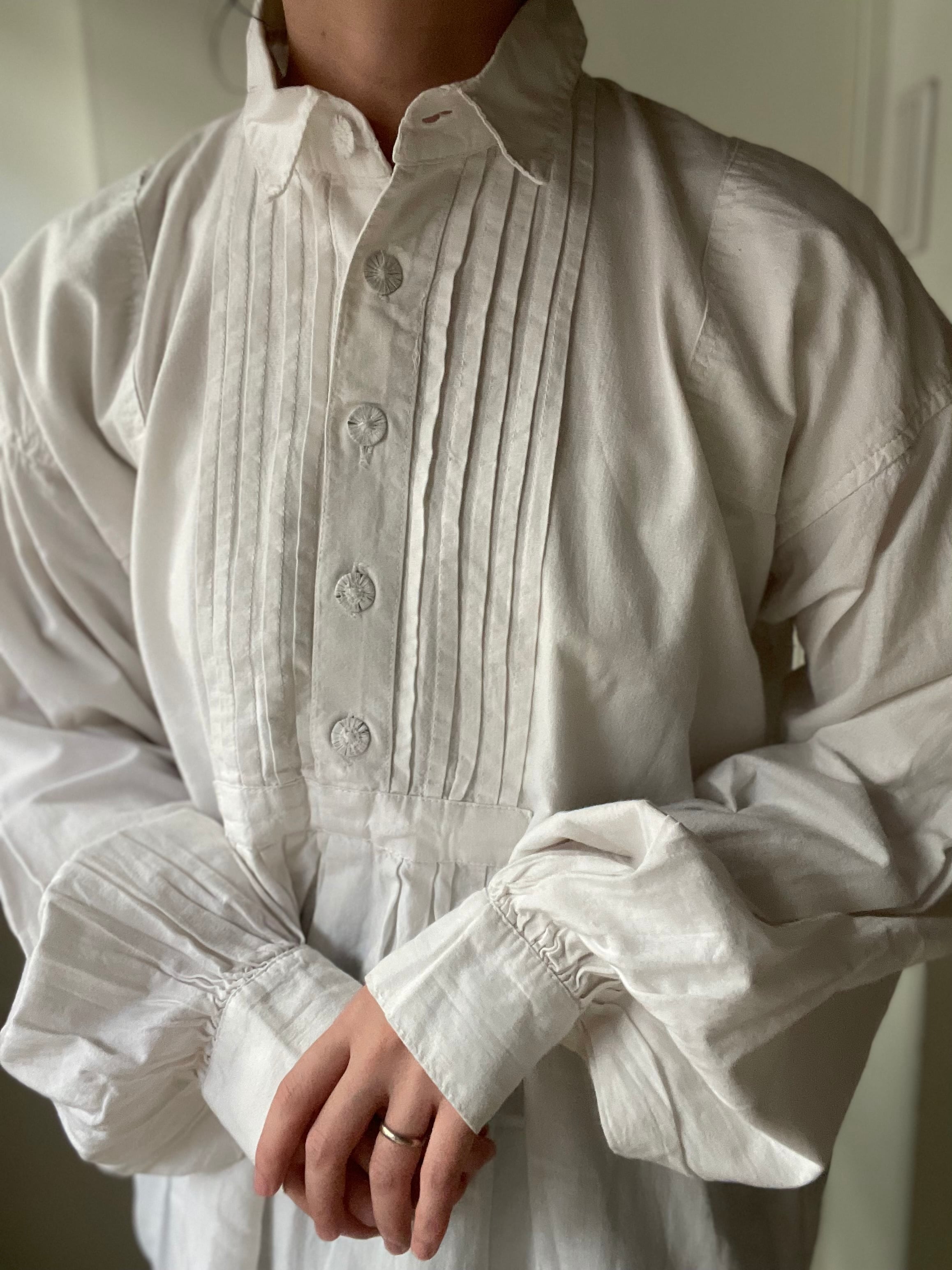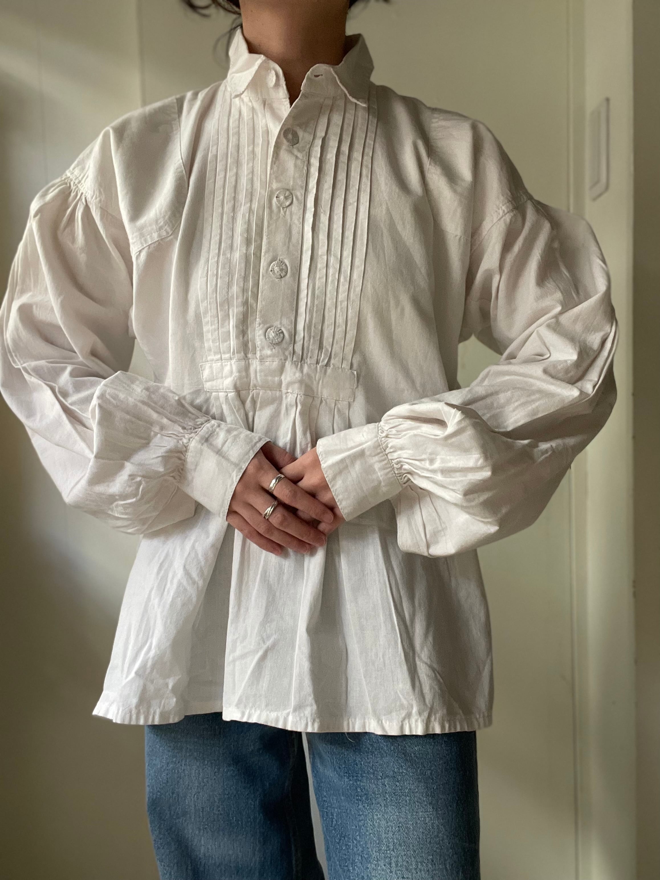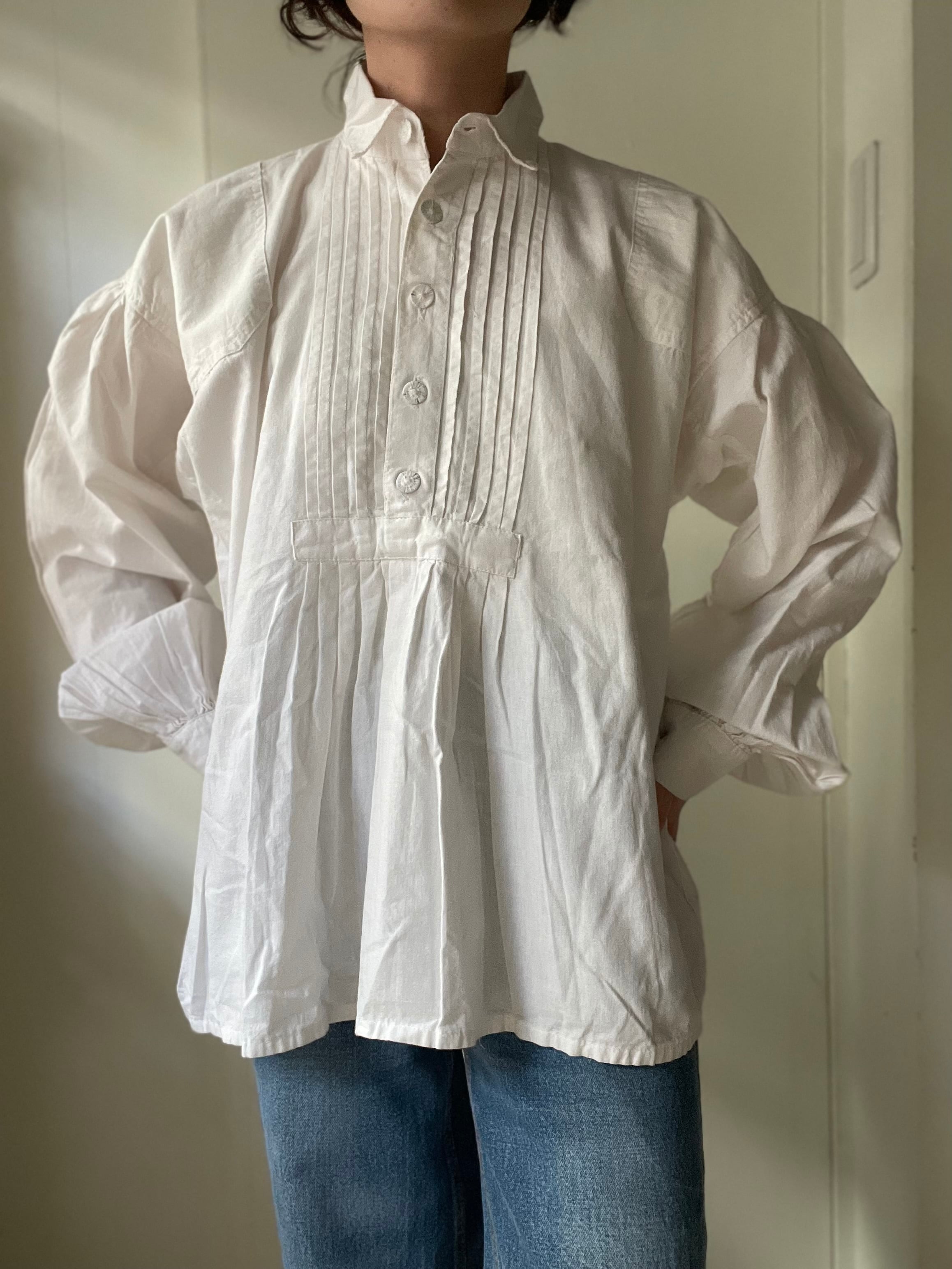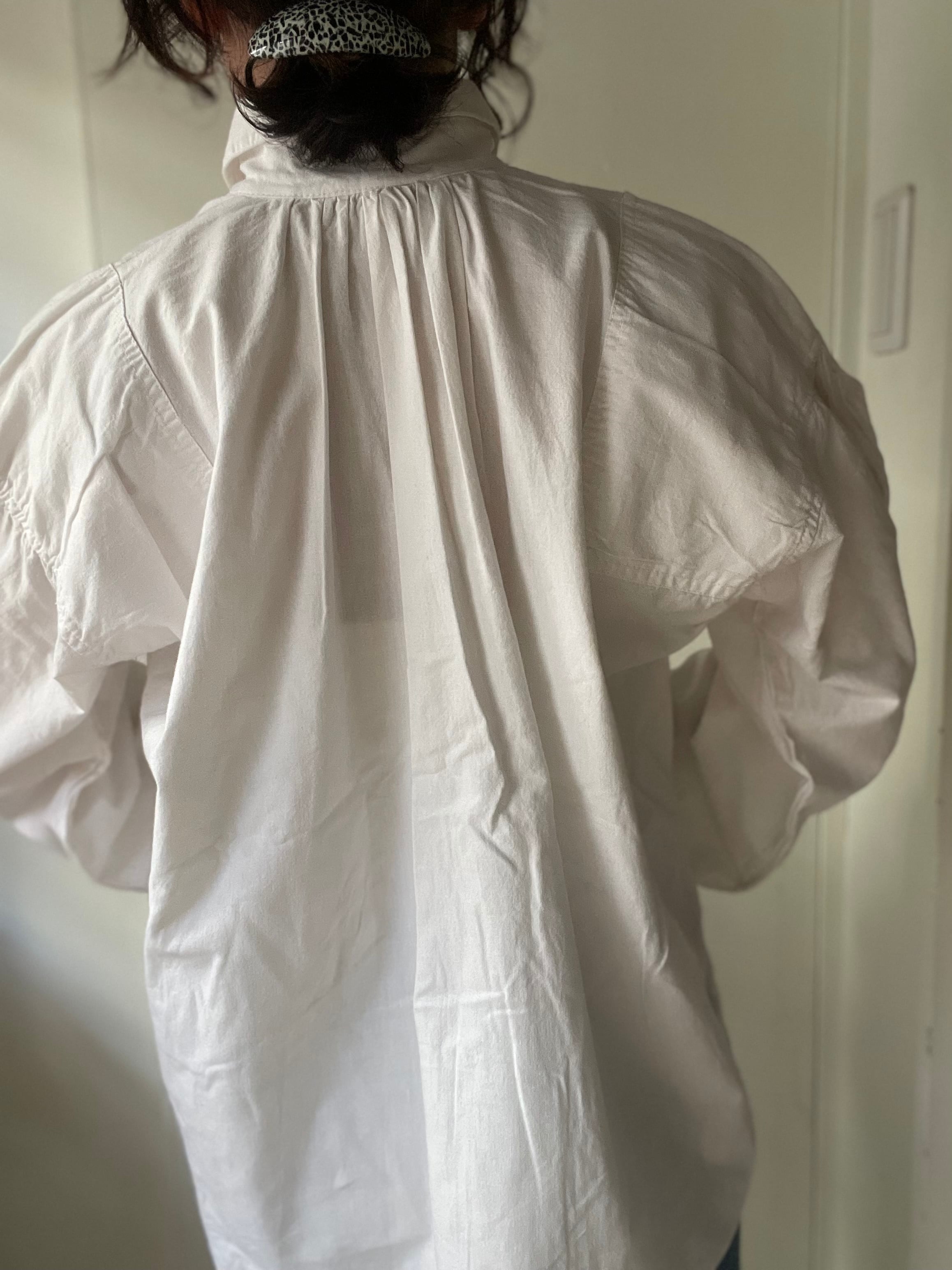 お袖や見頃、背中にたっぷりと入ったタックが繊細な手仕事を感じる1枚です