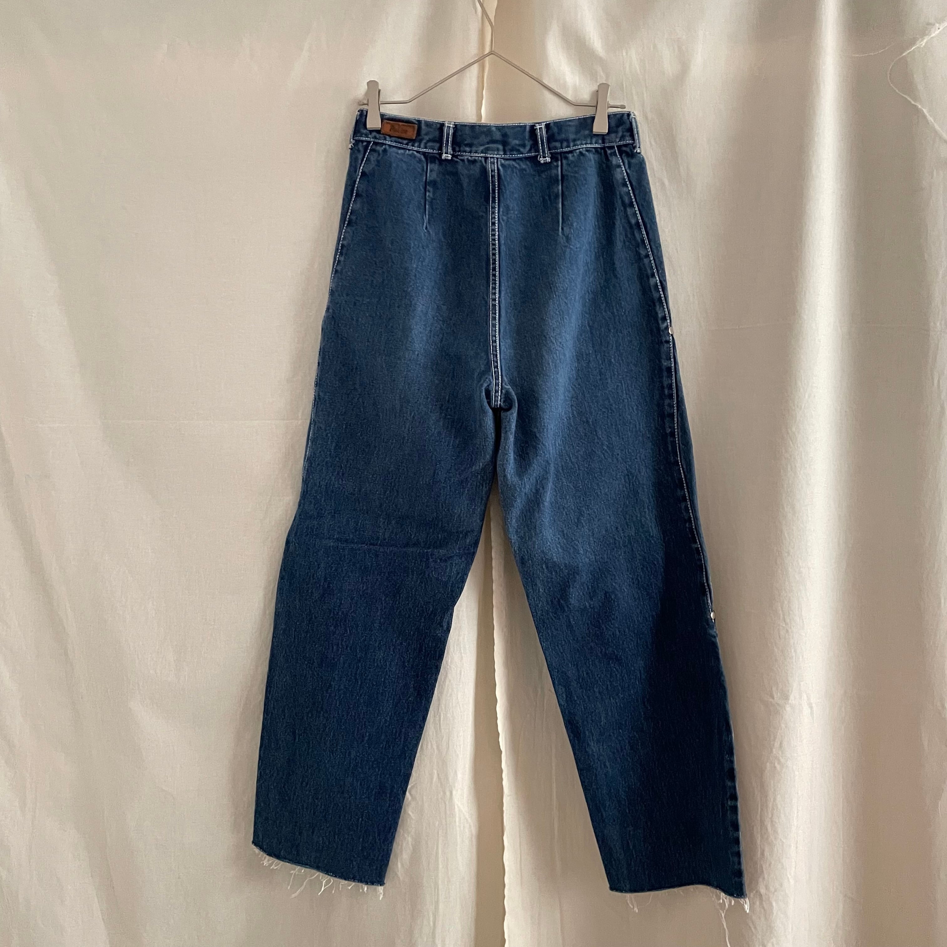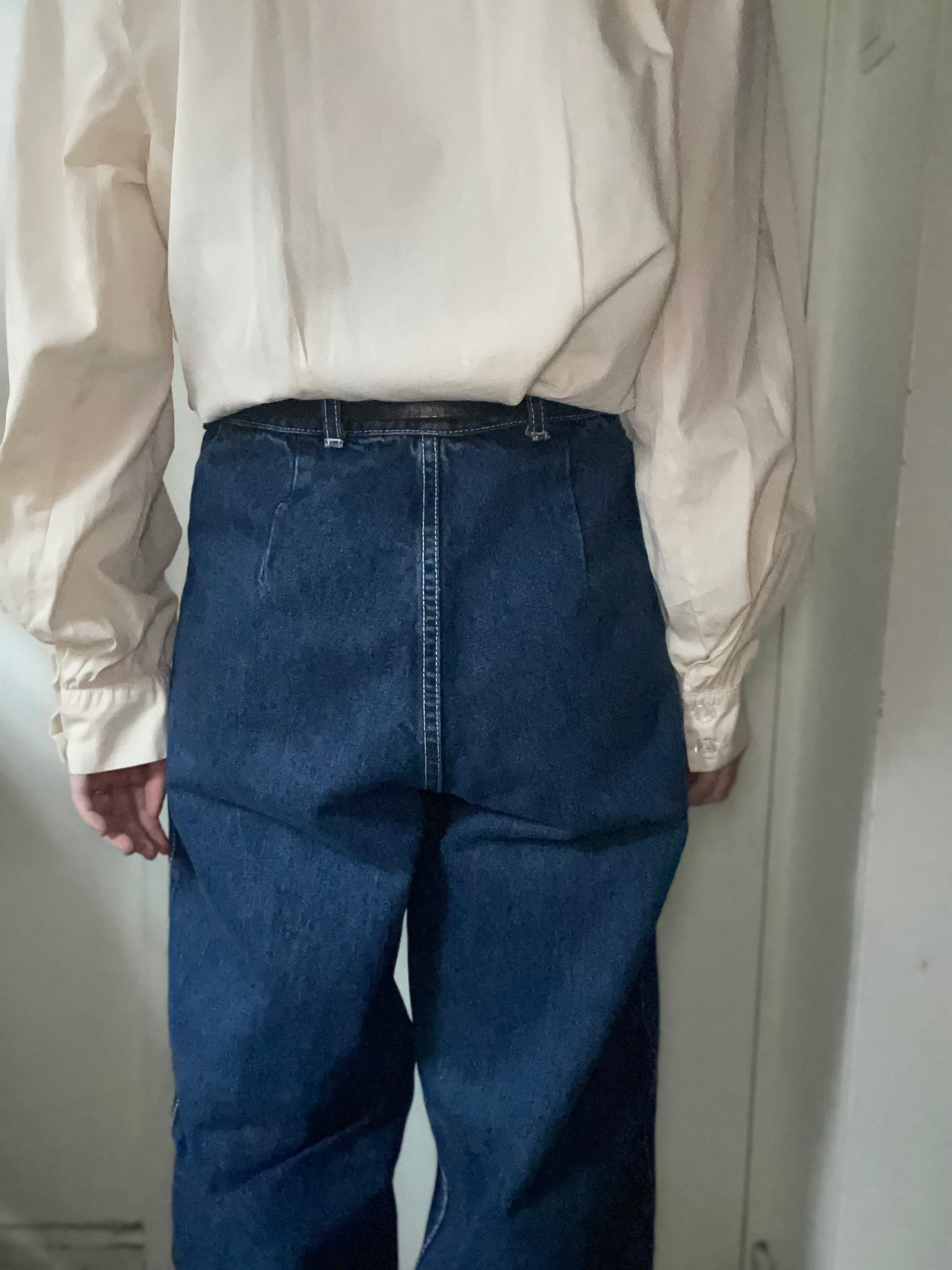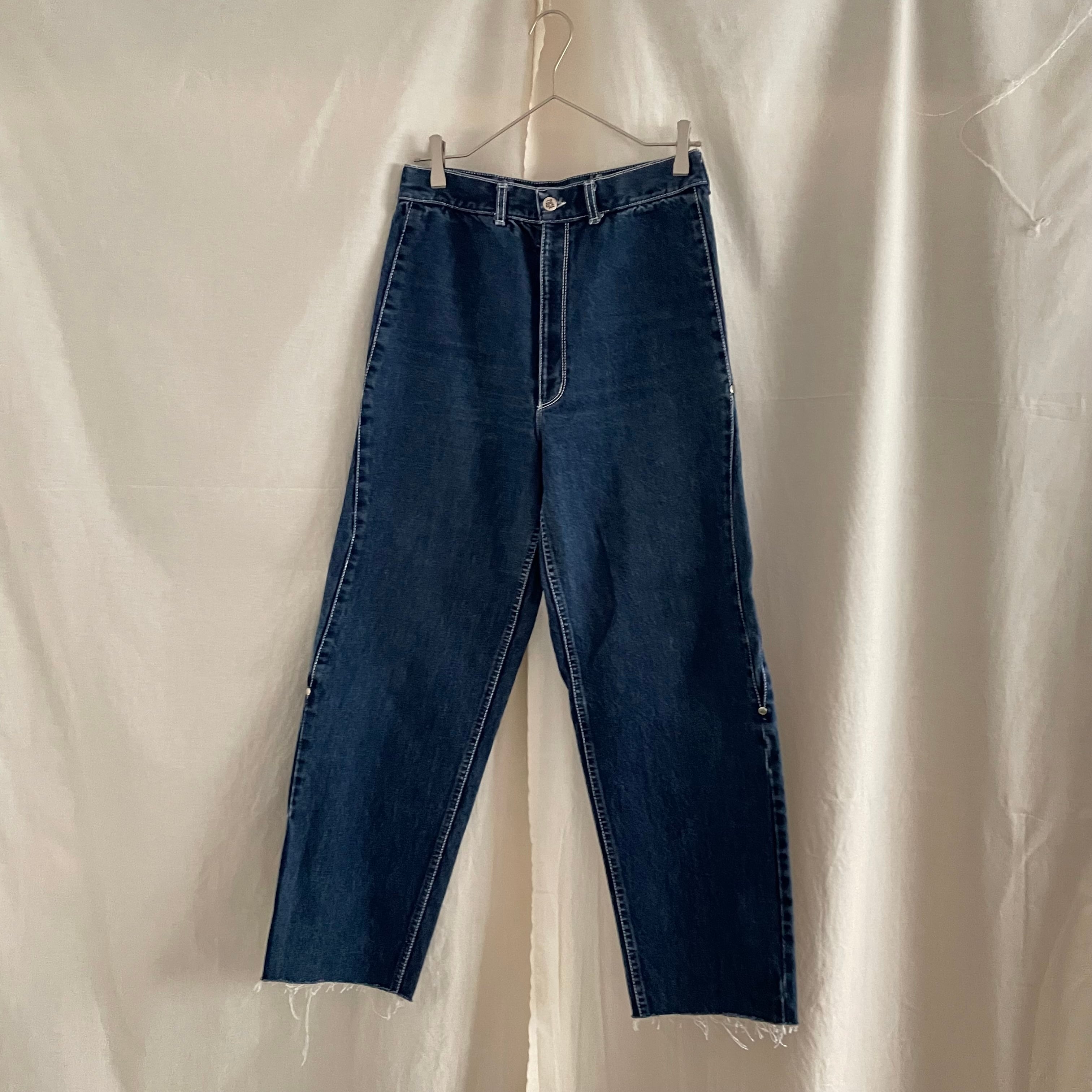 前後ろにポケットはなくスッキリとしたデザインで、裾幅切りっぱなしです