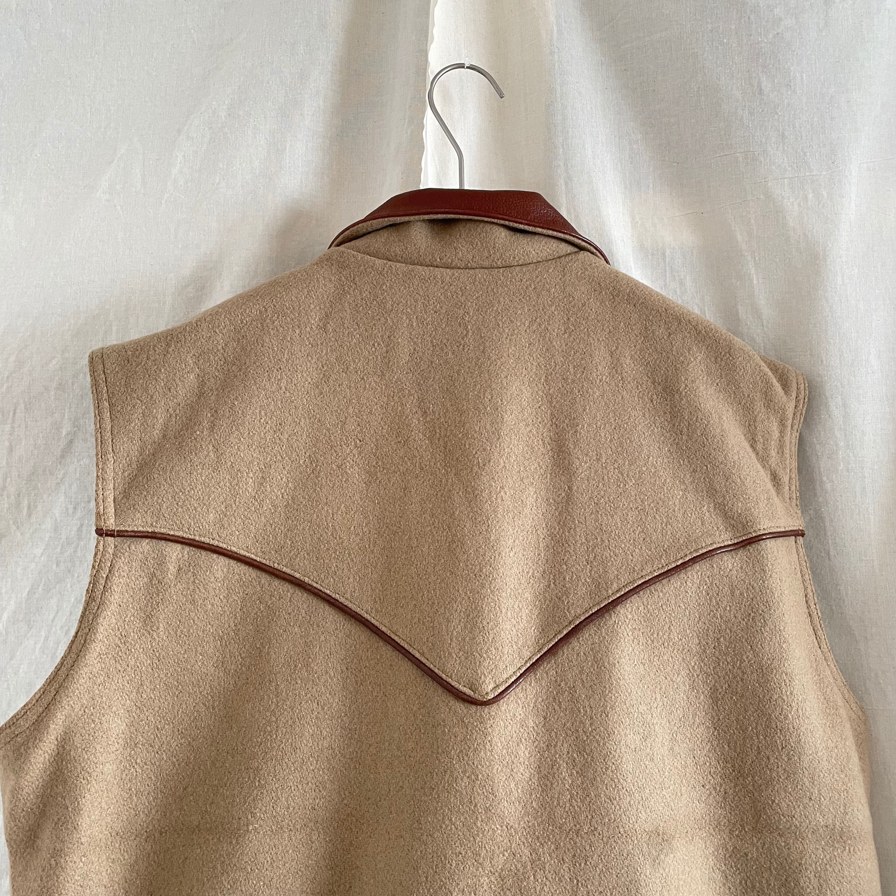 襟と前後のパイピング部分がレザー素材のこなれたデザインです◎