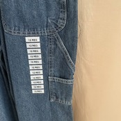 ほどよいワイドストレートのシルエットで、白地にピンクのタグも可愛いポイントです◎