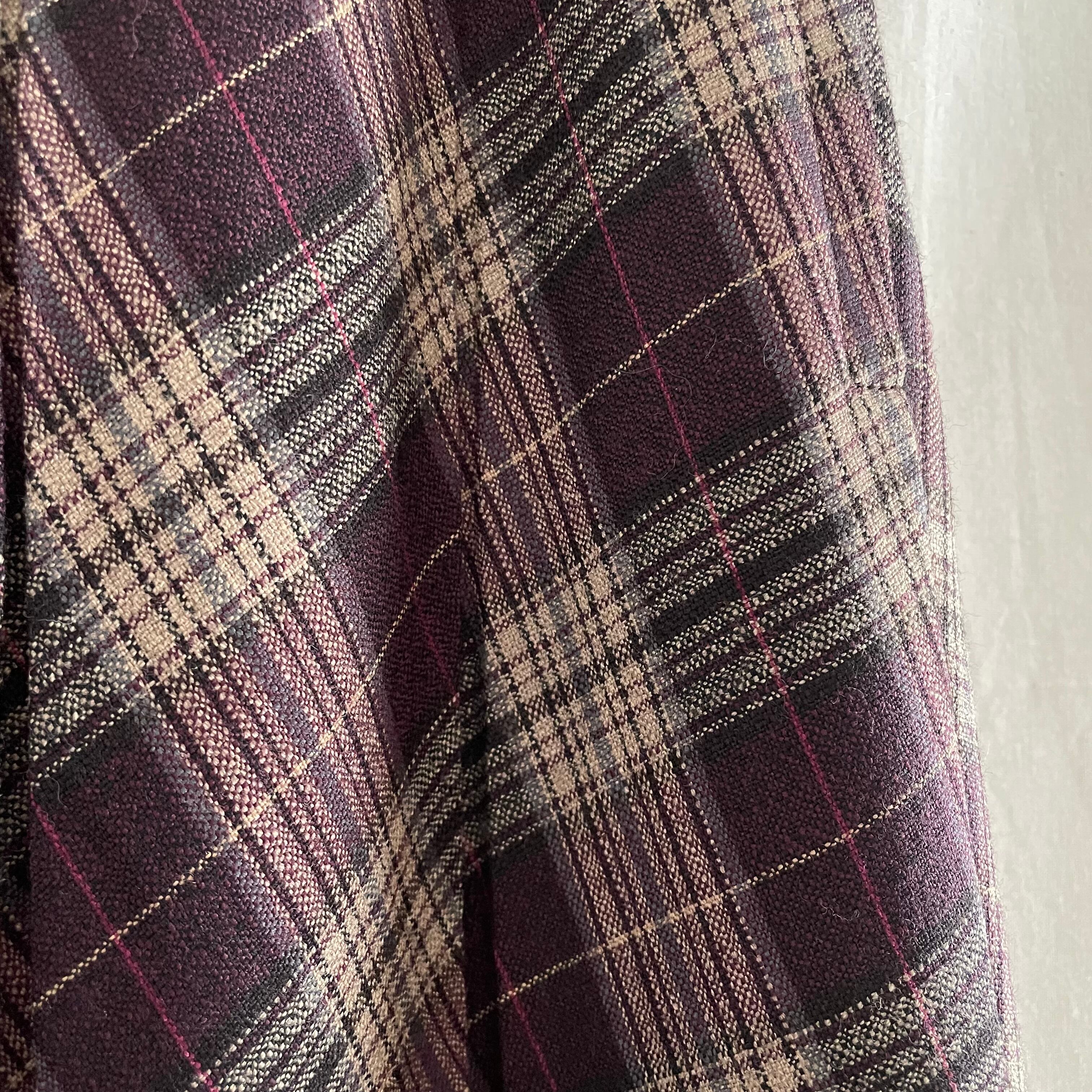 パープルみの強い、ワインレッドカラーのチェックスカート