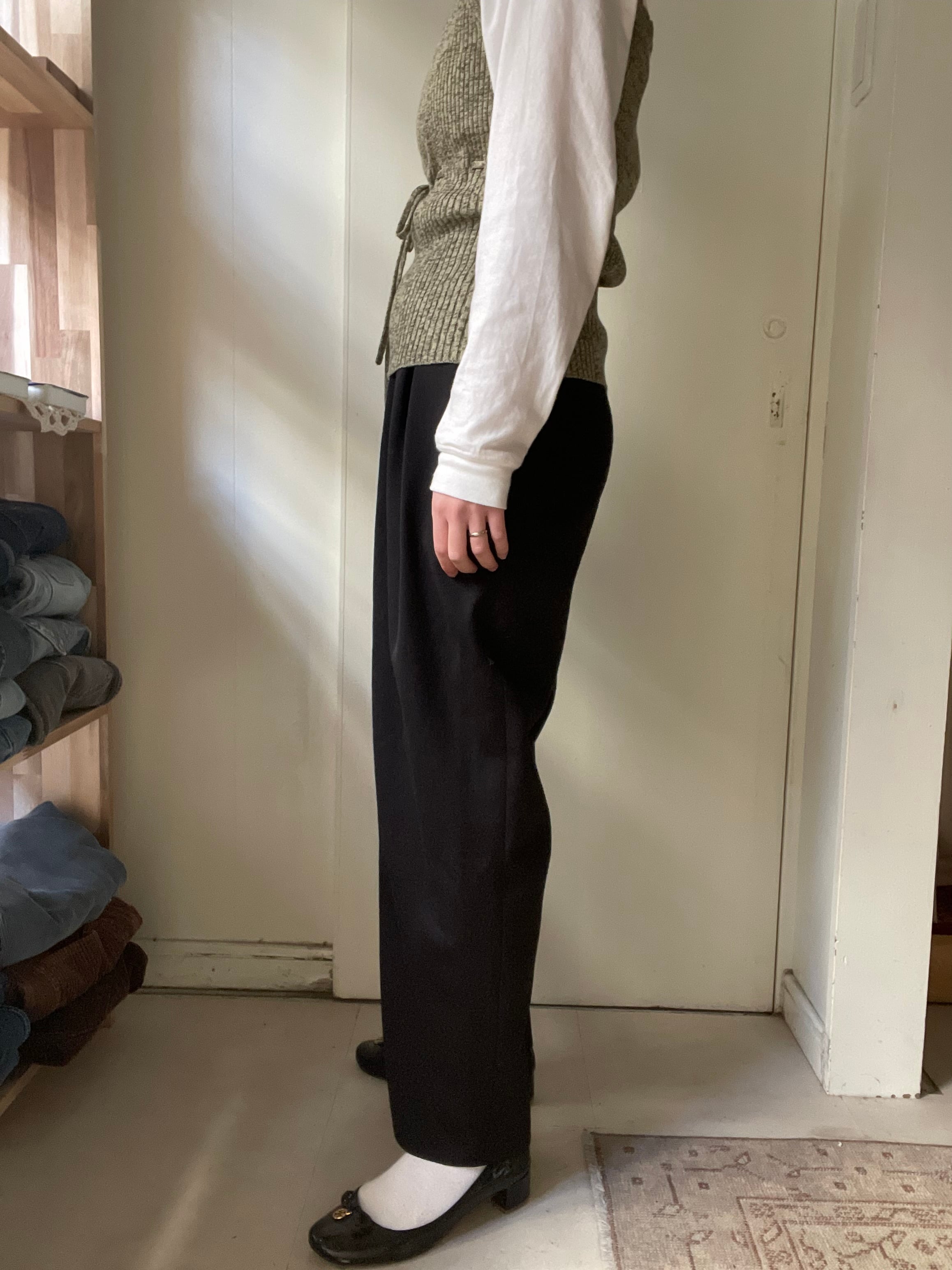 ウール生地ですがチクチク感なく、秋〜春とロングシーズン履いていただけるパンツです