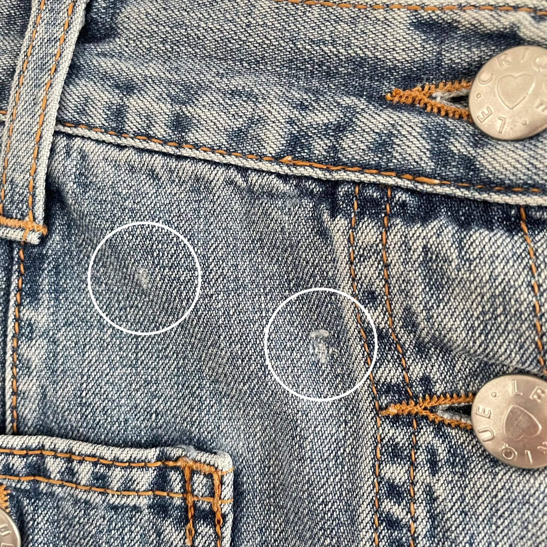 感じ方には個人差があるかと思いますが、目立つもの以外は記載しておりません。小さな汚れやダメージ、使用感などは古着の特性としてご理解お願いします。