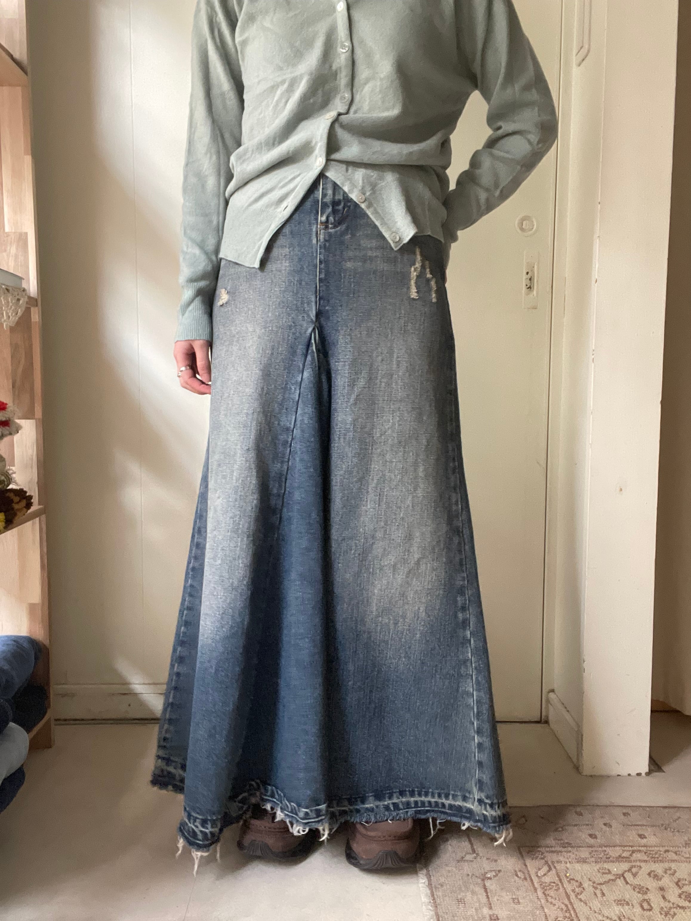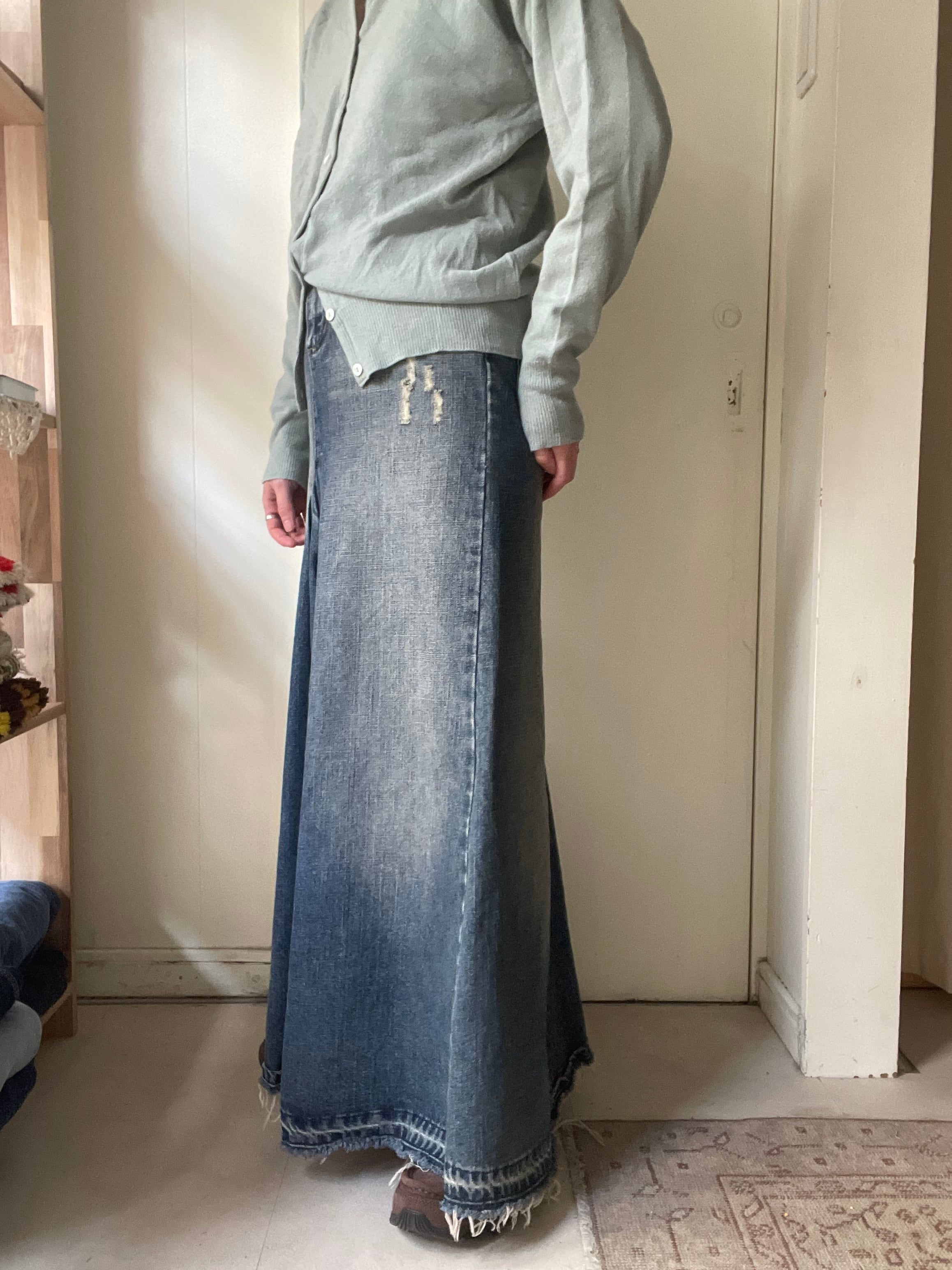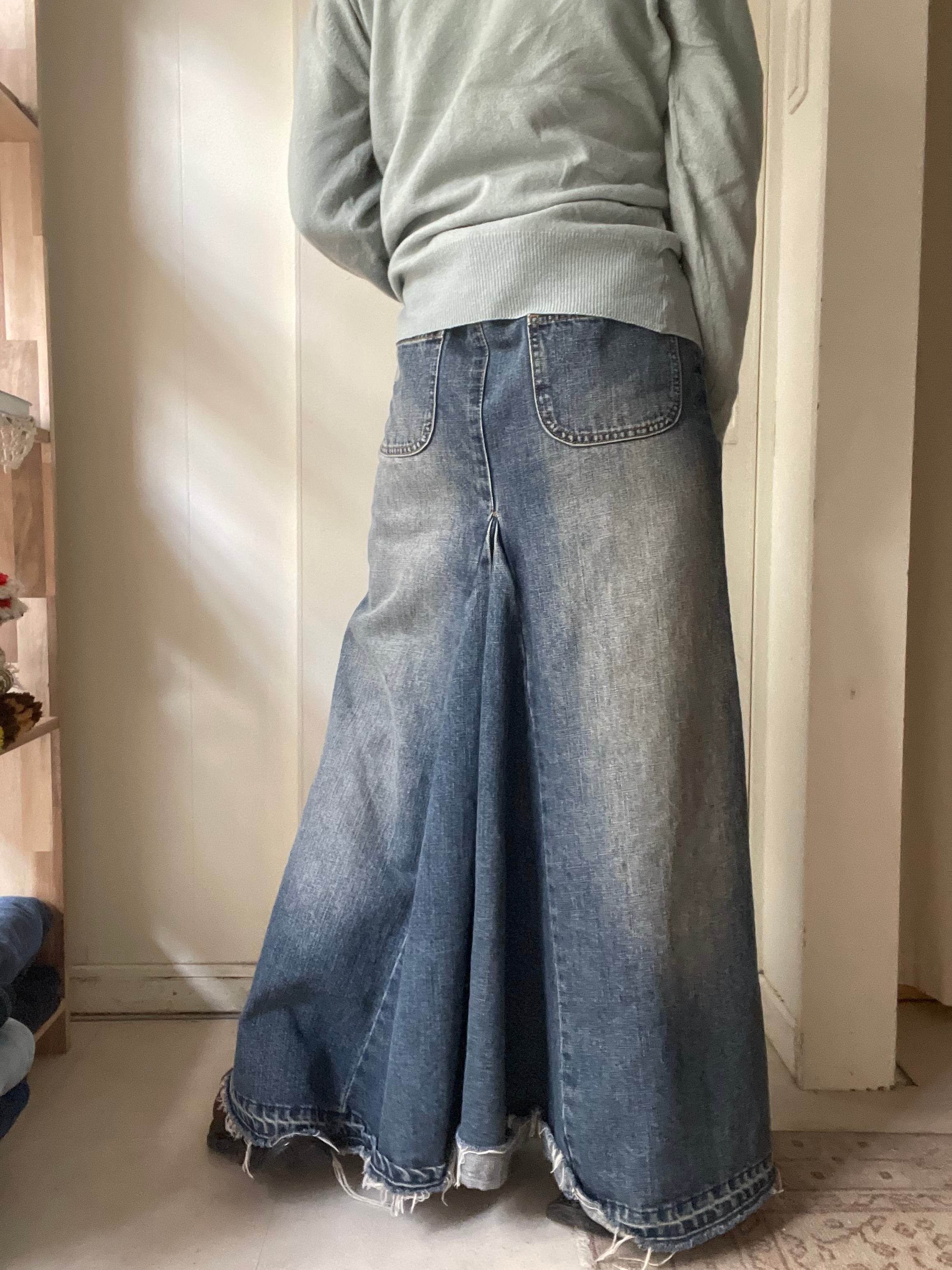 remake denim flare skirt