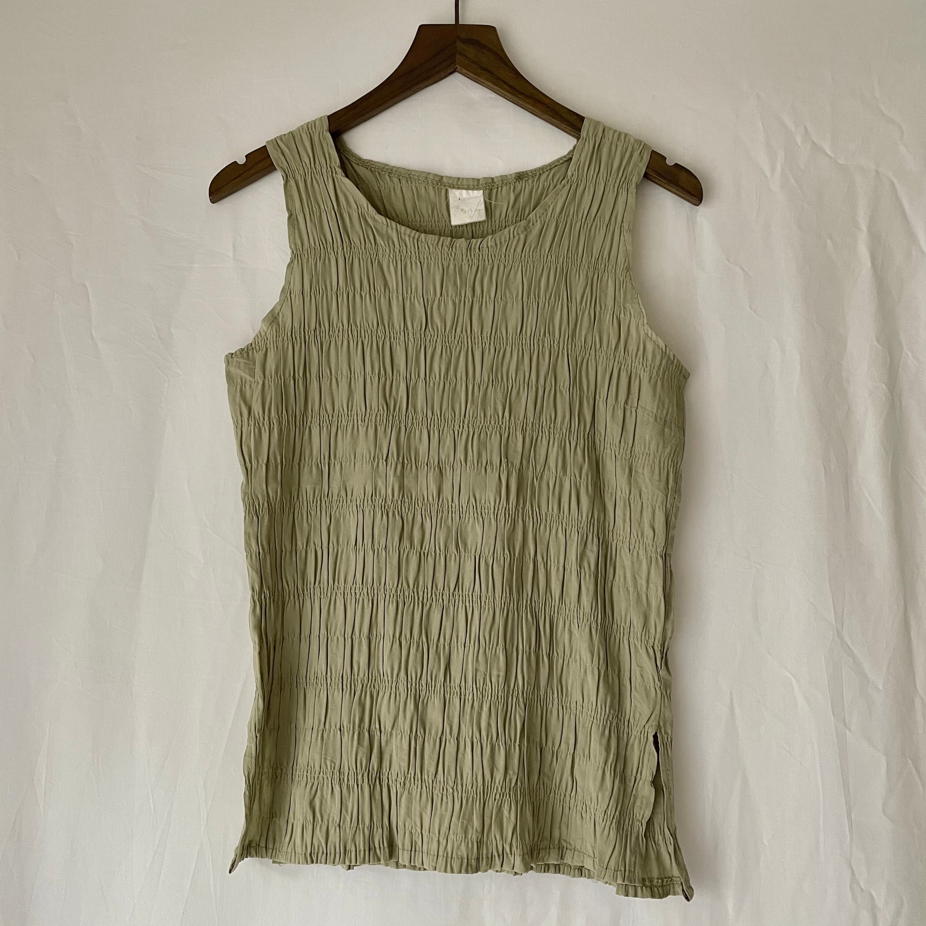 シワ加工のくしゃっとした表情が可愛いトップス。