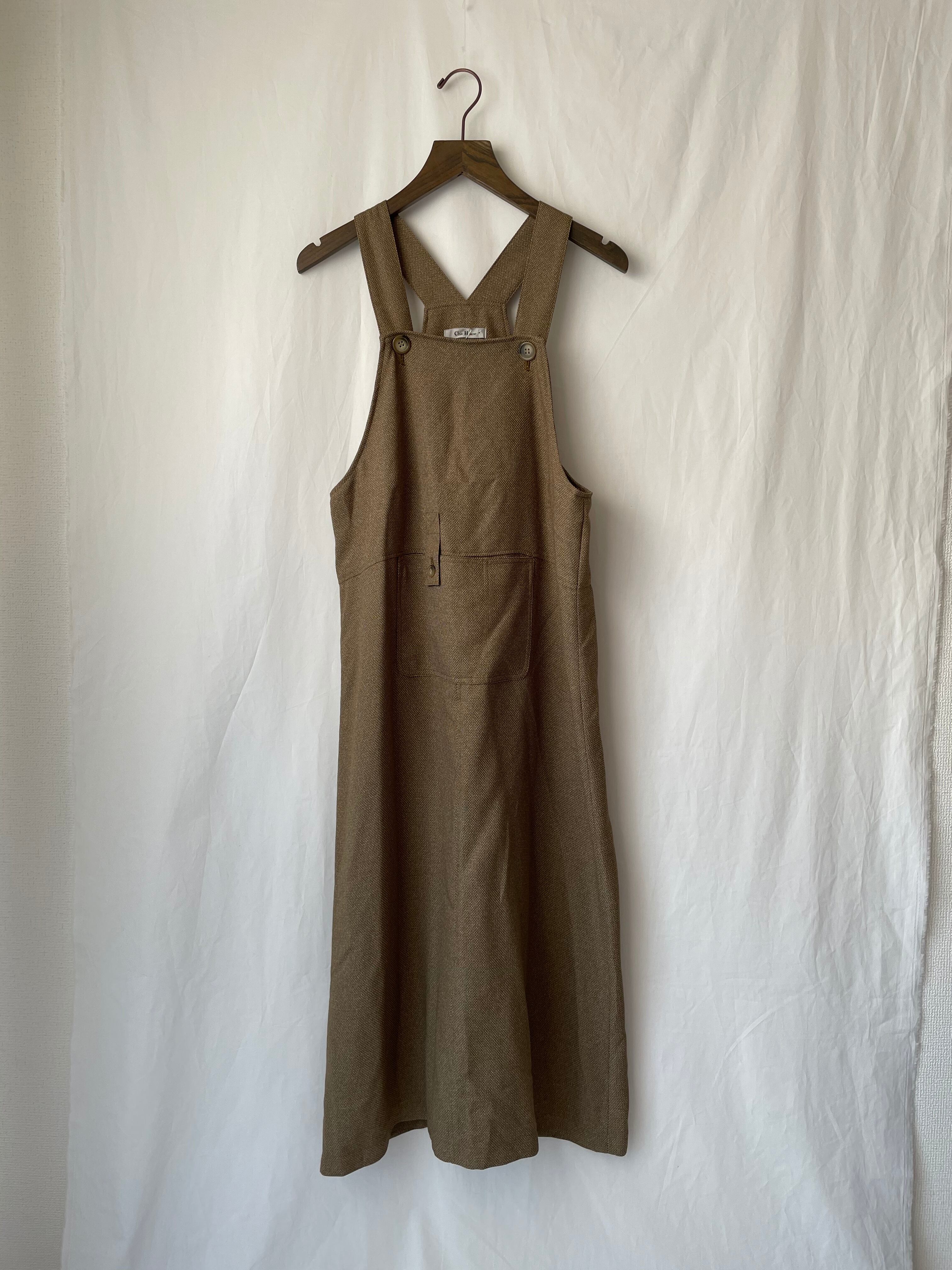 ゆとりのあるIラインのエプロンワンピース。