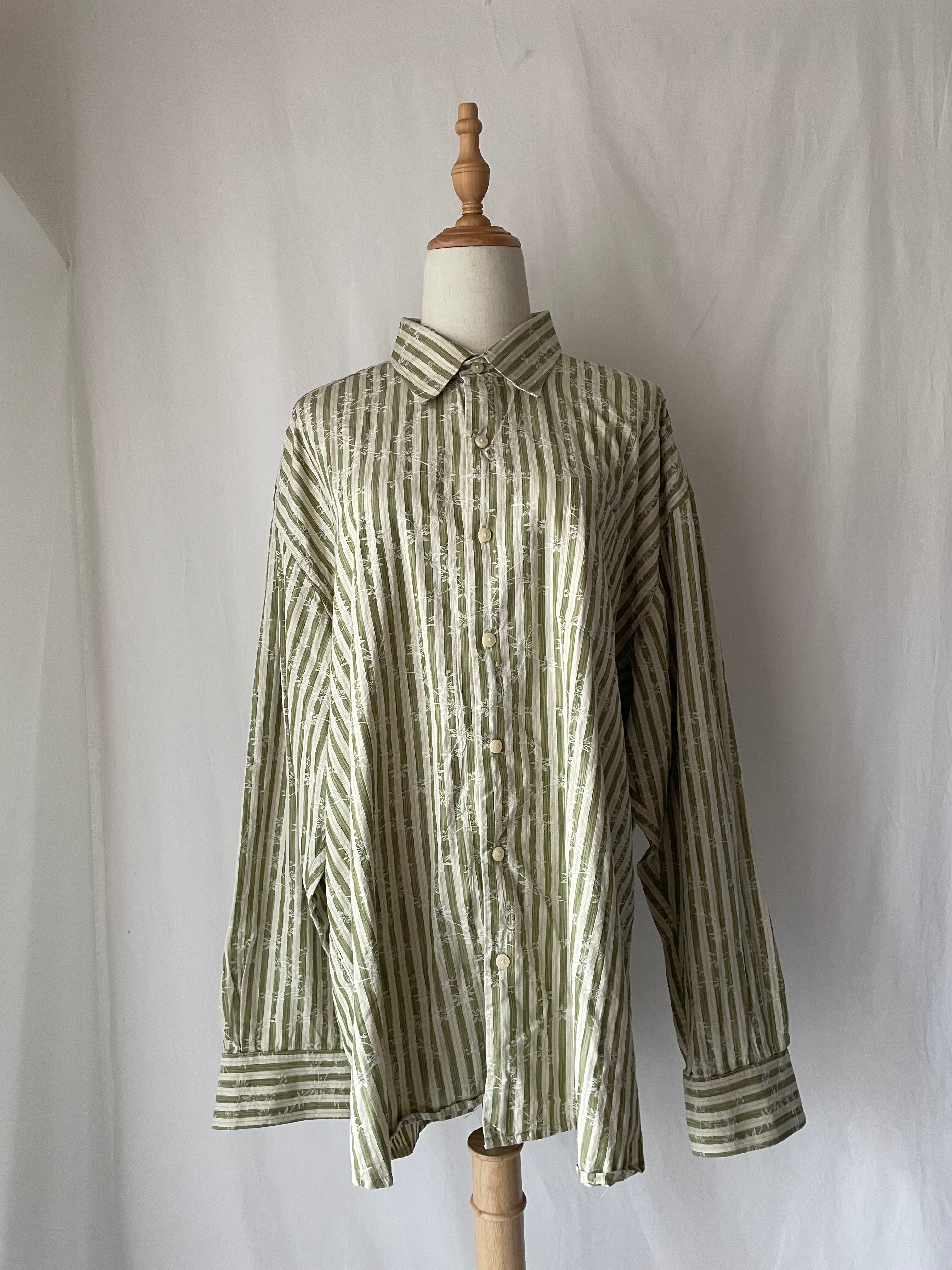 ストライプ柄の上に花柄がプリントされた珍しいシャツ