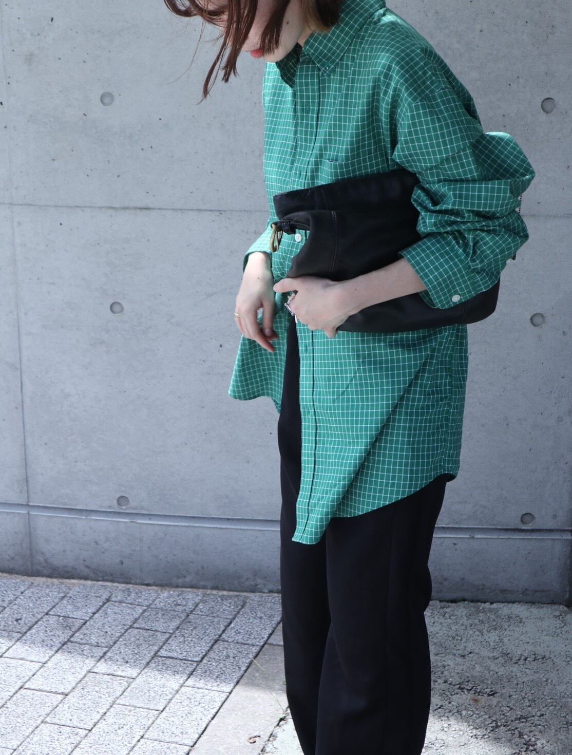 カジュアルなカラーと柄ですが、ハリのある生地感でキレイめな印象でも着ていただけます 〇