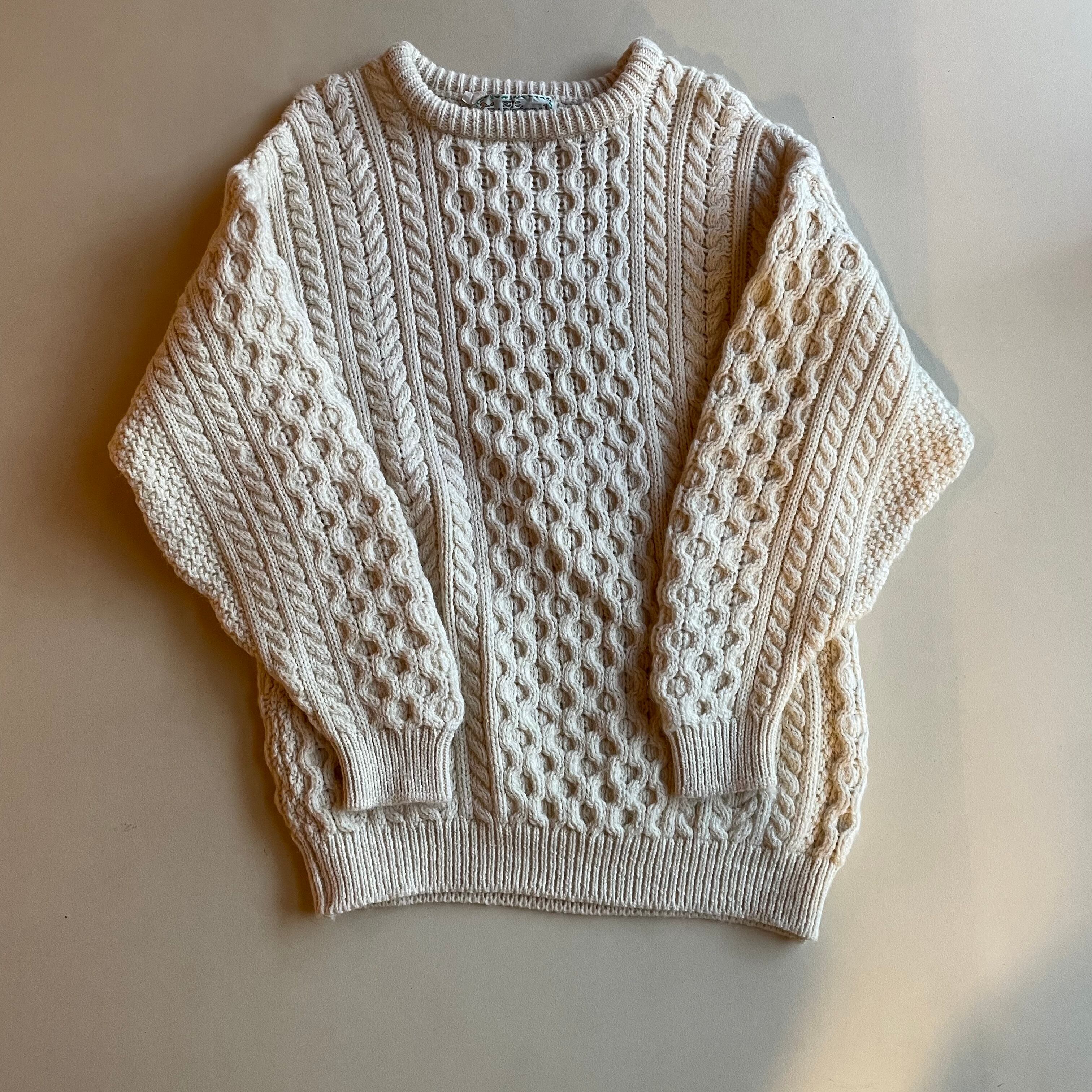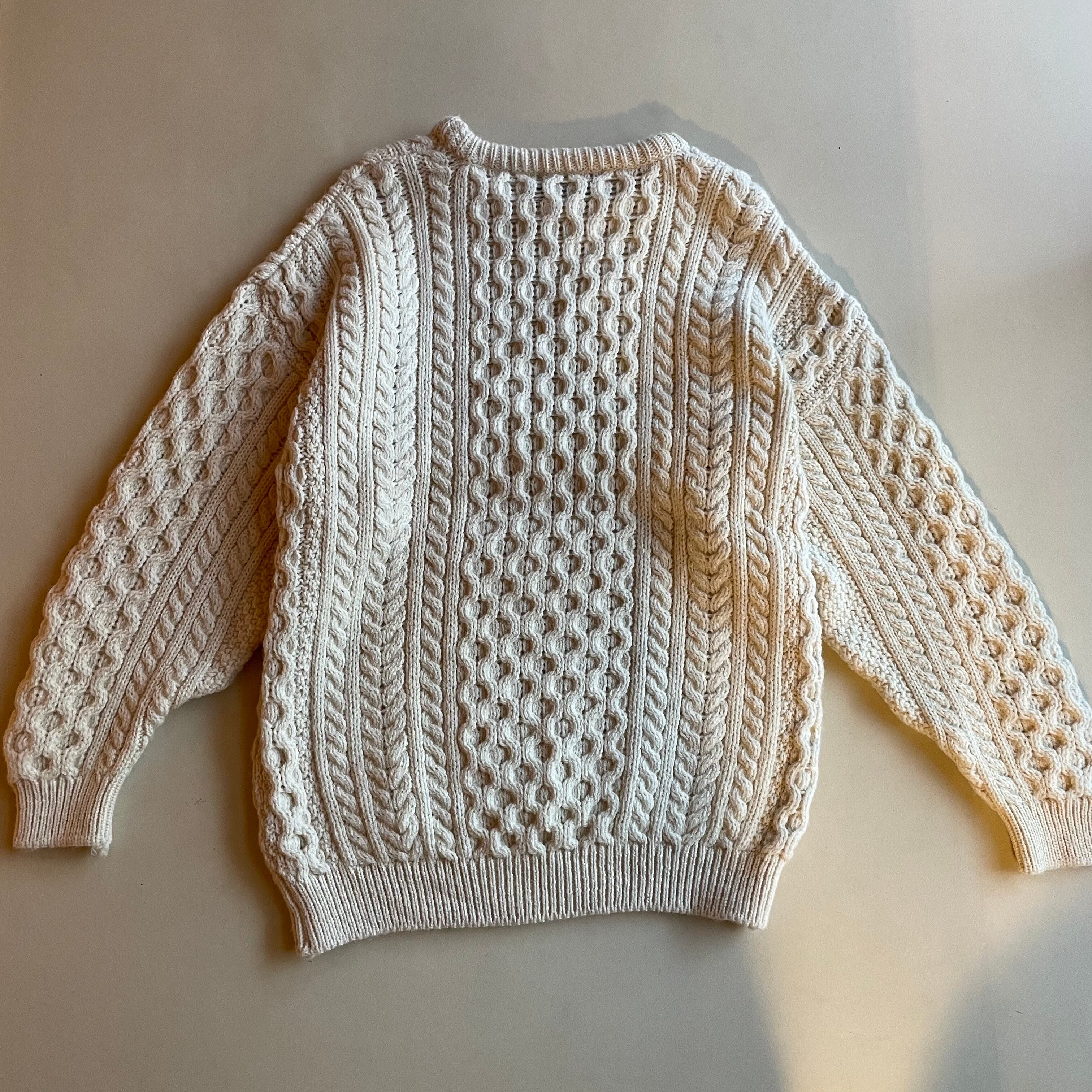 おしりまですっぽり隠れる大きめサイズのアランニット