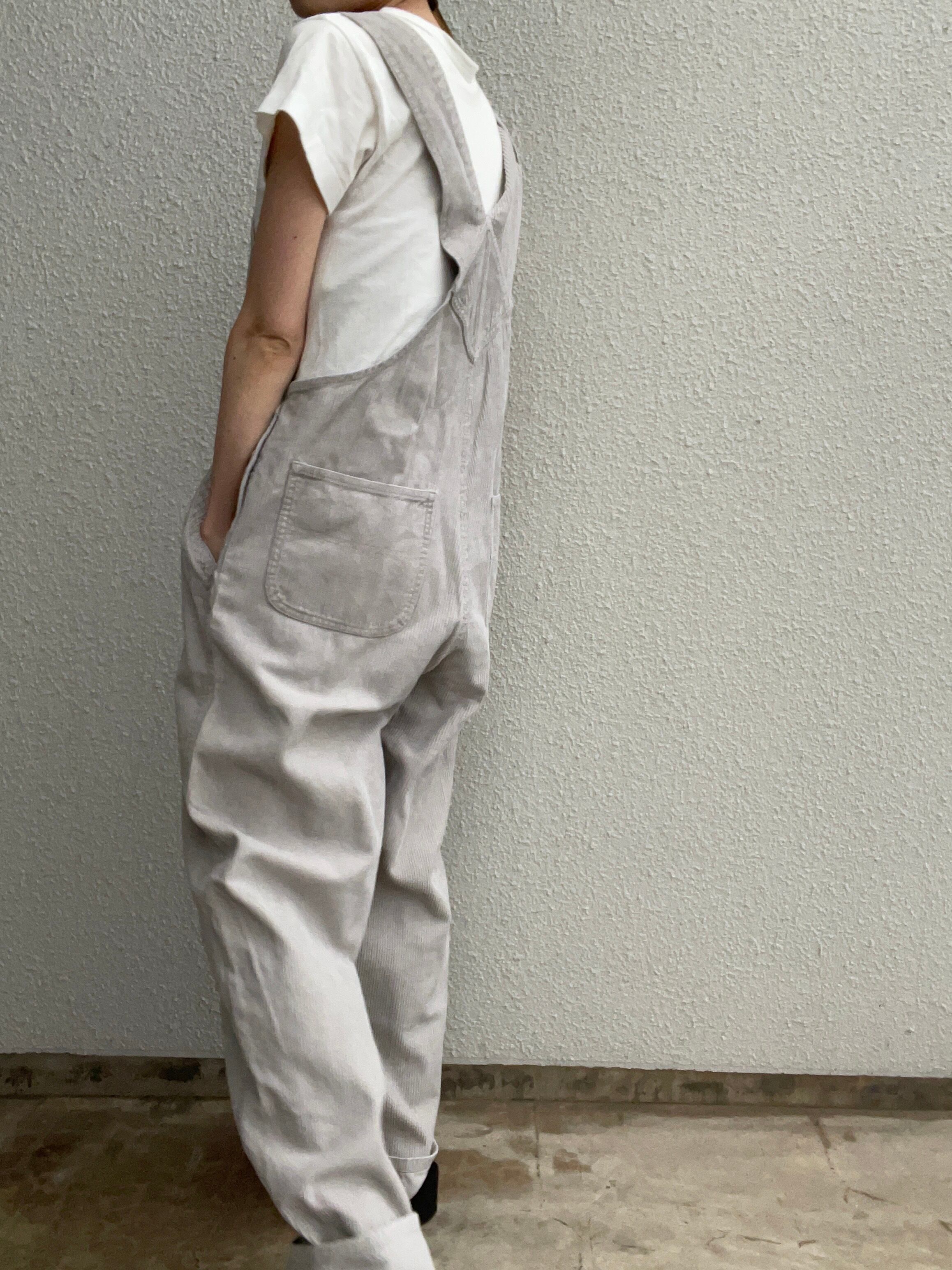 light gray corduroy overall