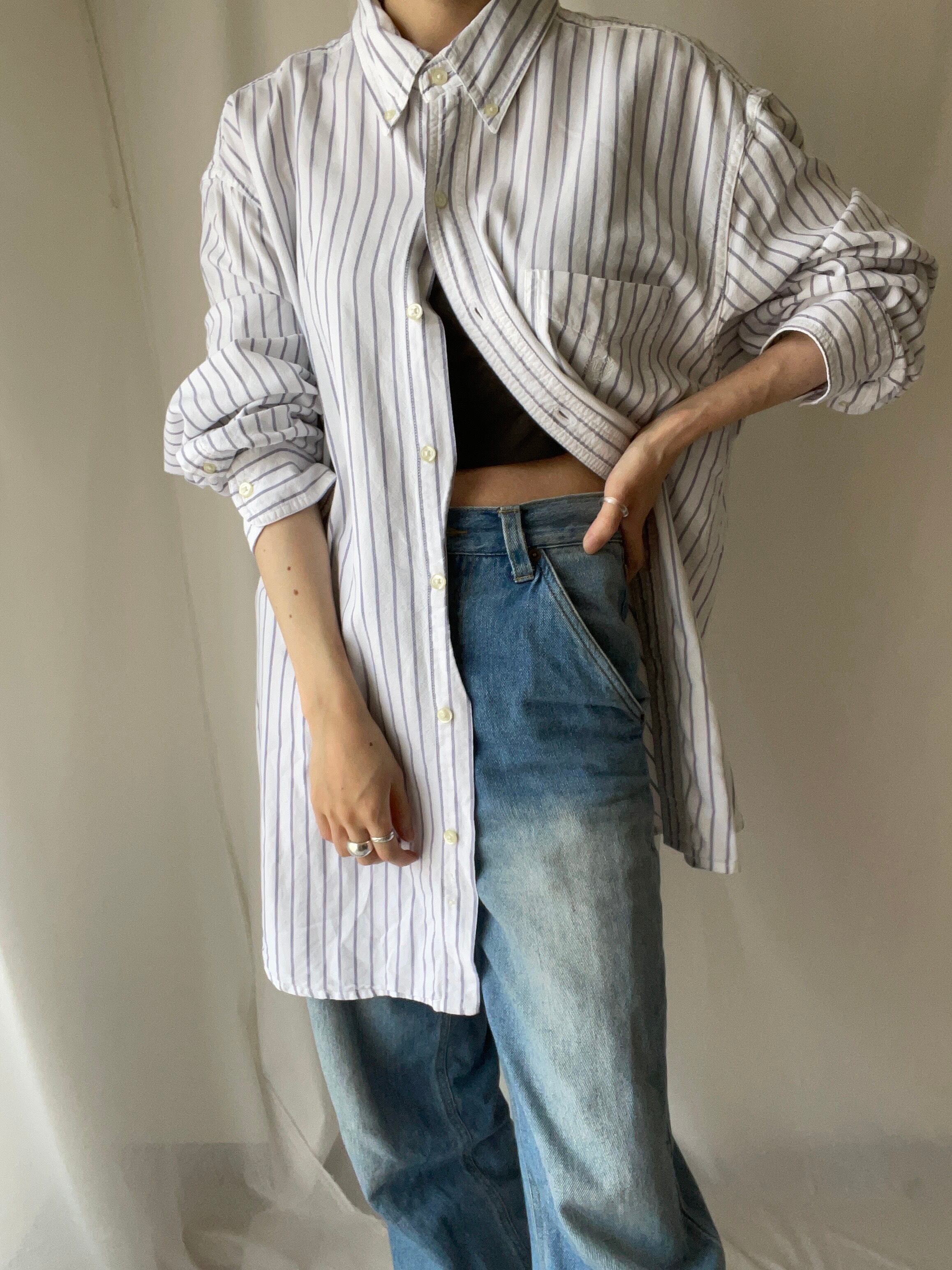 ホワイトベースのストライプ柄が爽やかでデニムやチノパンとの相性も抜群です〇